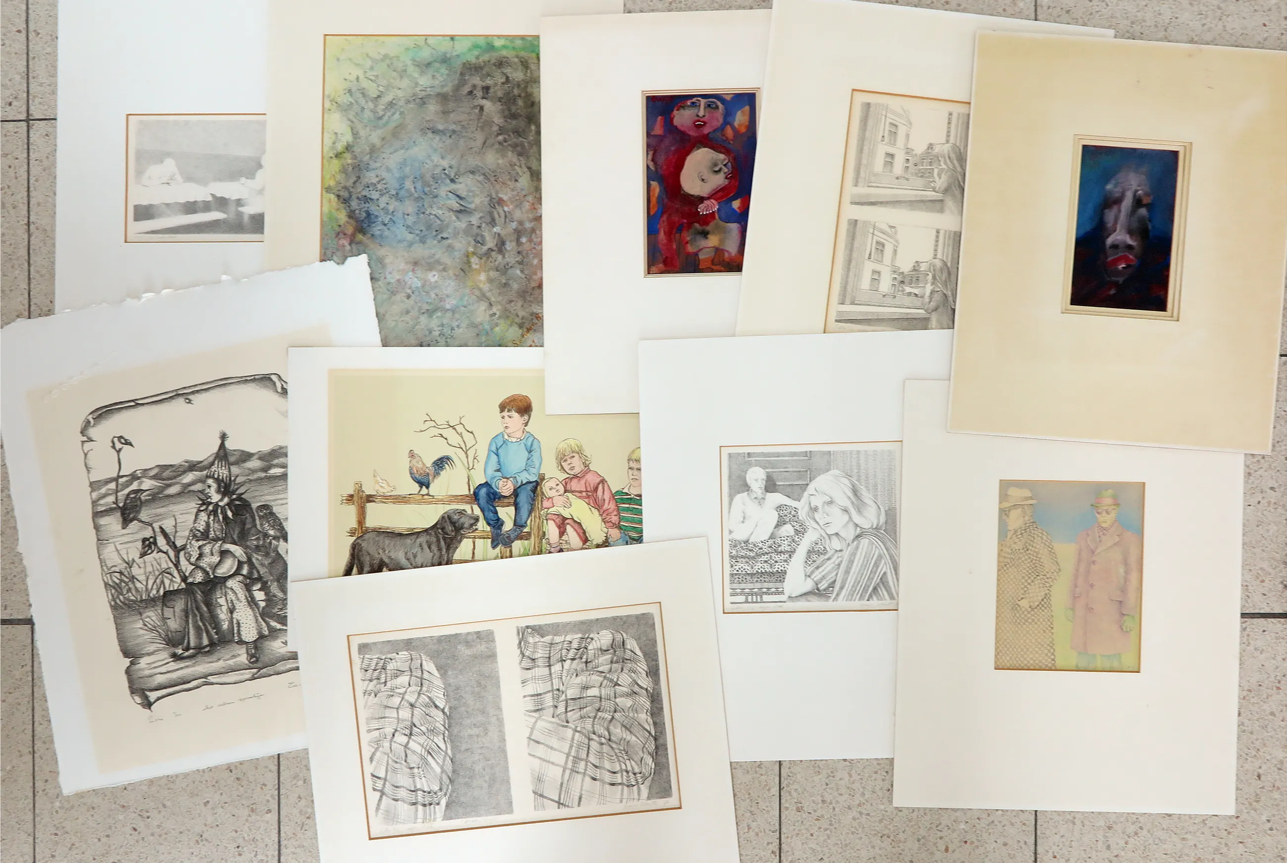 | De conditie van de werken in dit lot verschilt. Over het algemeen zijn de werken in goede staat. Maar de werken kunnen enkele beschadigingen hebben (vouwlijnen, gekreukt papier, verkleuring, scheurtjes). Individuele werken worden niet beschreven. | |||||||||||