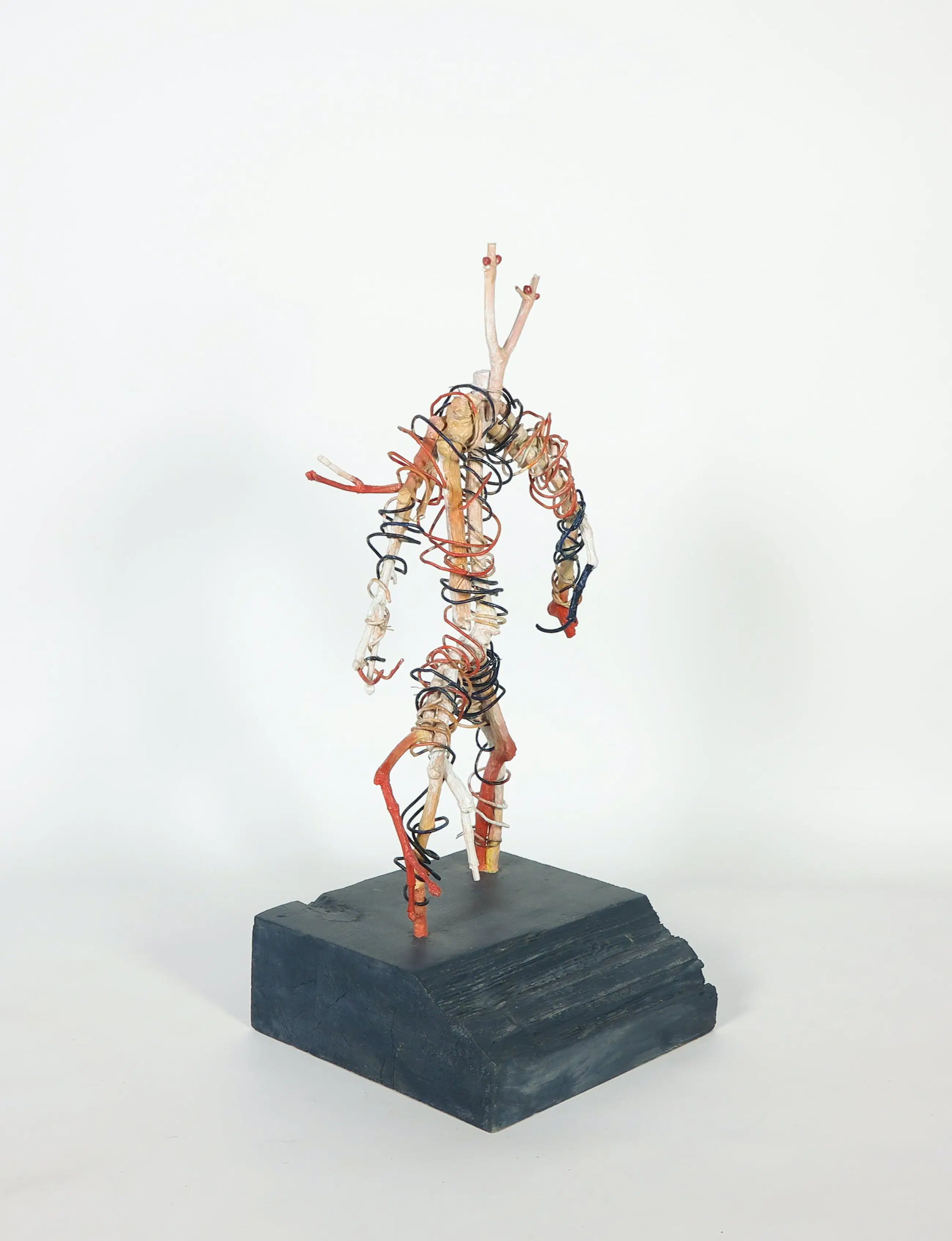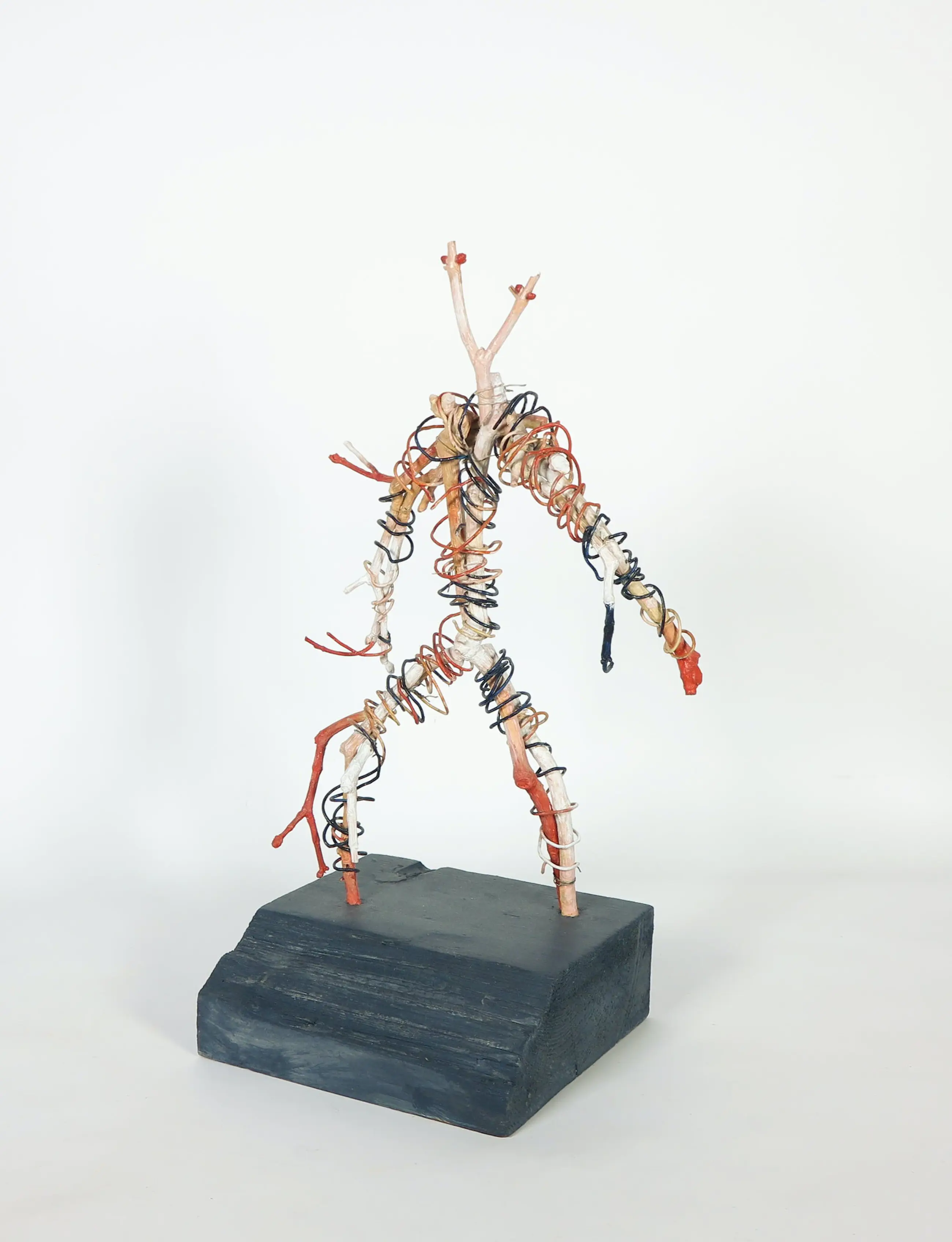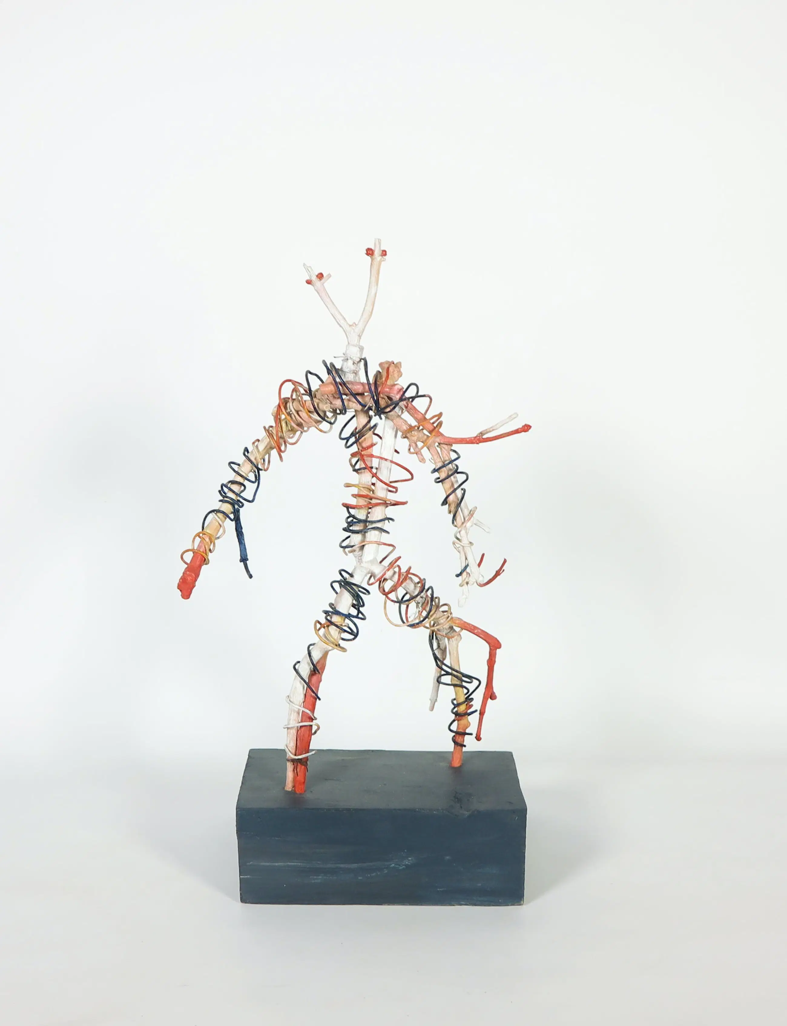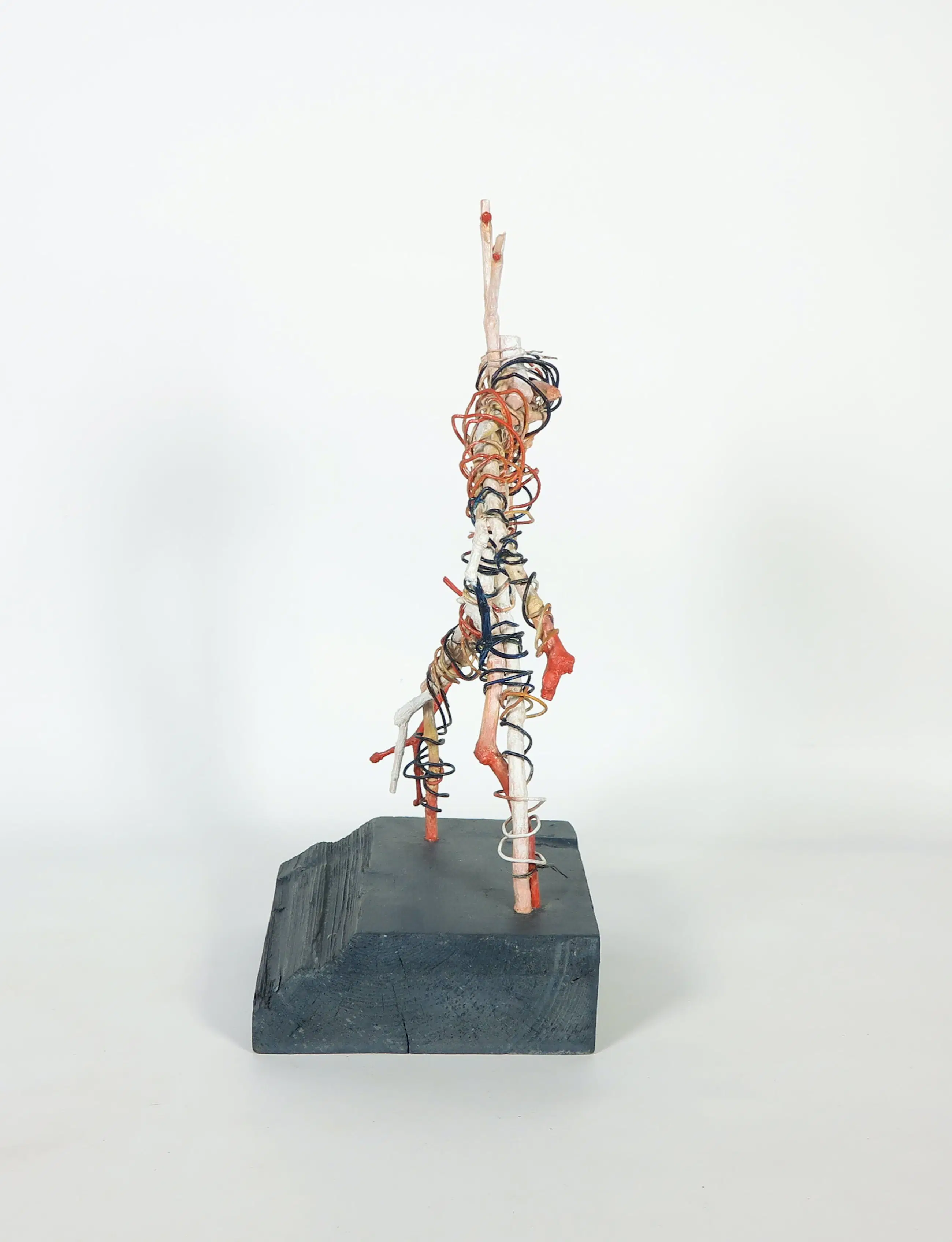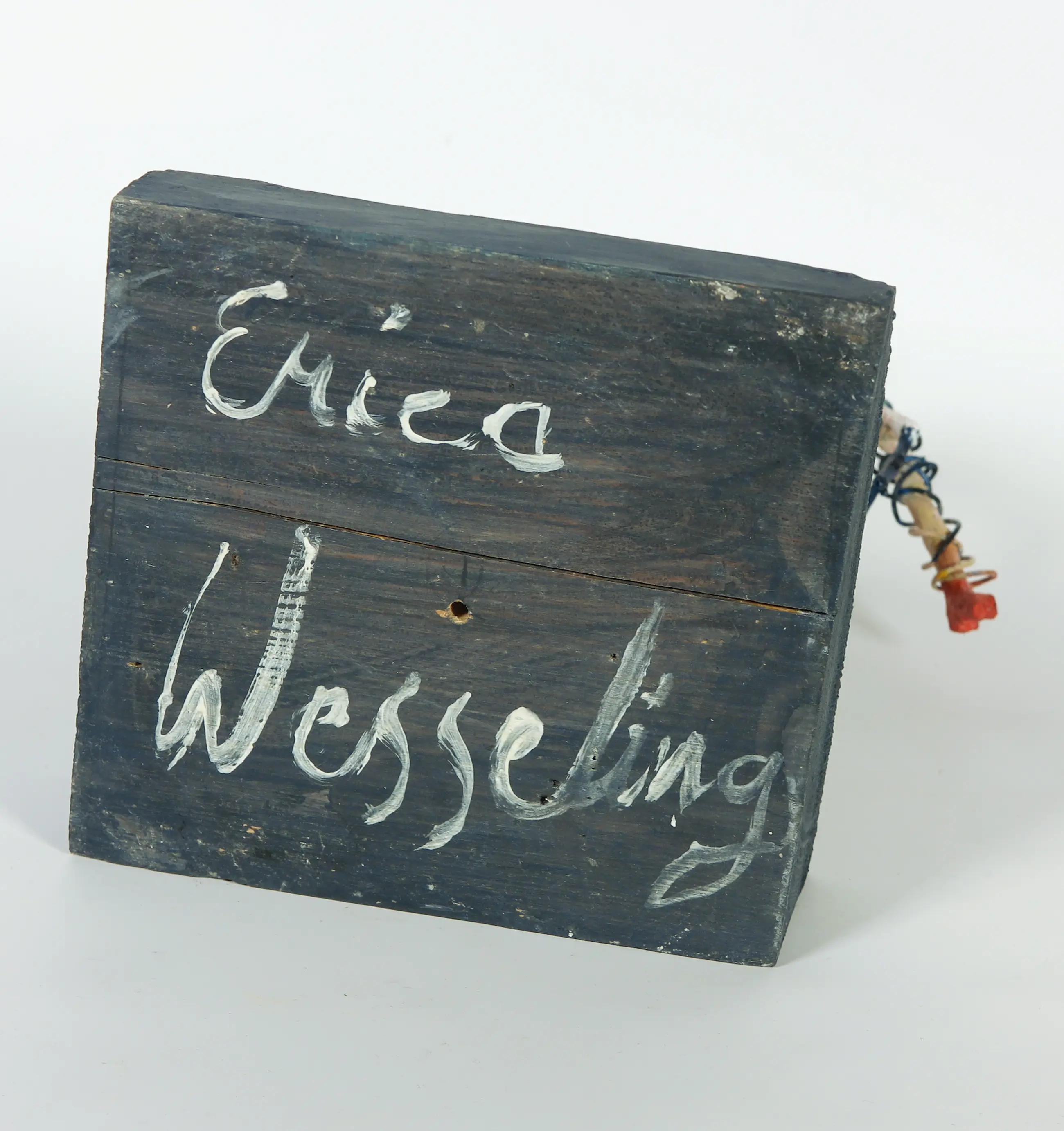 Klein figuur van kunstenaar Erica Wesseling. Vervaardigd uit verschillende materialen. Aan de onderzijde gesigneerd.