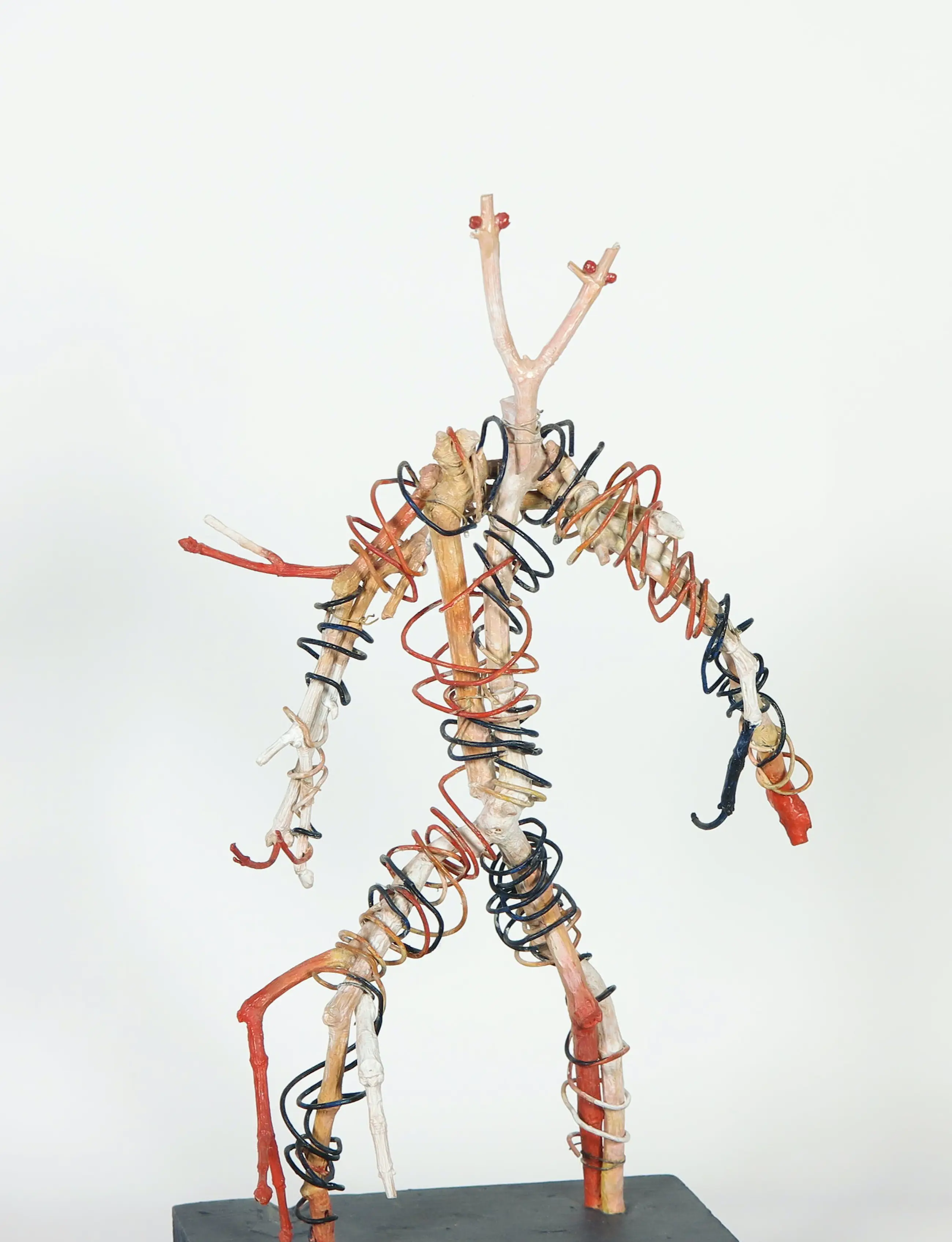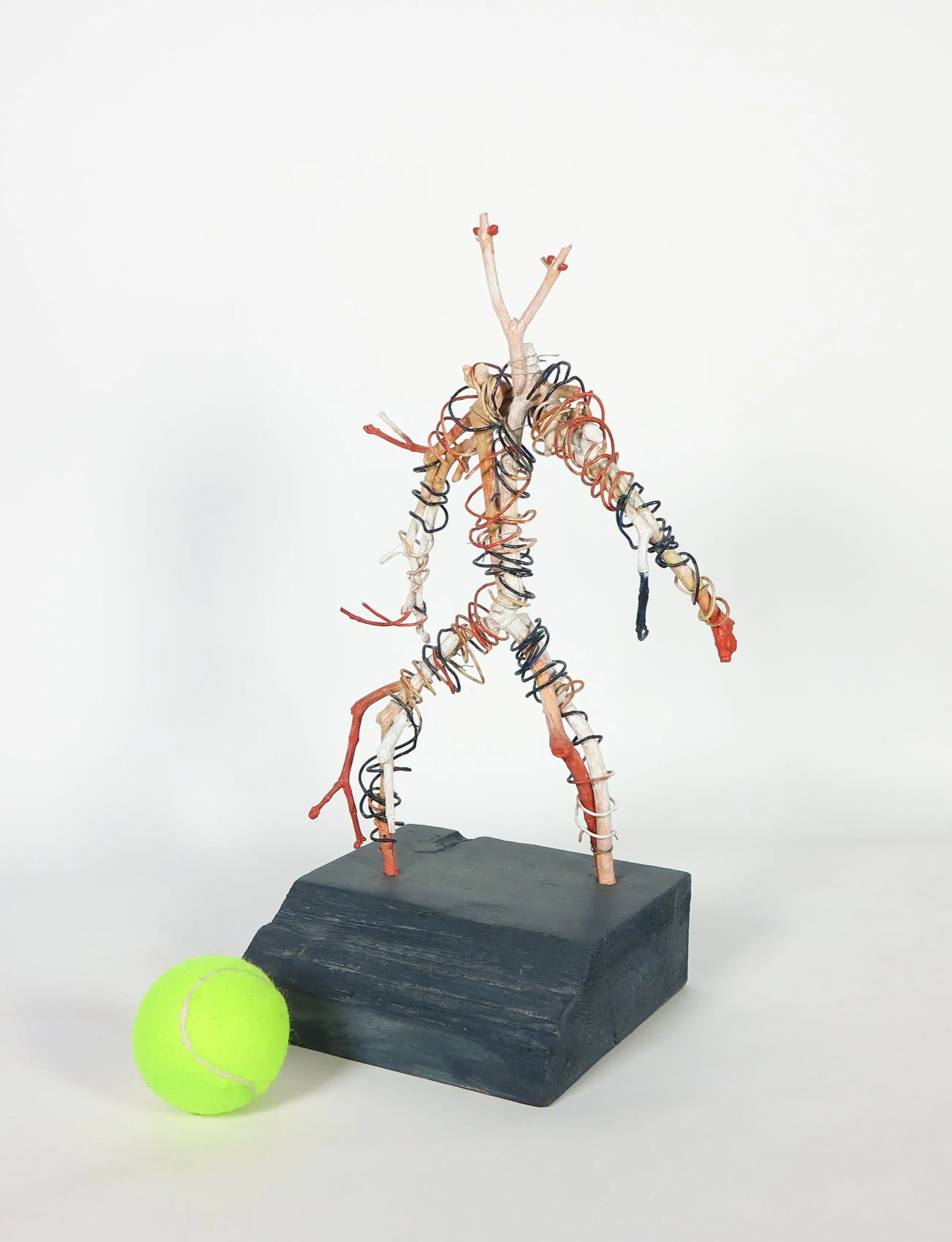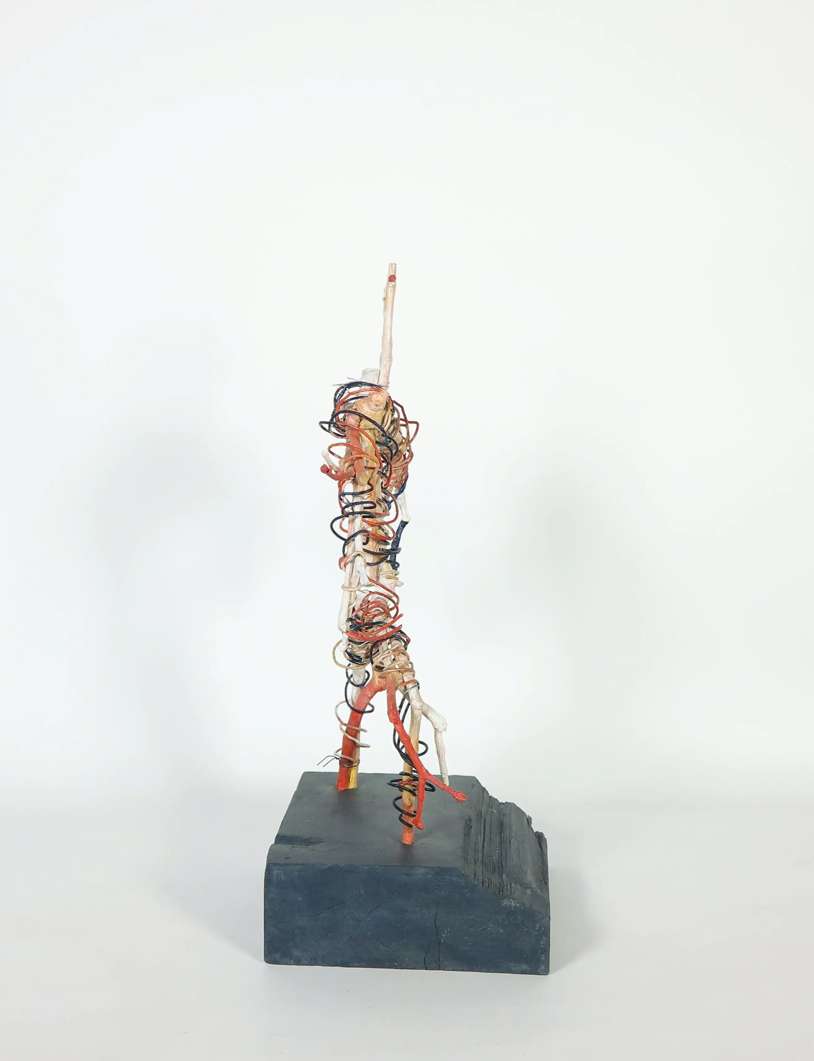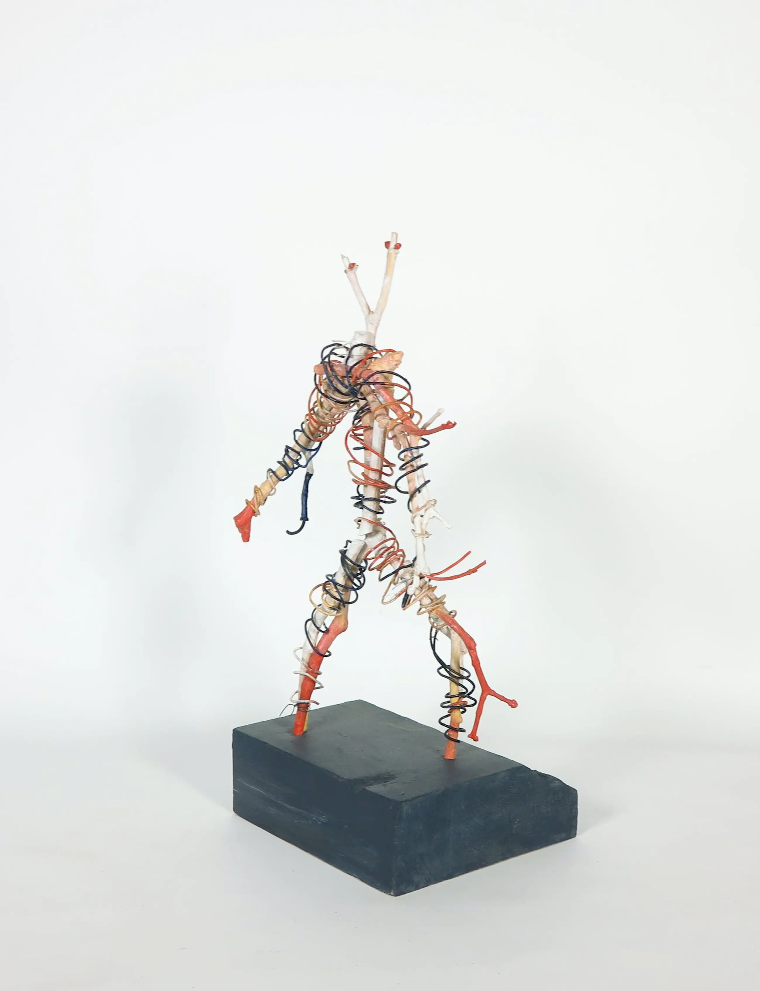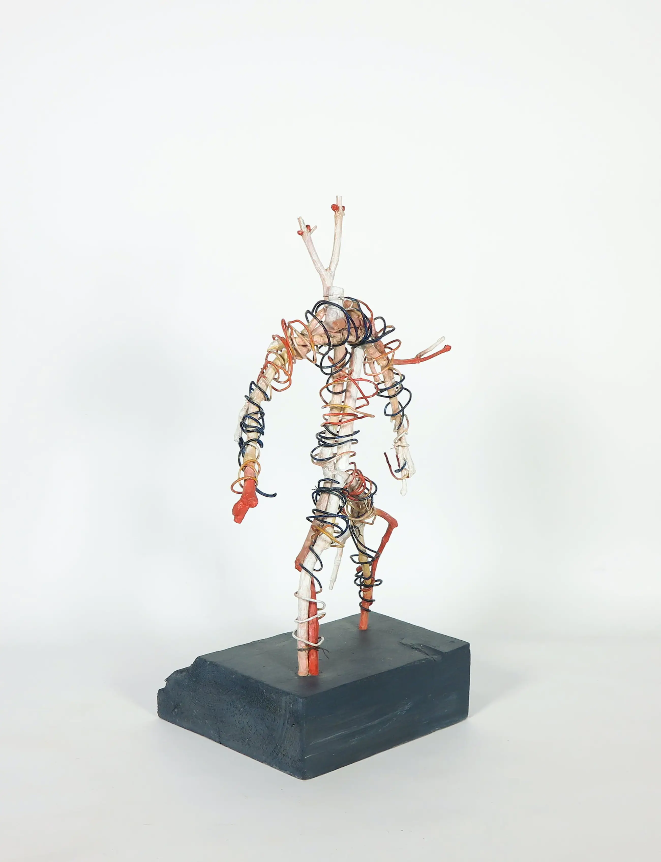 Klein figuur van kunstenaar Erica Wesseling. Vervaardigd uit verschillende materialen. Aan de onderzijde gesigneerd.