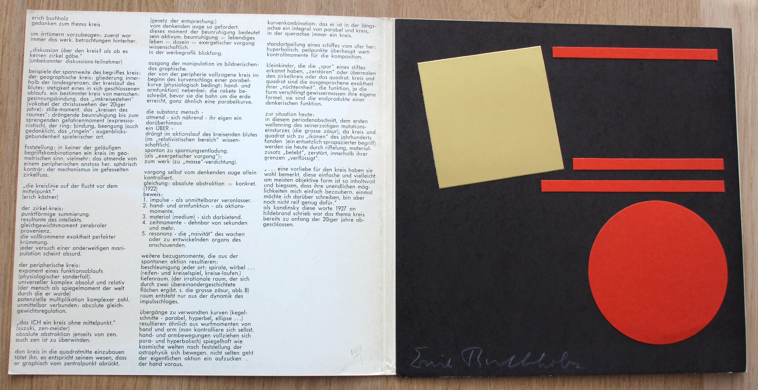 Handgesigneerde collage van Erich Buchholz uit 1965. Het werk zit in een boekje, waar nog twee andere werken van de kunstenaar inzitten.