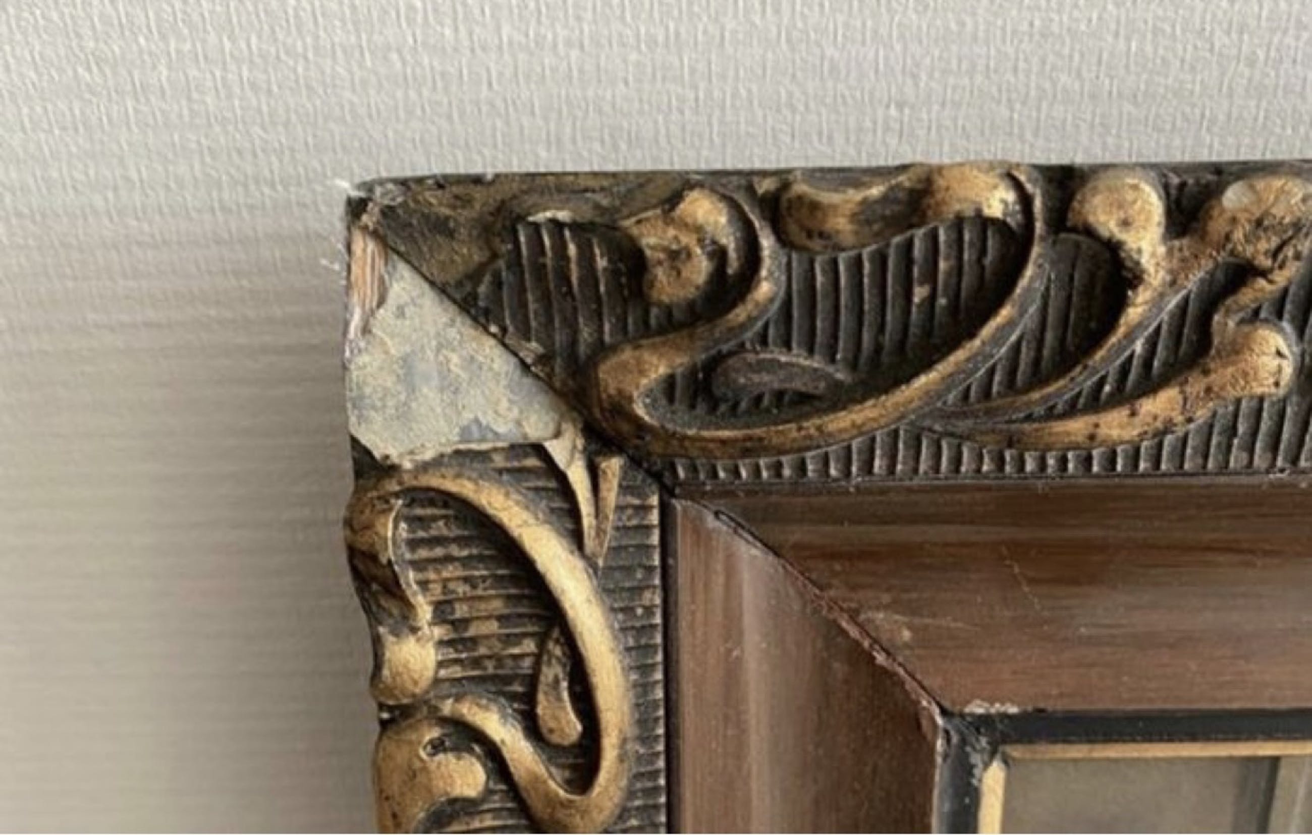 Er zit geen glas in de lijst en de lijst is beschadigd (zie foto’s)