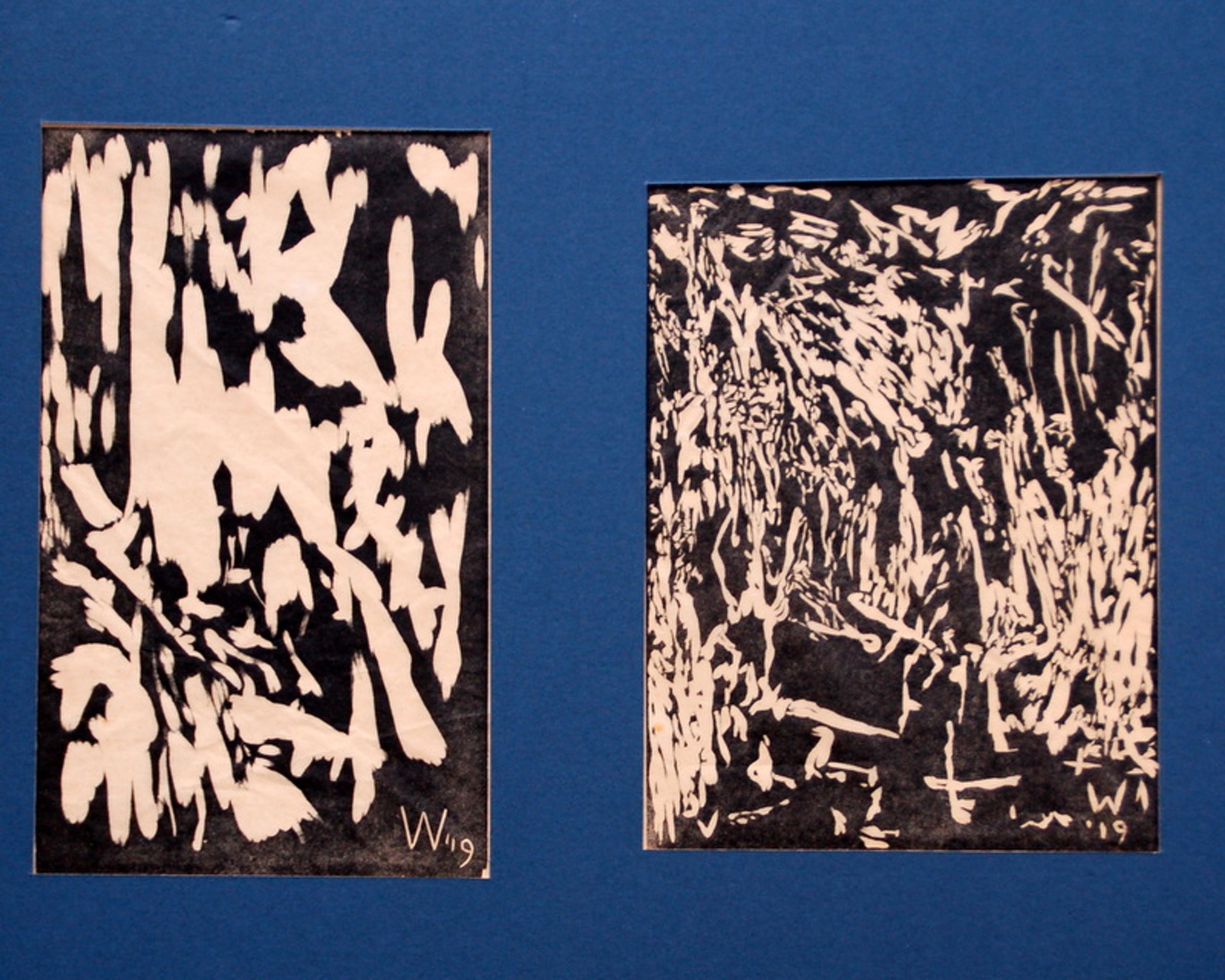 Twee houtdrukken van Erich Wichman. Links: afm: 25x15 cm.Rechts:afm:22x17cmKleine maar geen storende vouwtjes in het papier.Gesigneerd en gedateerd rechts onderaan.