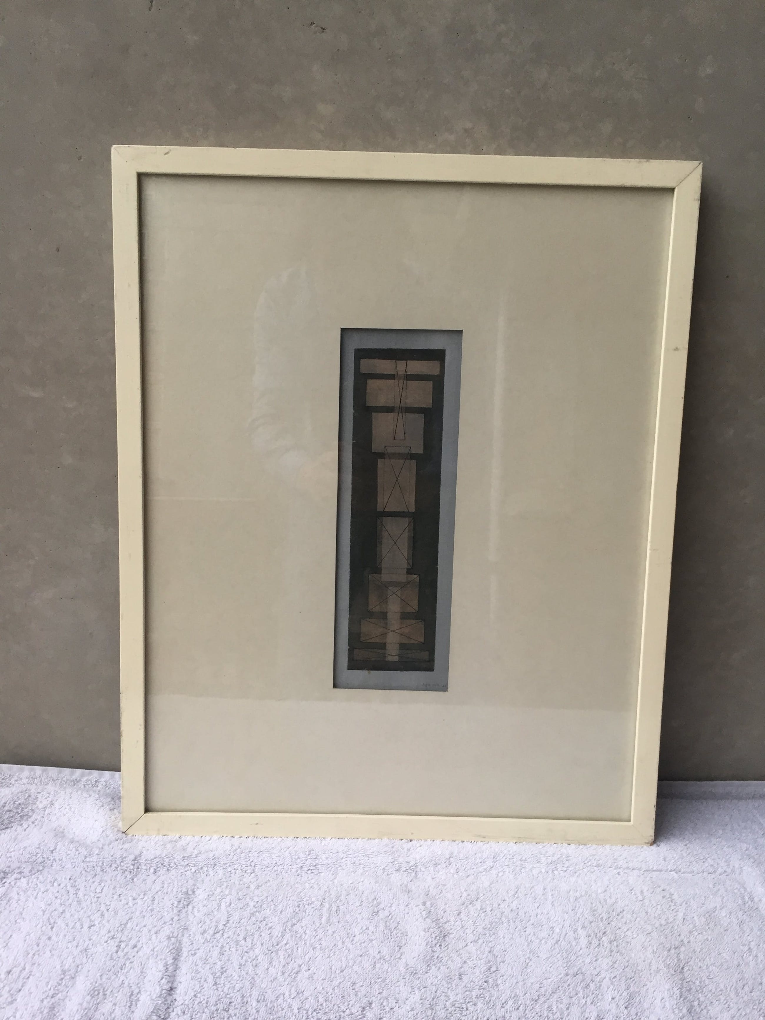 Ingelijst achter glas, buitenmaat lijst 52 x 42 cm