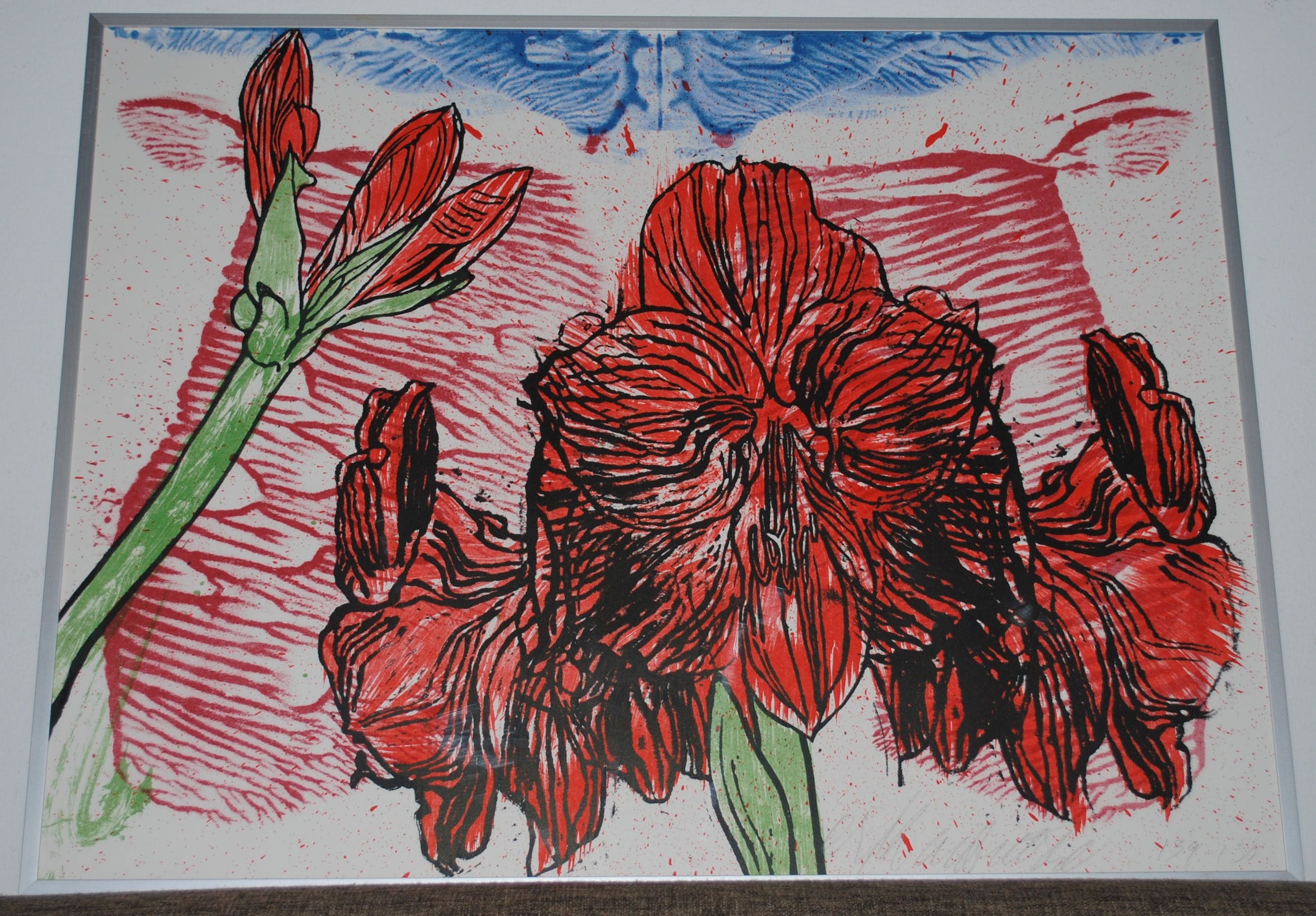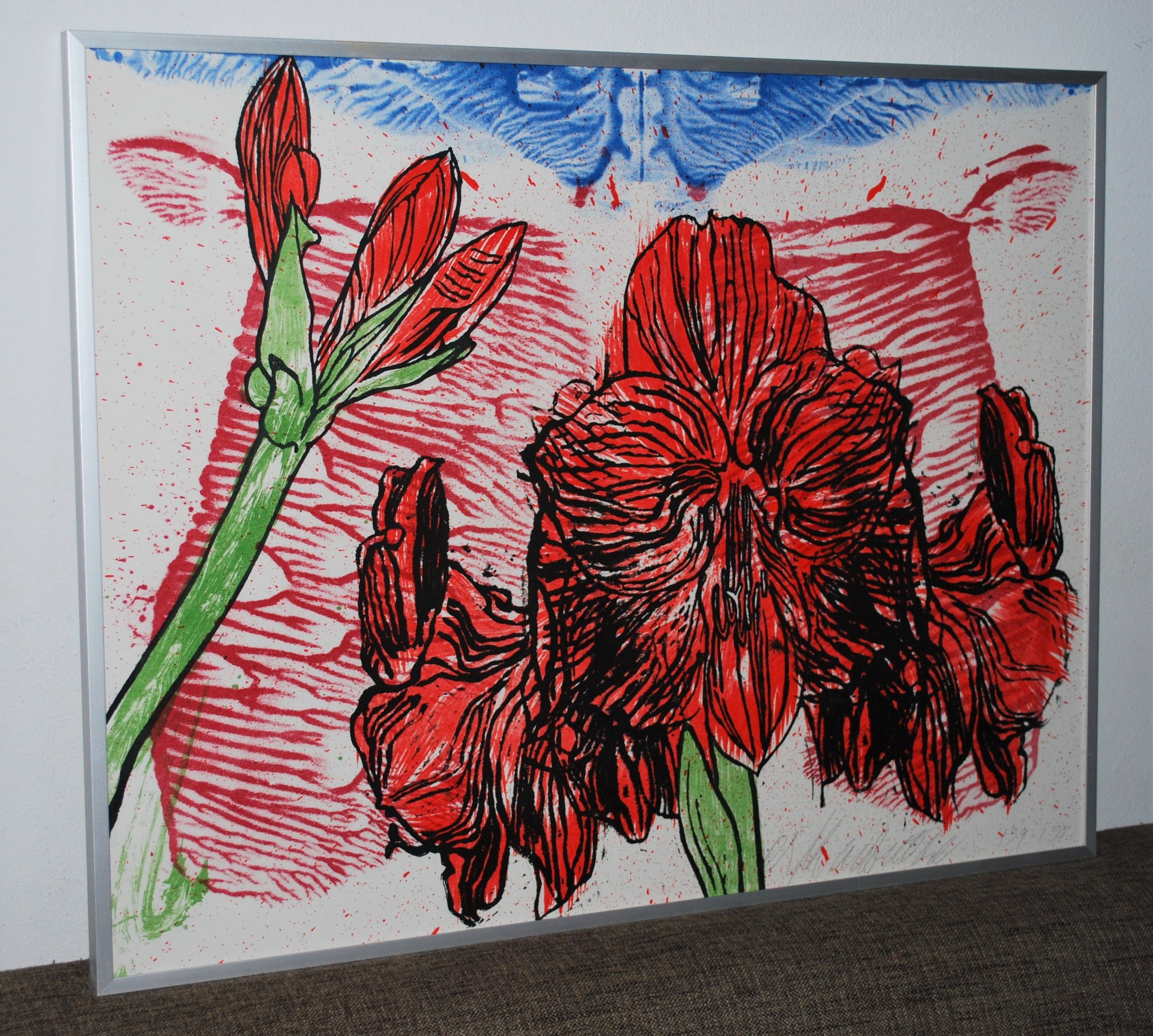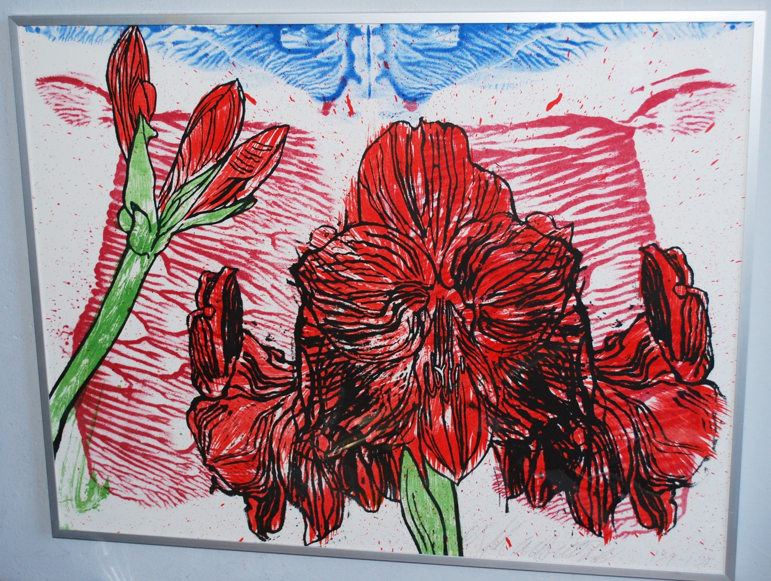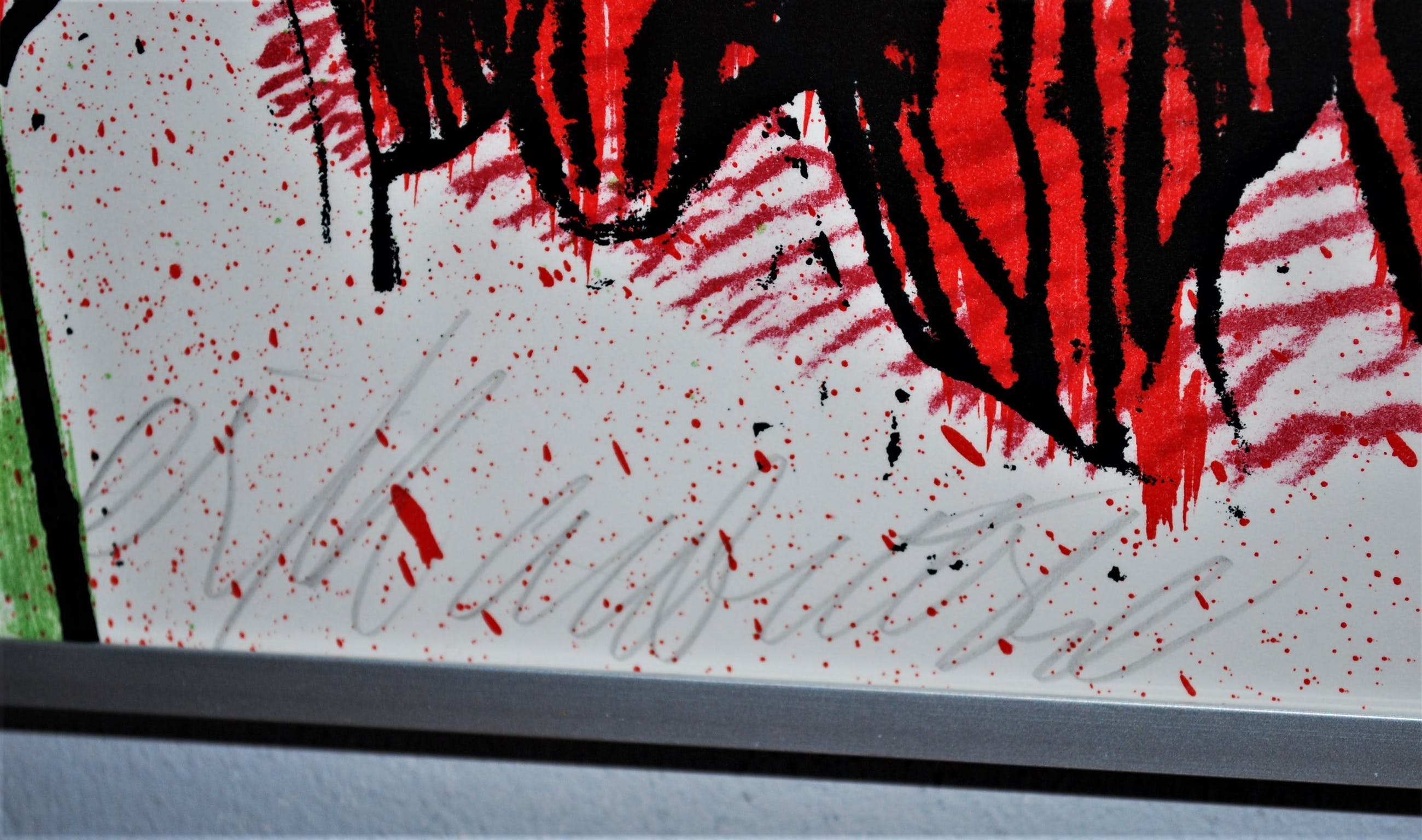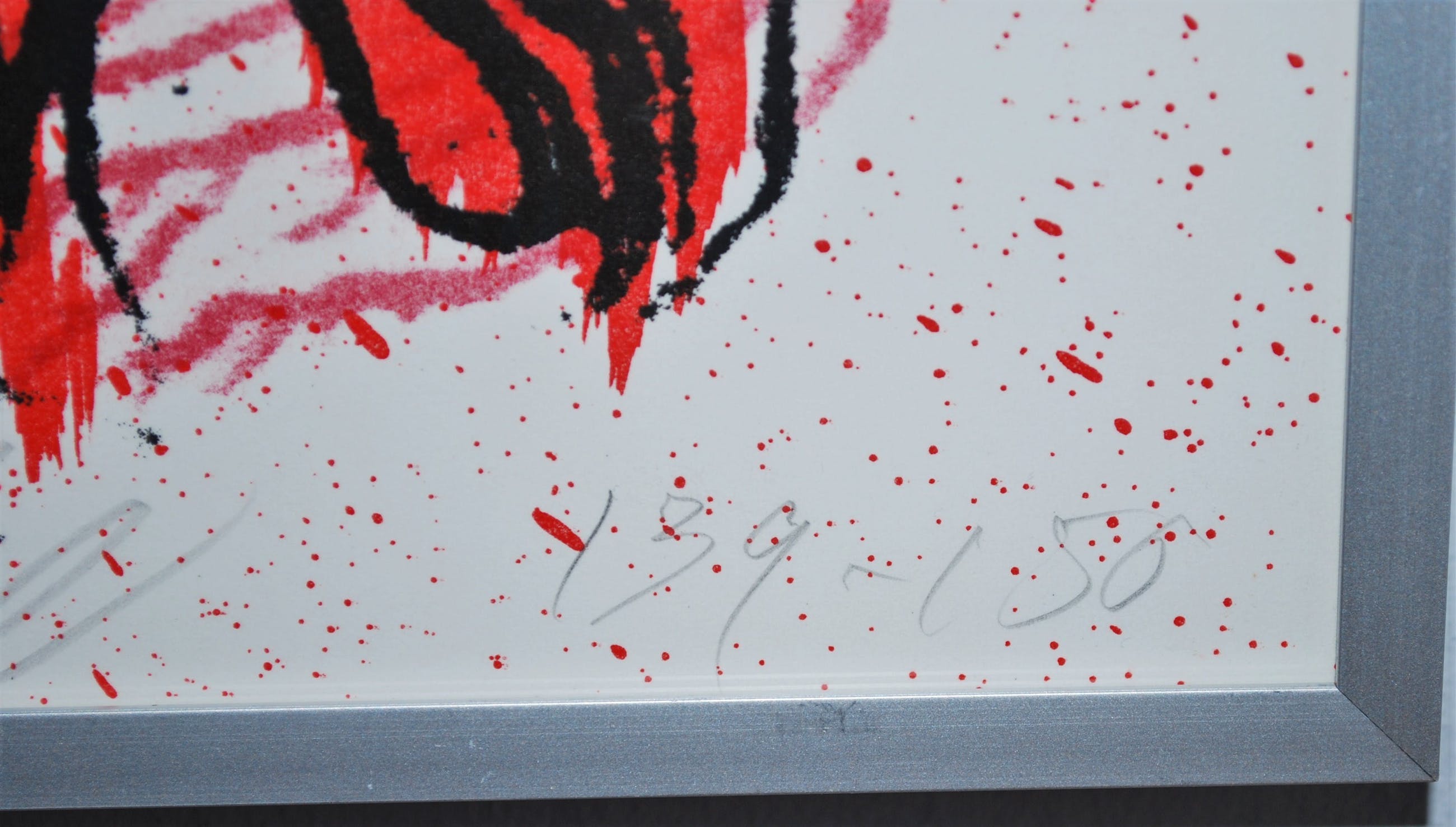 Los blad, in zeer goede staat, geplaatst achter glas in een aluminium lijst.