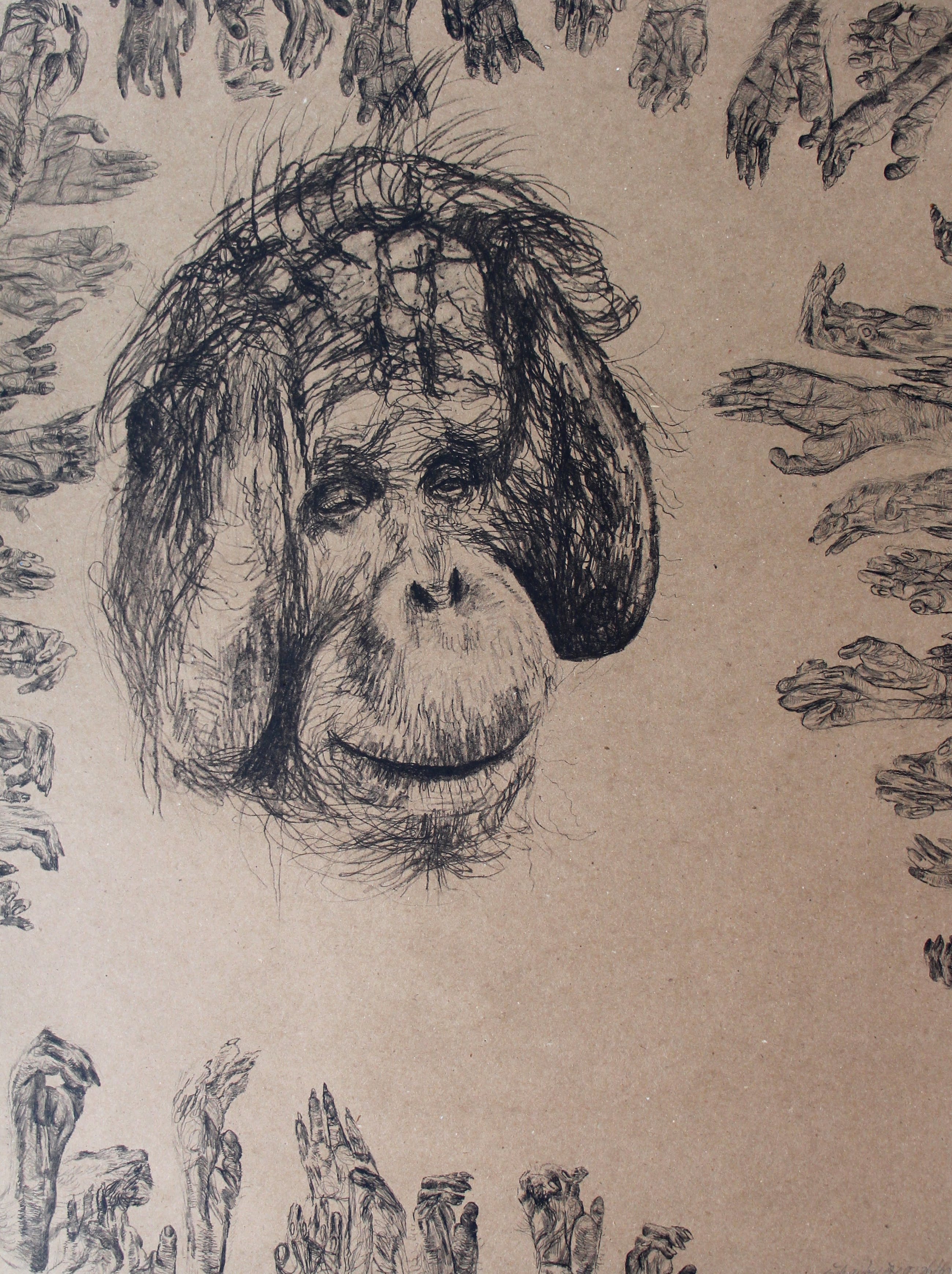 Litho op bruin papier van Erik Andriesse. Titel: Sam. Jaar: 1992. Nummer: 33/66.