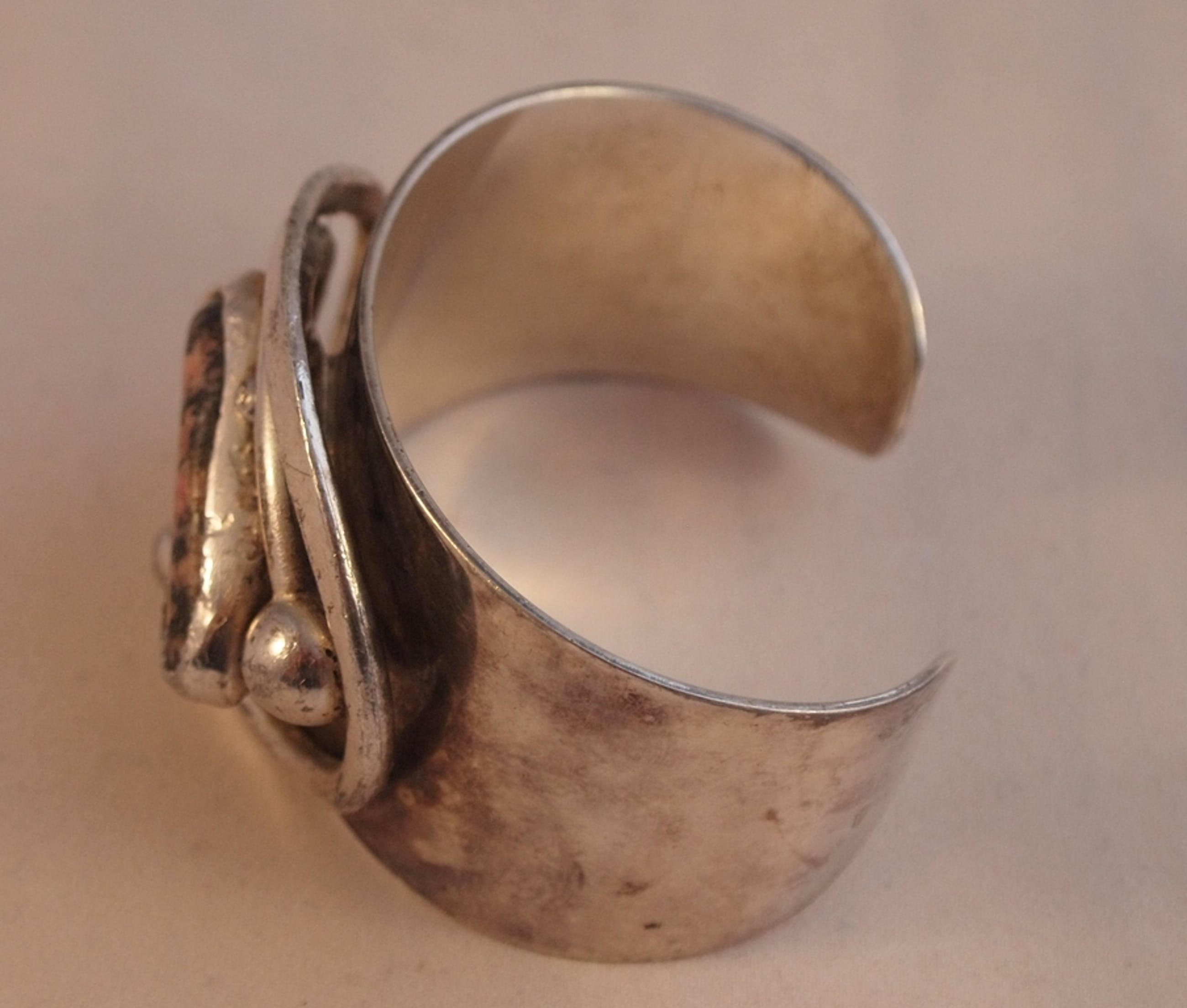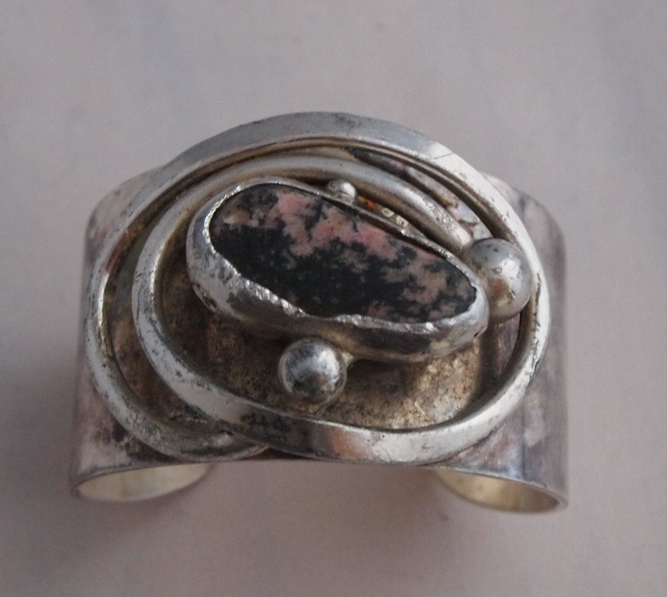 Mooie modernistische verzilverde armband met ingezette Rhodoniet. Ontwerp Erik Dennung voor Buch en Deichmann. In prima conditie. Geen beschadigingen aan de armband of de steen. Aan de achterkant voorzien van ingedrukt merk; Erik Dennung made in Denmark en het B+D merk van Buch en Deichmann.