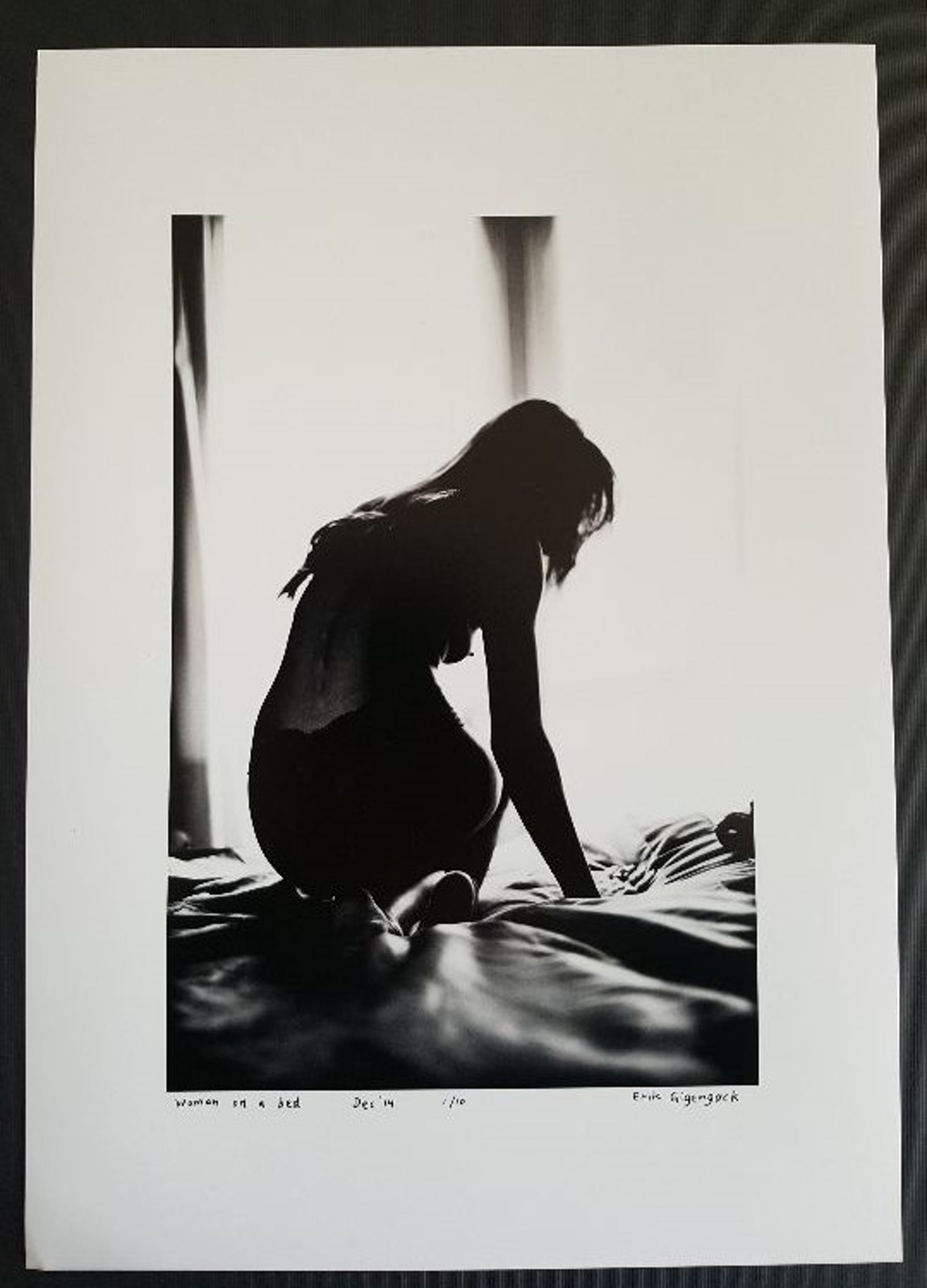 Deze originele foto uit 2015 komt rechtstreeks van de fotograaf en heeft als titel ‘woman on a bed’, is handgesigneerd en is nummer 1 uit een serie met een gelimiteerde oplage van 10.