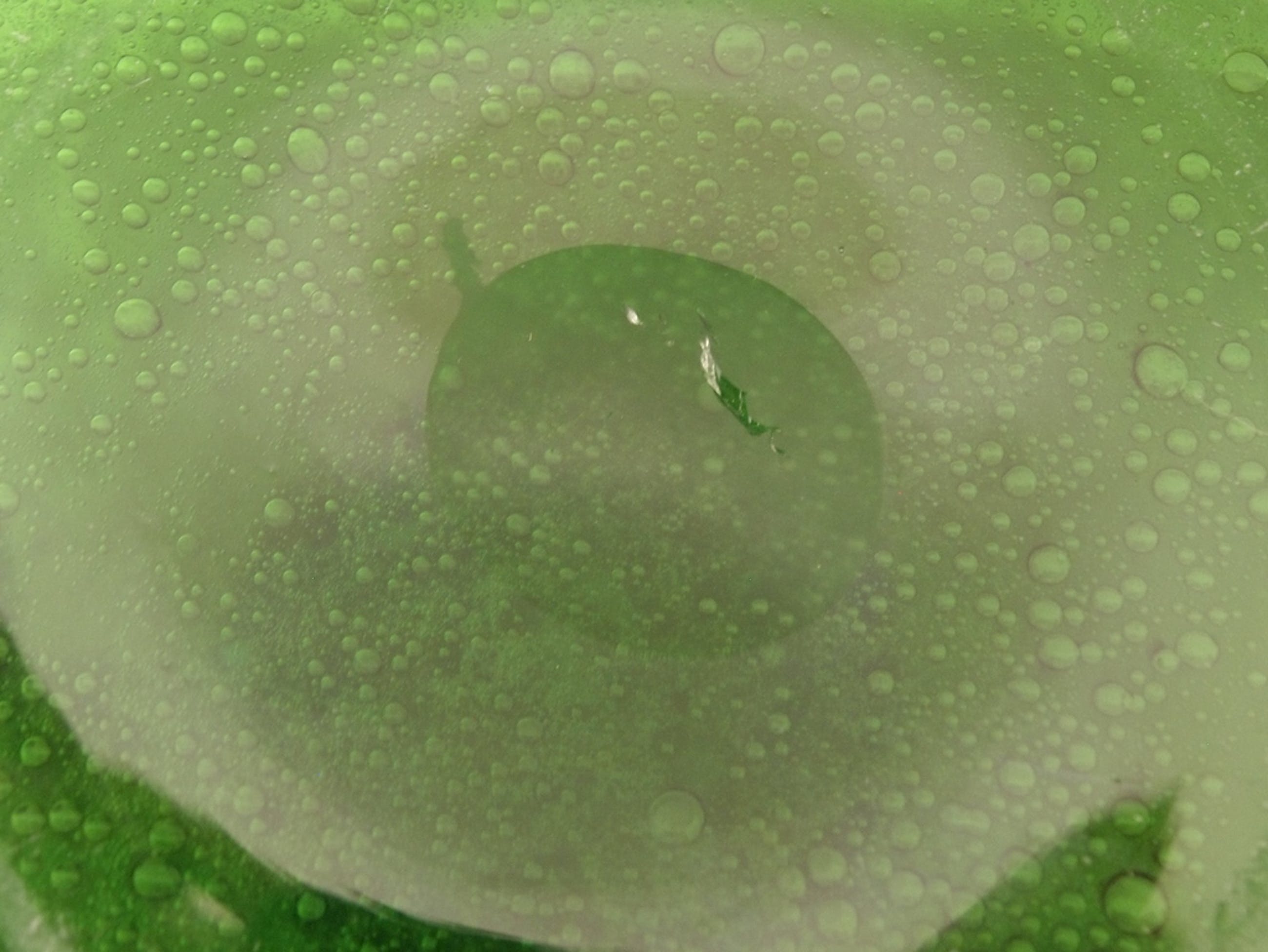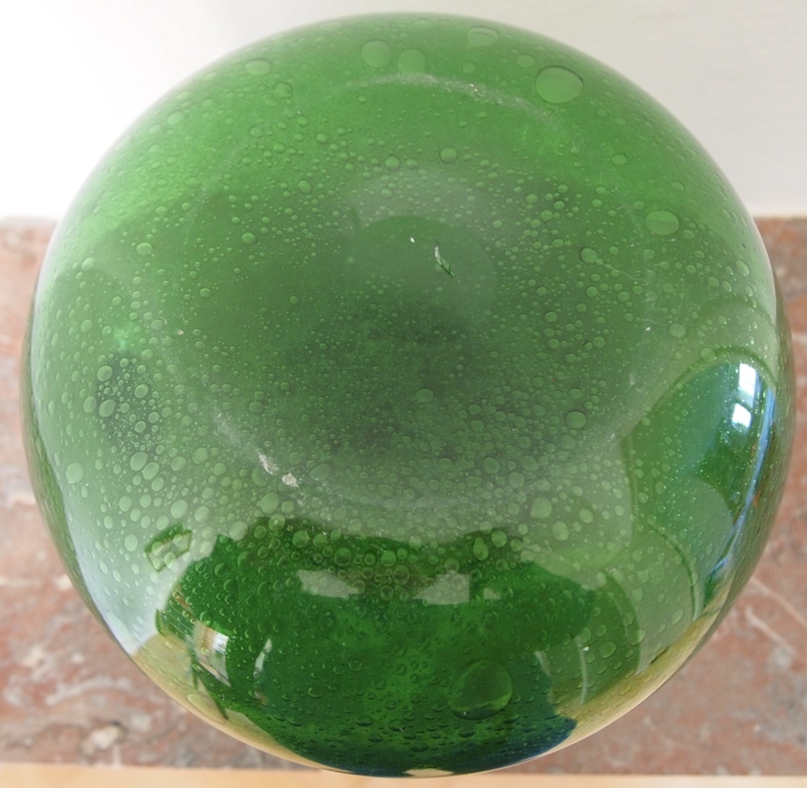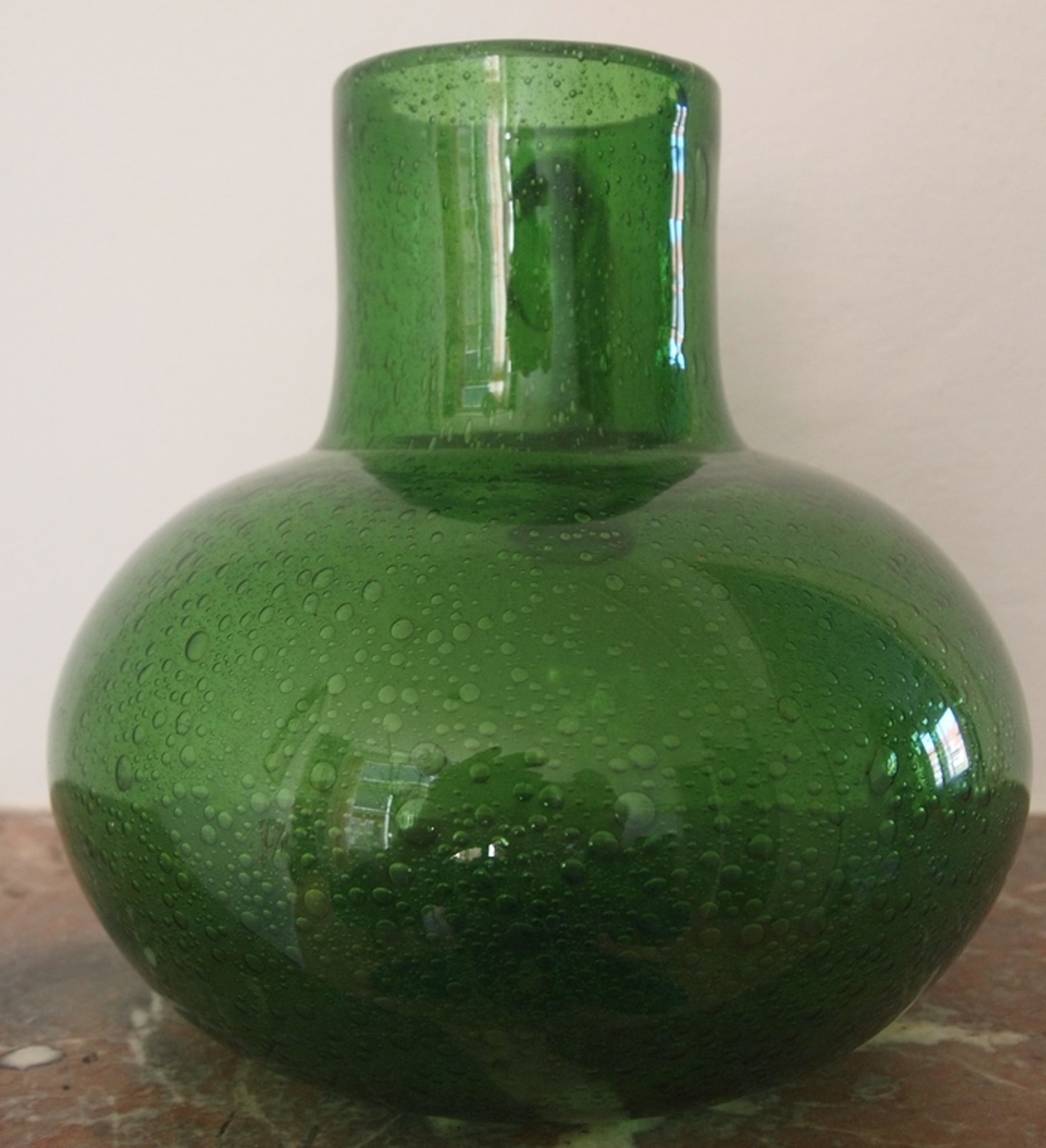 Erik Hoglund voor Kosta Boda - groene glazen air bubble vaas. Relatief zeldzaam, mooi ding. In prima onbeschadigde conditie. Niet gemerkt, maar wel voorzien van een geslepen pontilmerk aan de onderzijde.