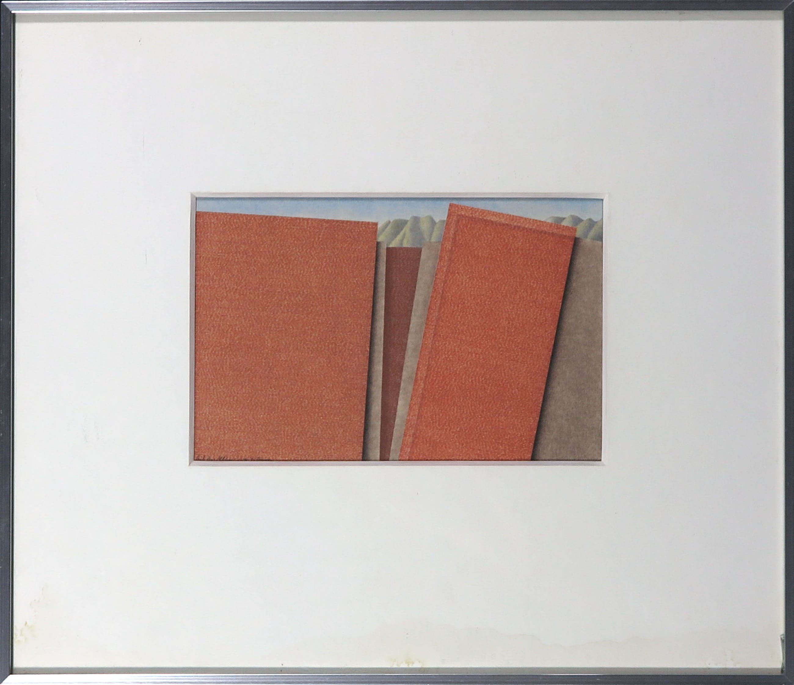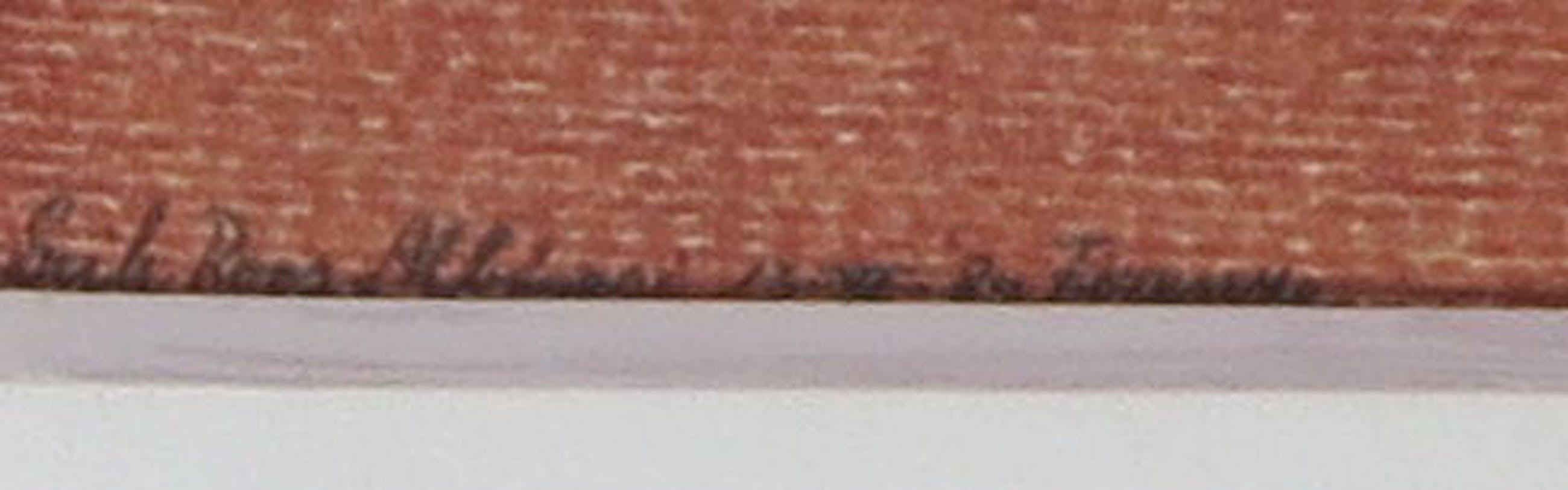 | Het werk zelf is in zeer goede staat, maar het passe-partout is vergeeld en heeft een grote vochtvlek langs de onderste rand. In het glas zit een defect in de hoek rechtsonder. | |