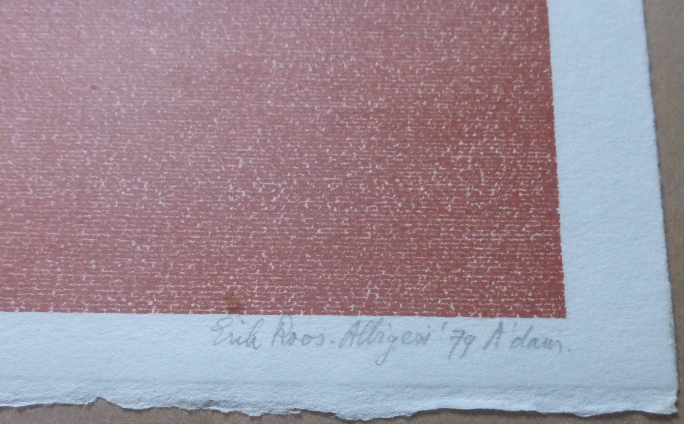 Mooi werk van Erik Roos-Albigesi, genummerd linksonder "11/150" en gesigneerd rechtsonder "Erik Roos-Albigesi '79 A'dam" in potlood.
