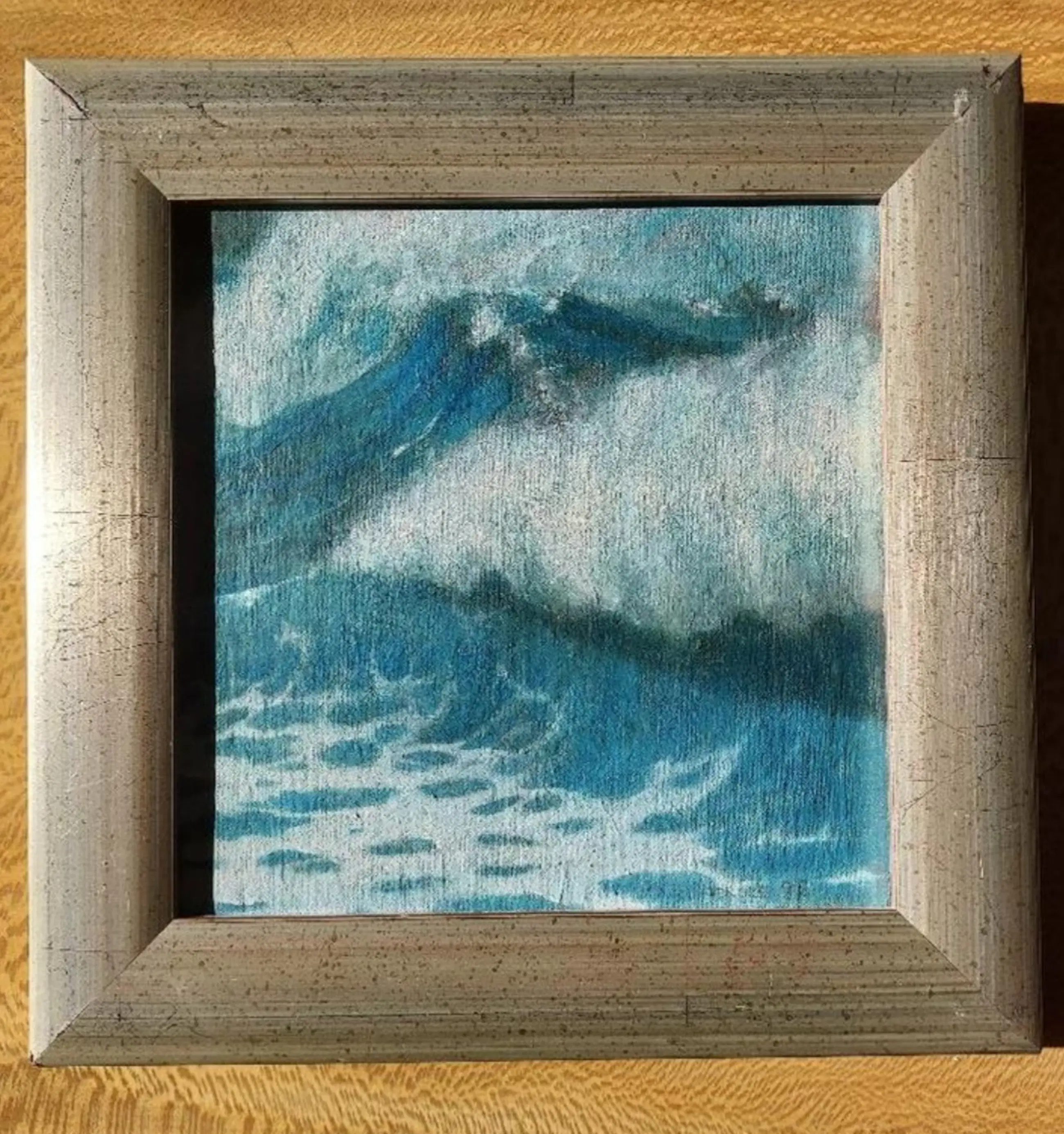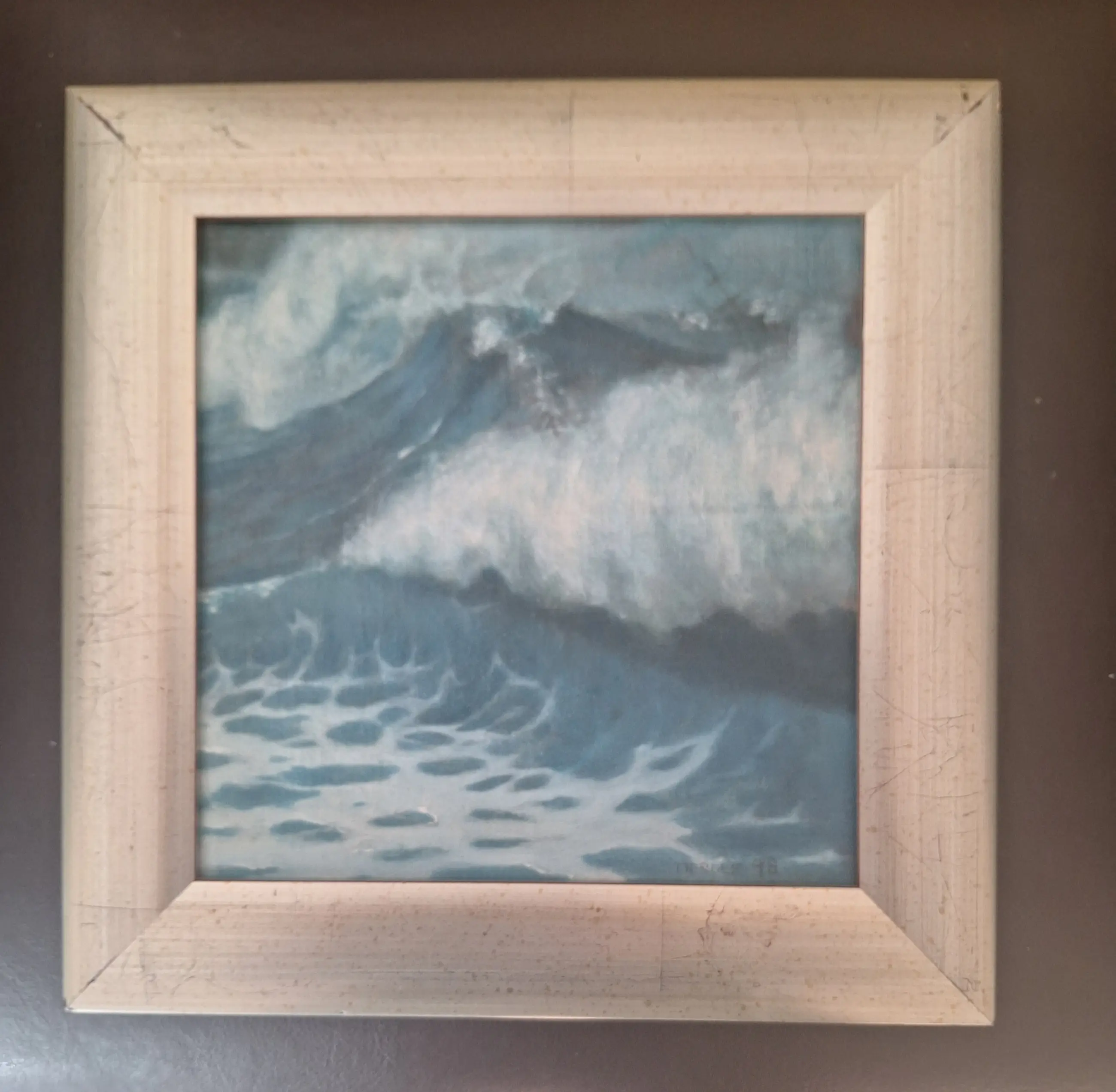 Olieverf schilderijtje gesigneerd met Tierolf 1998, houten paneel met doek bespannen in zilverkleurige lijst. Inclusief lijst 28 x 28 cm, schilderij is 20 x 20 cm. Het werk zit in een strakke lijst