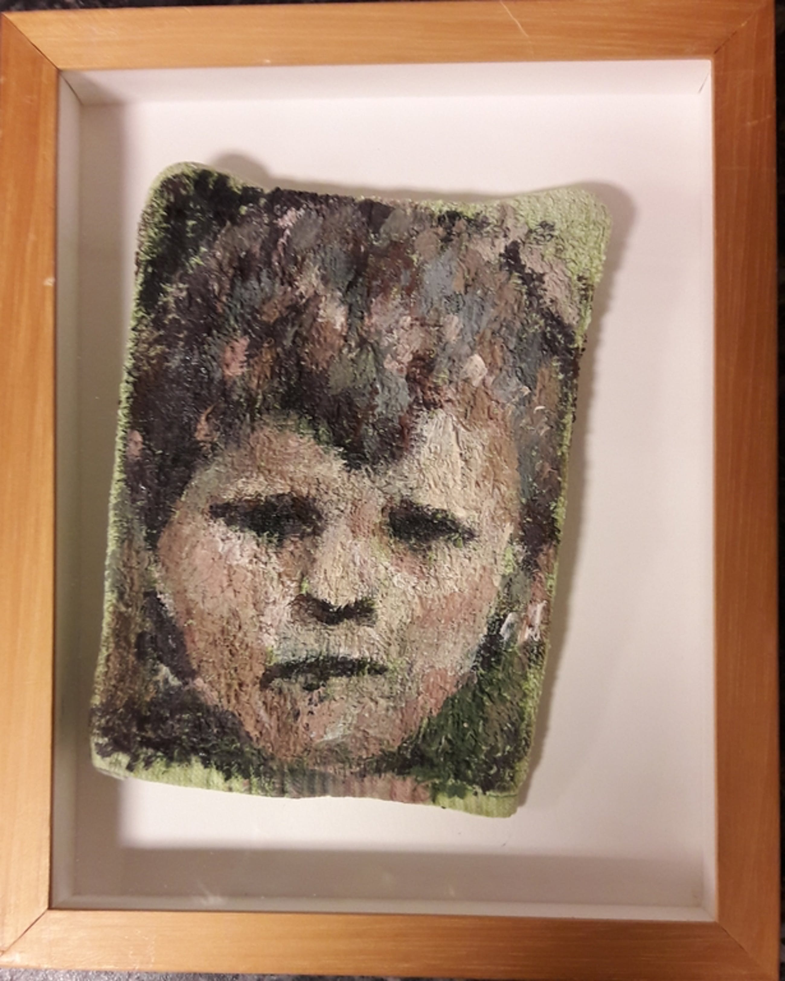 Deze jongen geverfd op een washandje met olieverf op linnen.