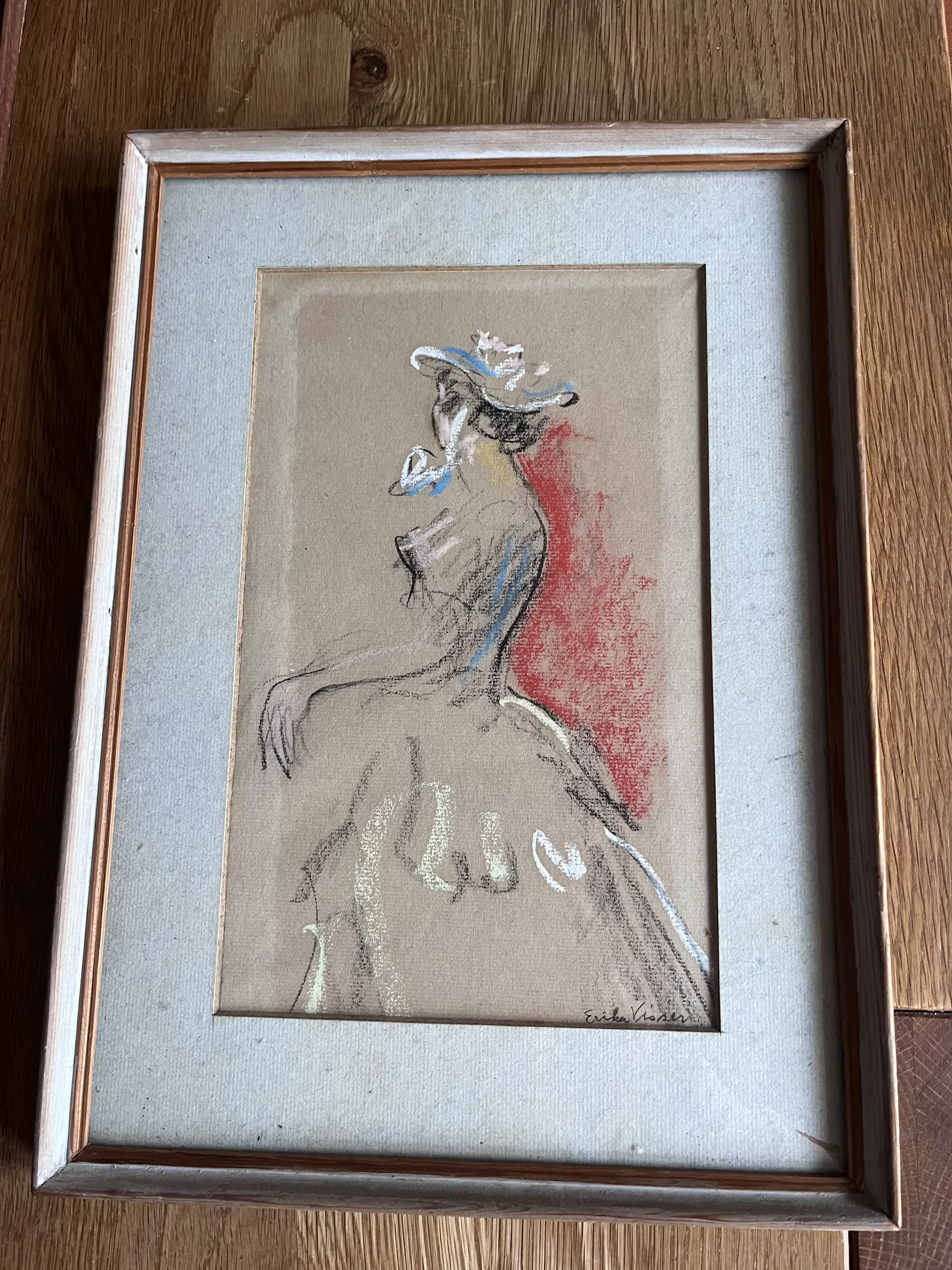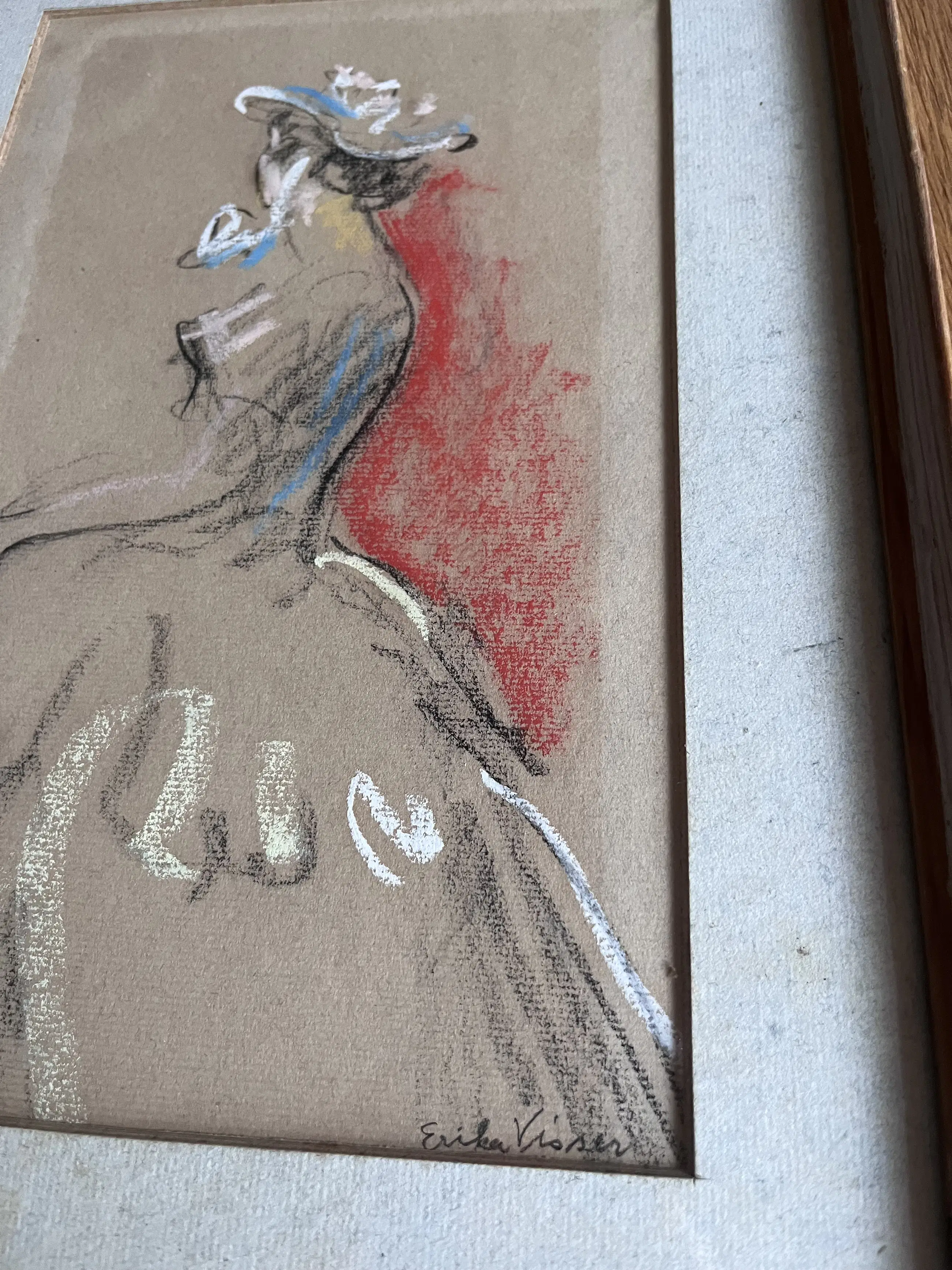 Erika Visser was een vriendin van mijn oma. Zij studeerde aan de Rijksacademie te Amsterdam. Ze was gespecialiseerd in het maken van portretten. Ze is ondermeer getrouwd geweest met de bekende surrealistische schilder Jopie Moesman. Haar laatste levensjaren had zij een relatie met Marten Toonder. Erika Visser overleed op 88-jarige leeftijd in het Rosa Sierhuis