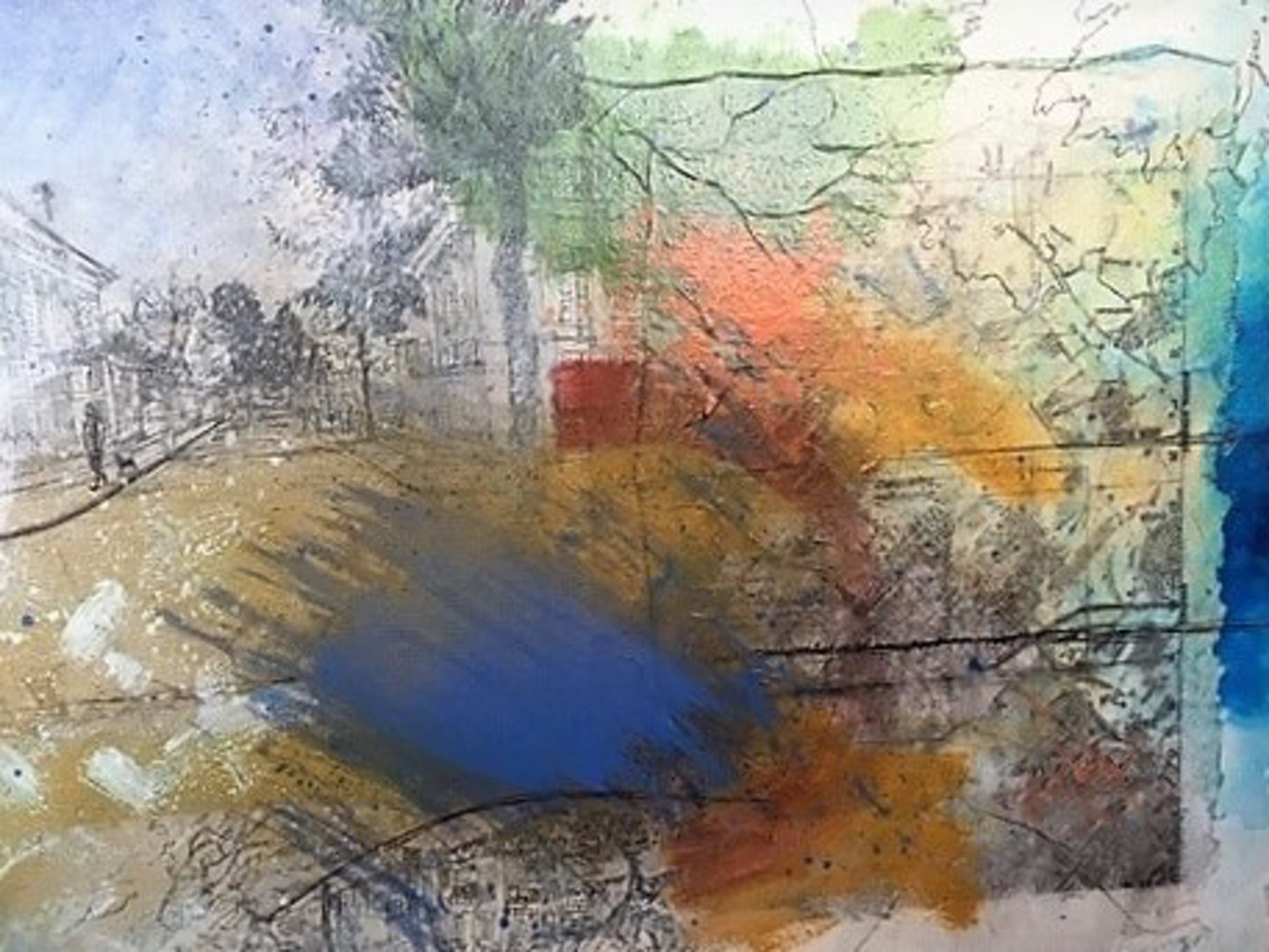 Een kopie van de dorpsplattegrond als ondergrond, de huizen rondom het plein ter plekke getekend.