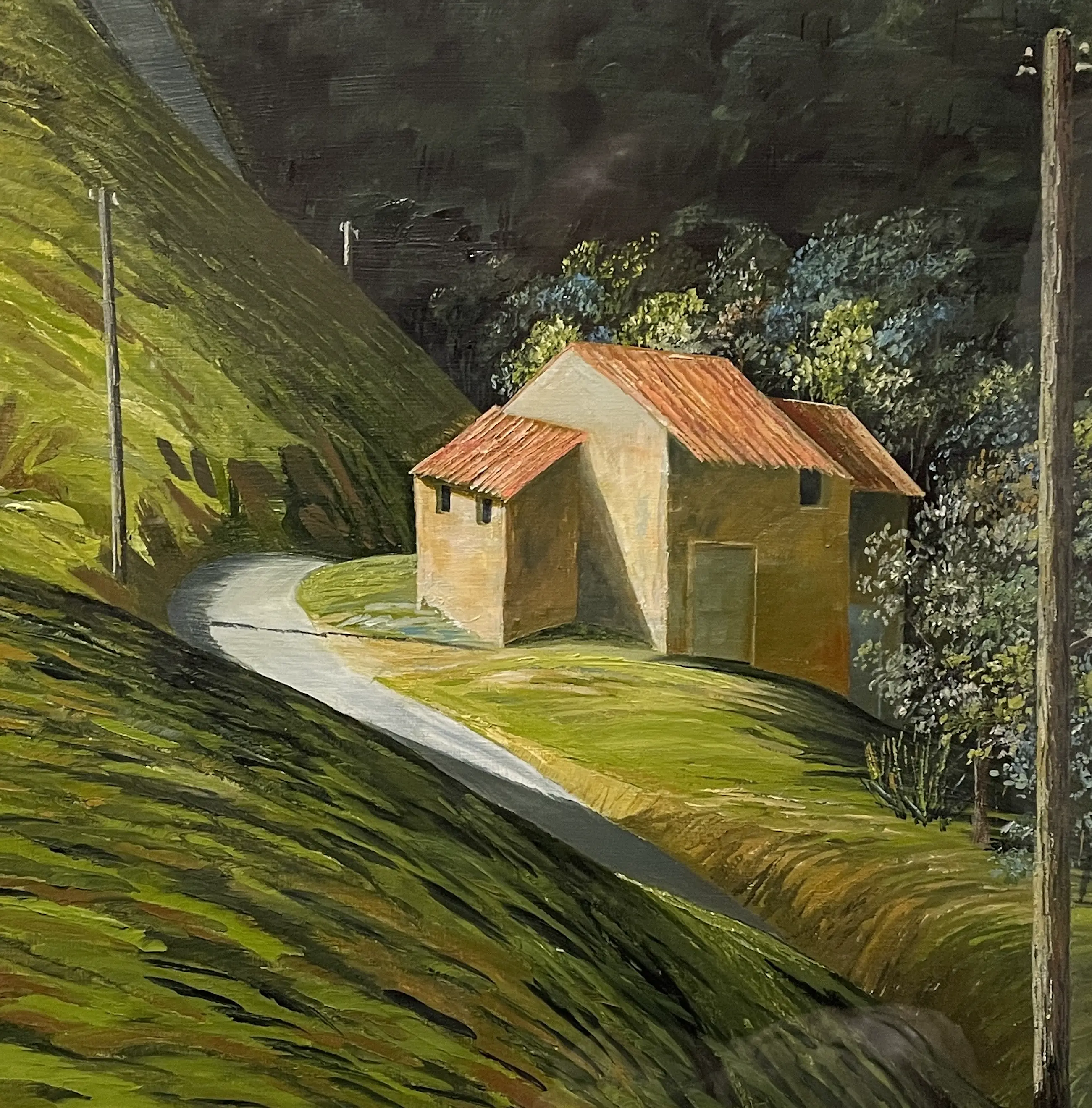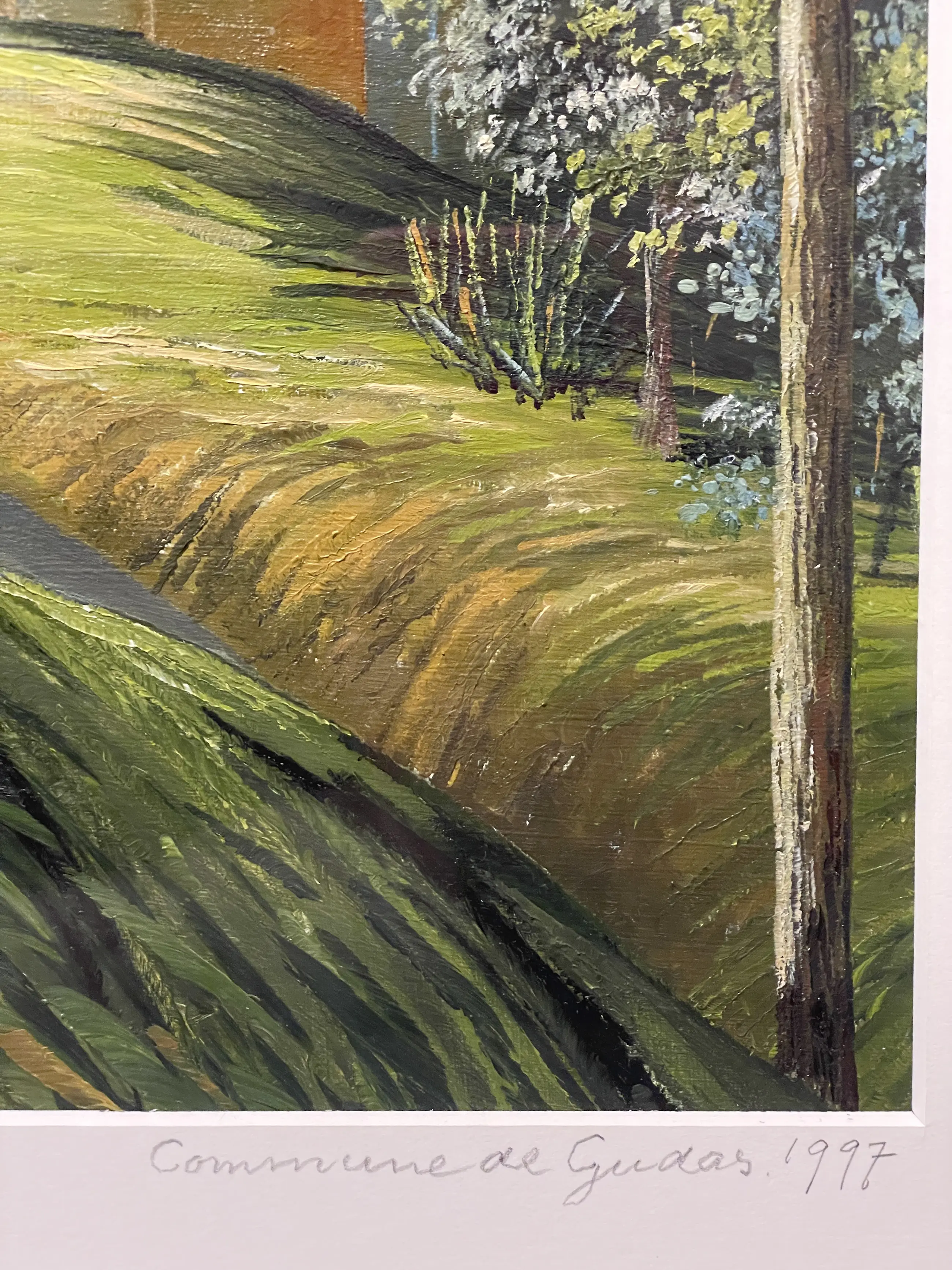 Het werk is gemaakt in/ van het slechts 123 inwoners tellende dorpje “Commune de Gudas” Occitanie Frankrijk. Haar favoriete streek waar ze graag verbleef en tientallen landschappen schilderde.
