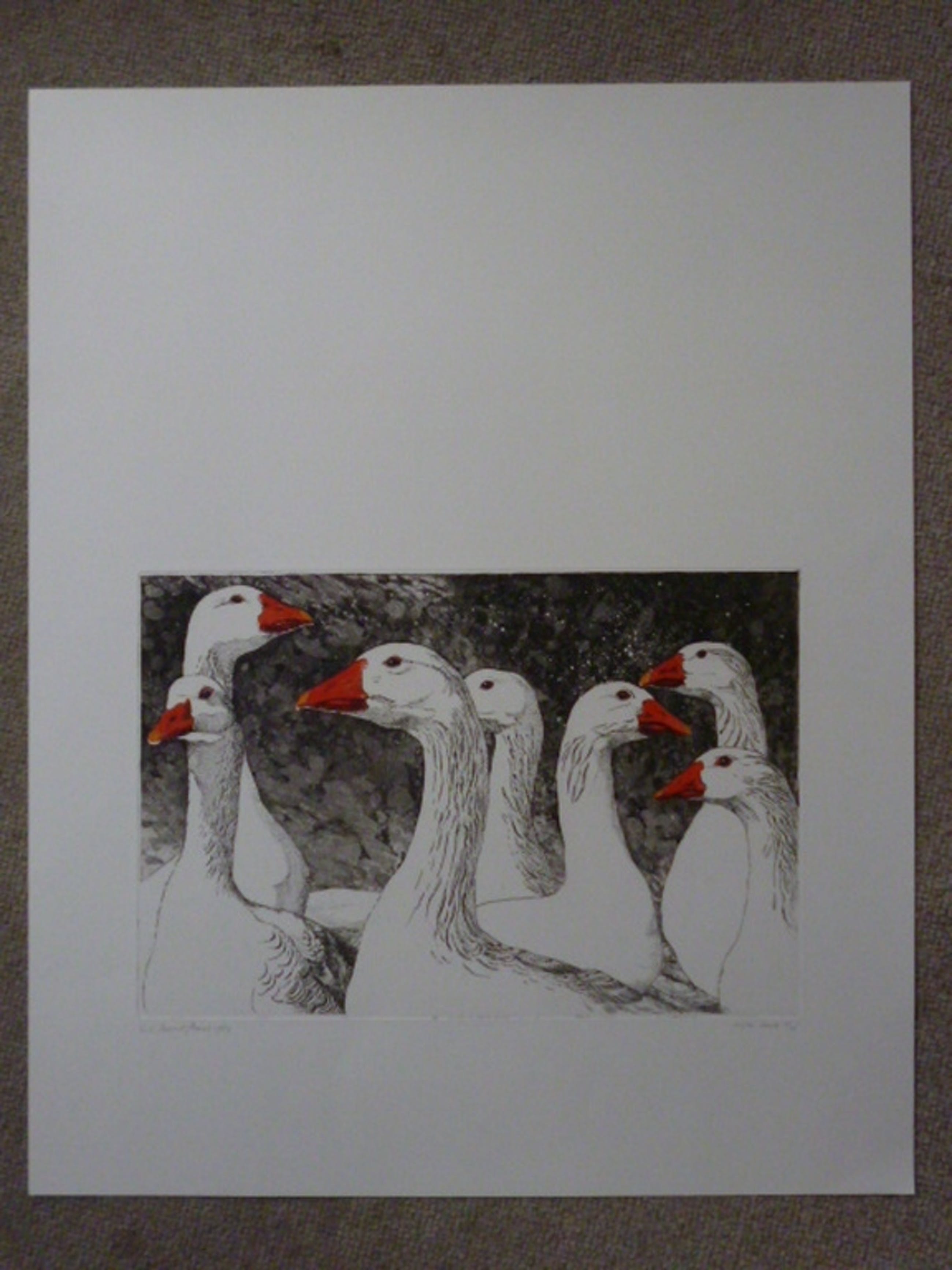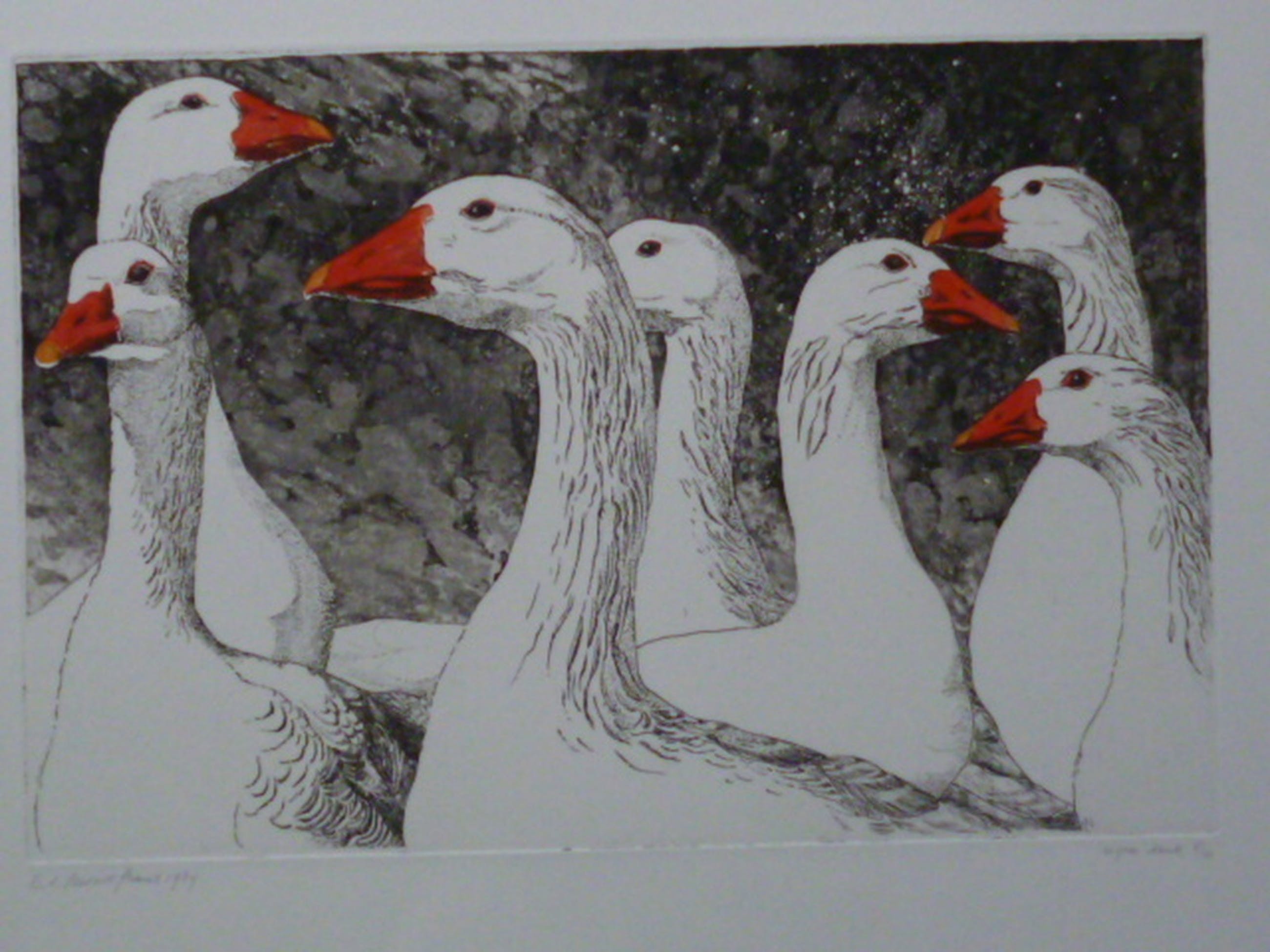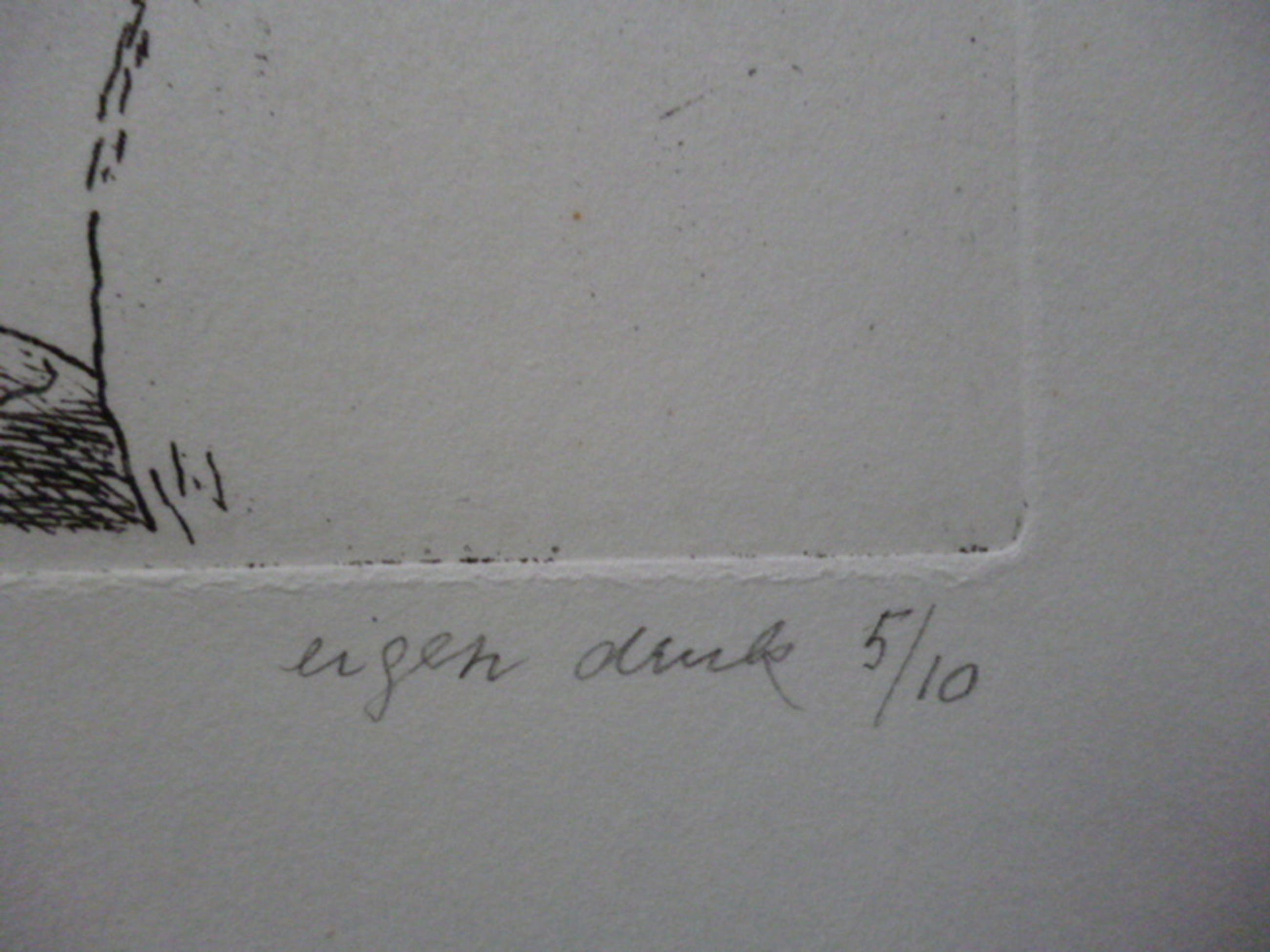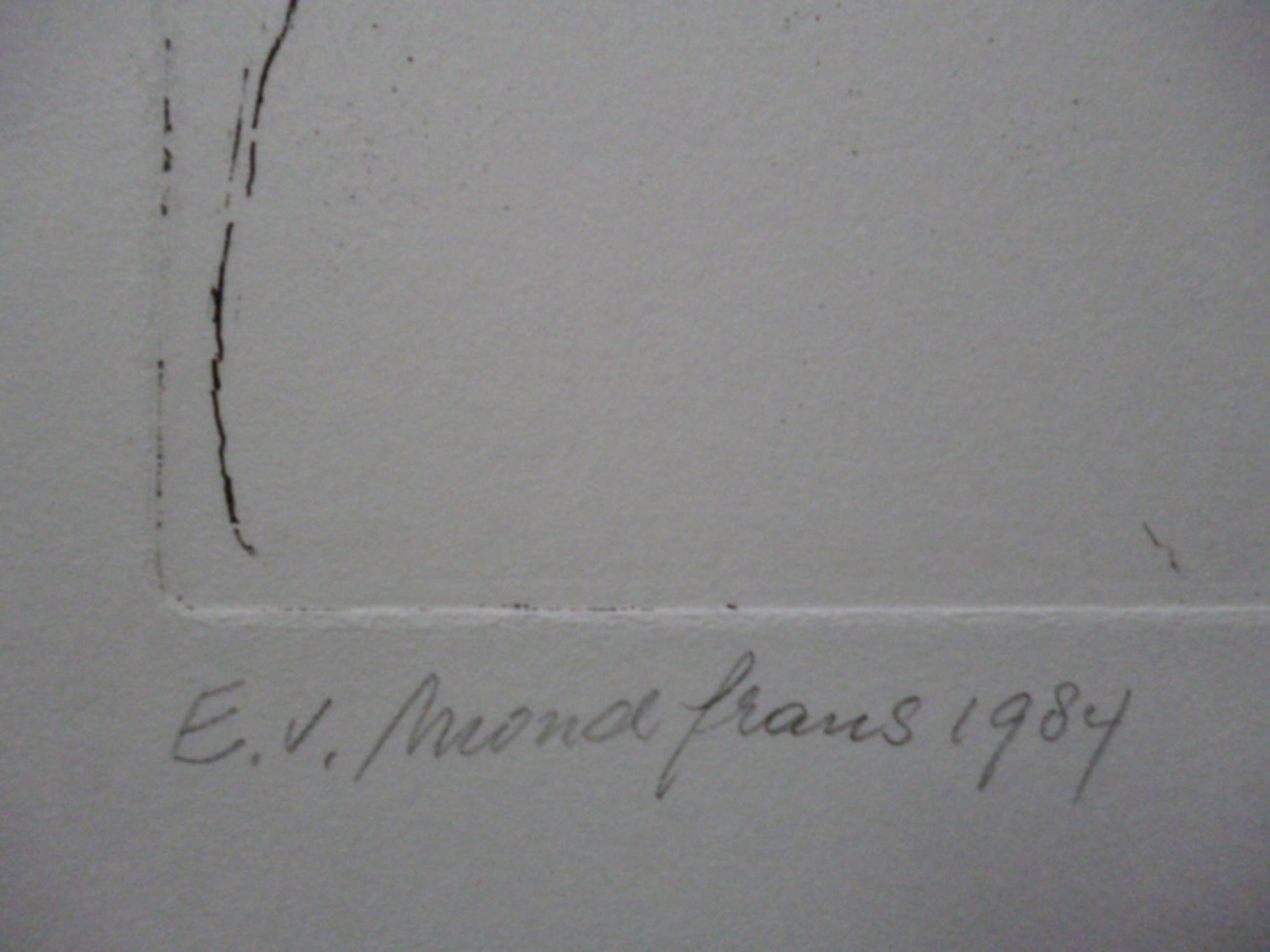 Kleurenets, potlood gesigneerd en gedateerd 1984 linksonder. Eigen druk en genummerd 5/10 rechtsonder.