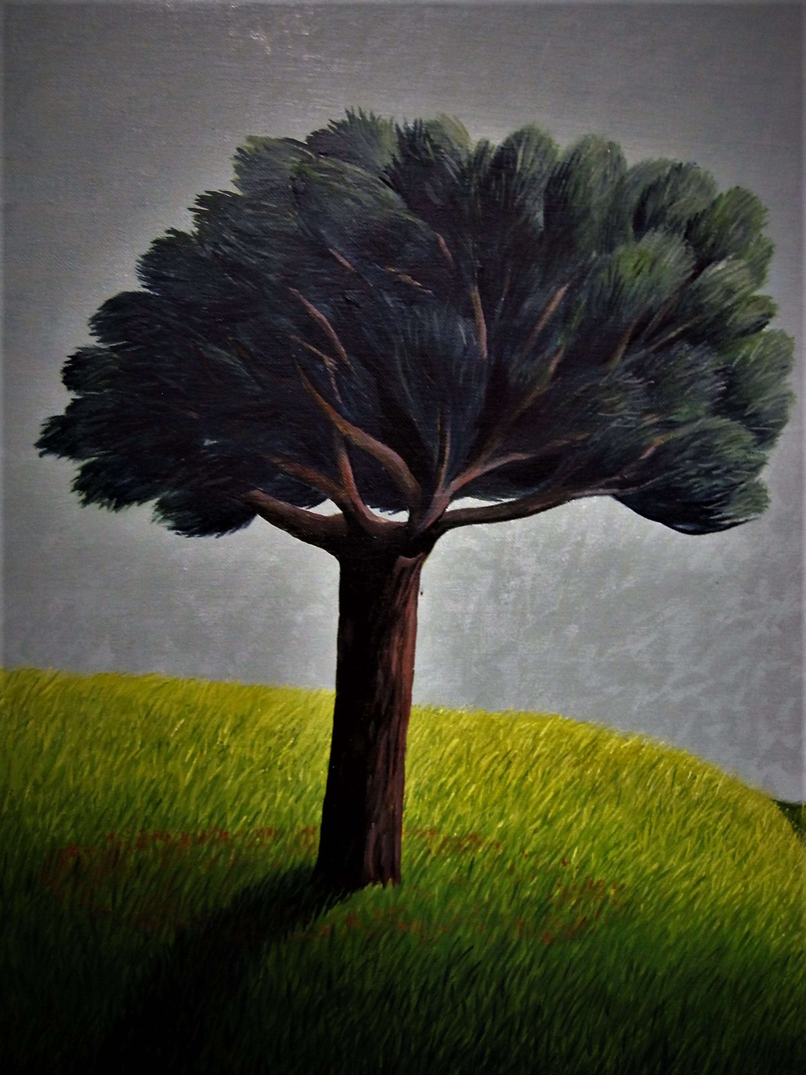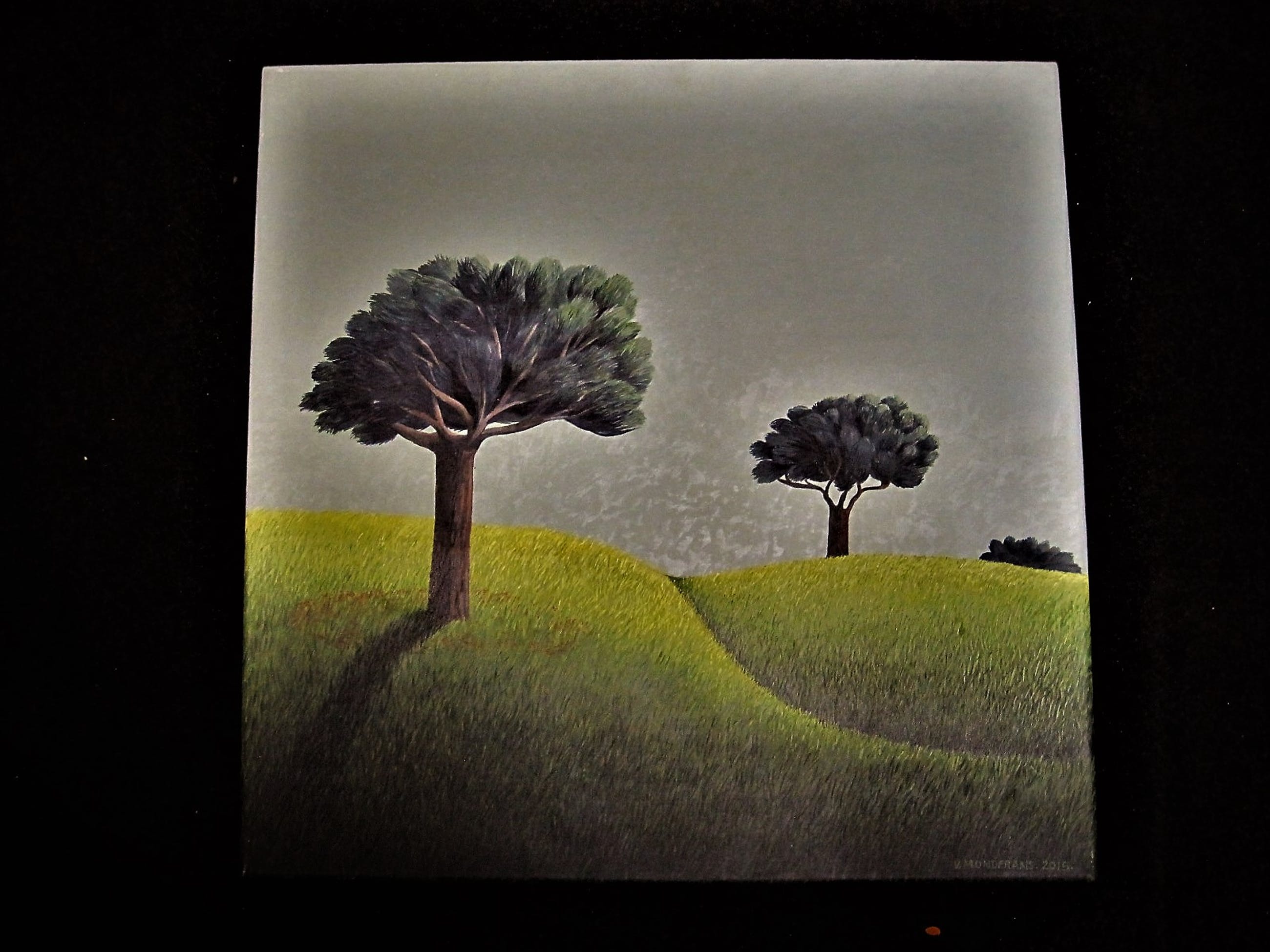 Erna van Mondfrans - Fraai verstild realistisch olieverf "Parasolbomem in Landschap" gesigneerd - Verkocht