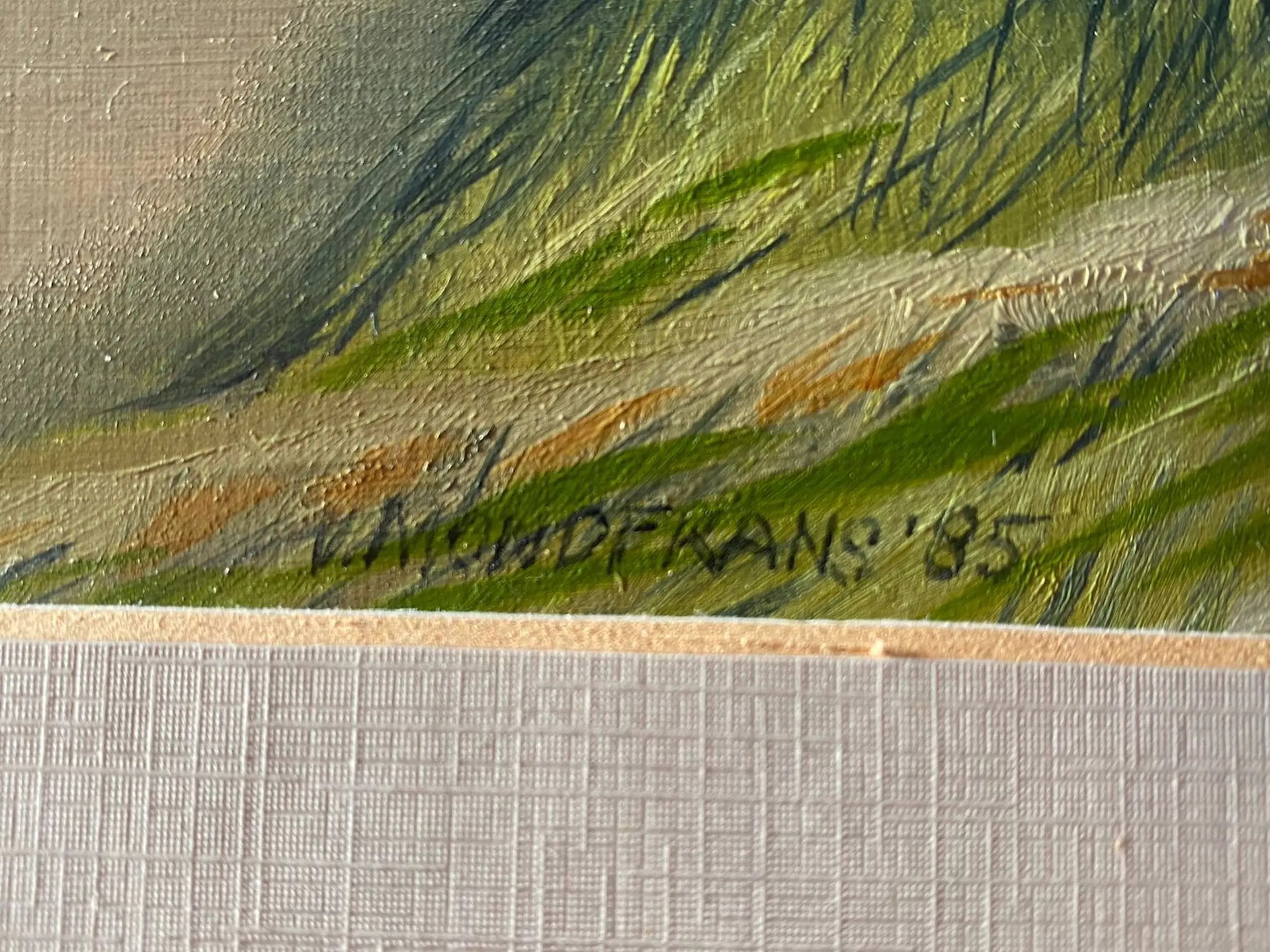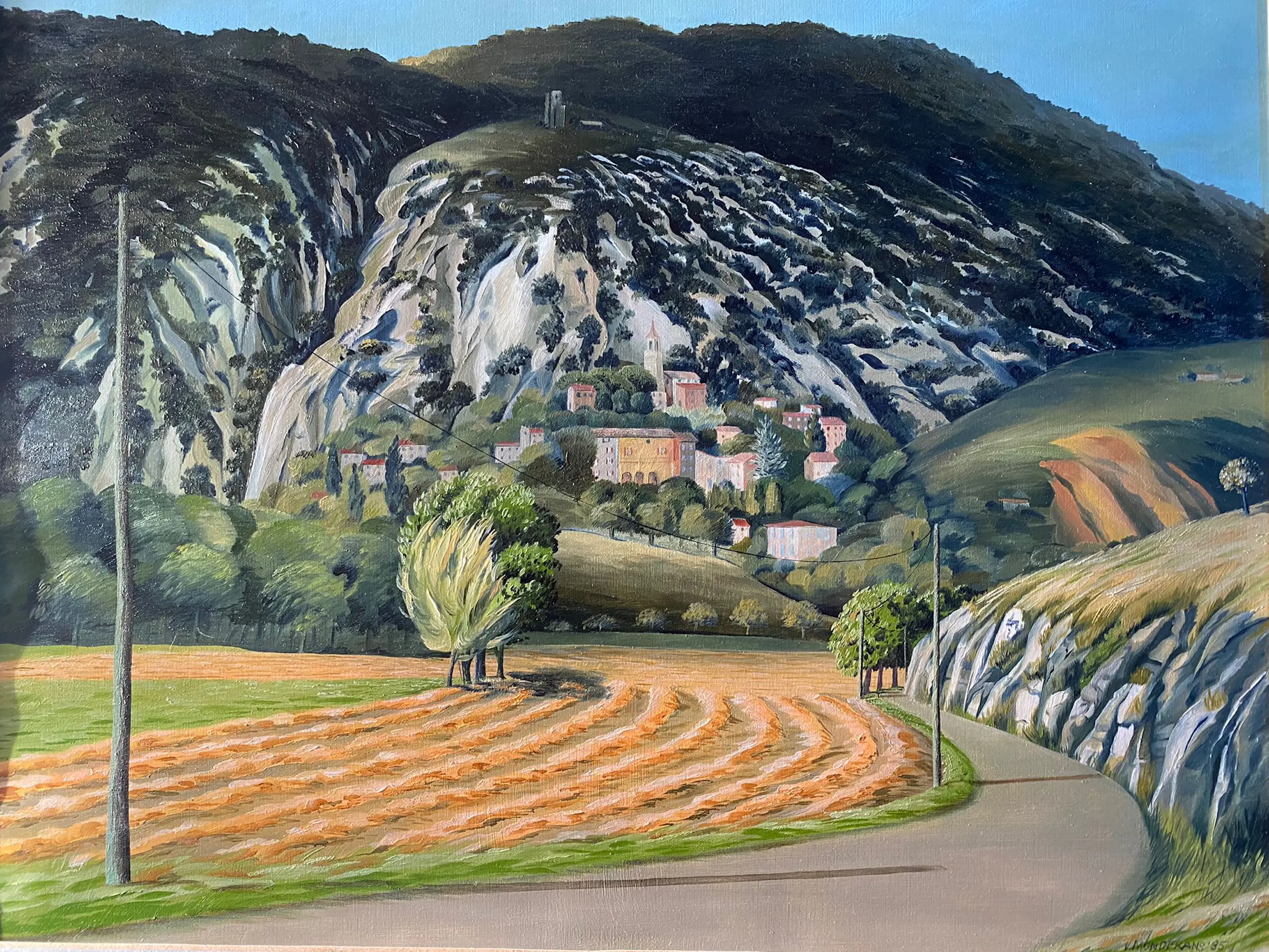 Schilderij van Erna van Mondfrans, geschilderd in 1985. Een mooi werk van een landschap in de Provence.