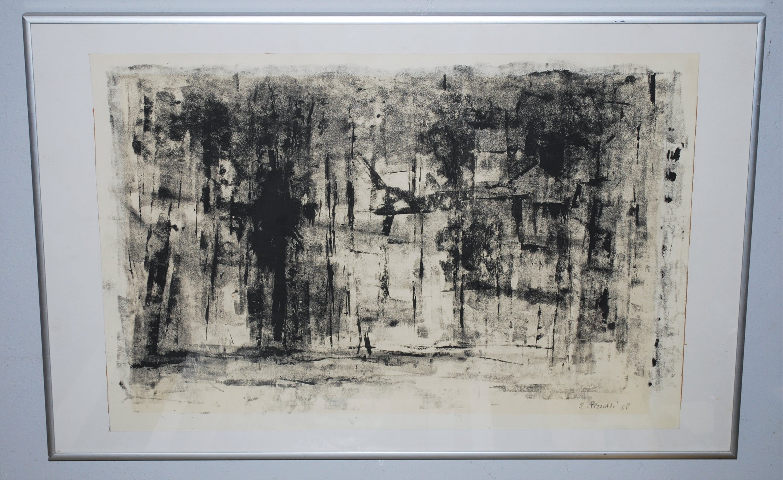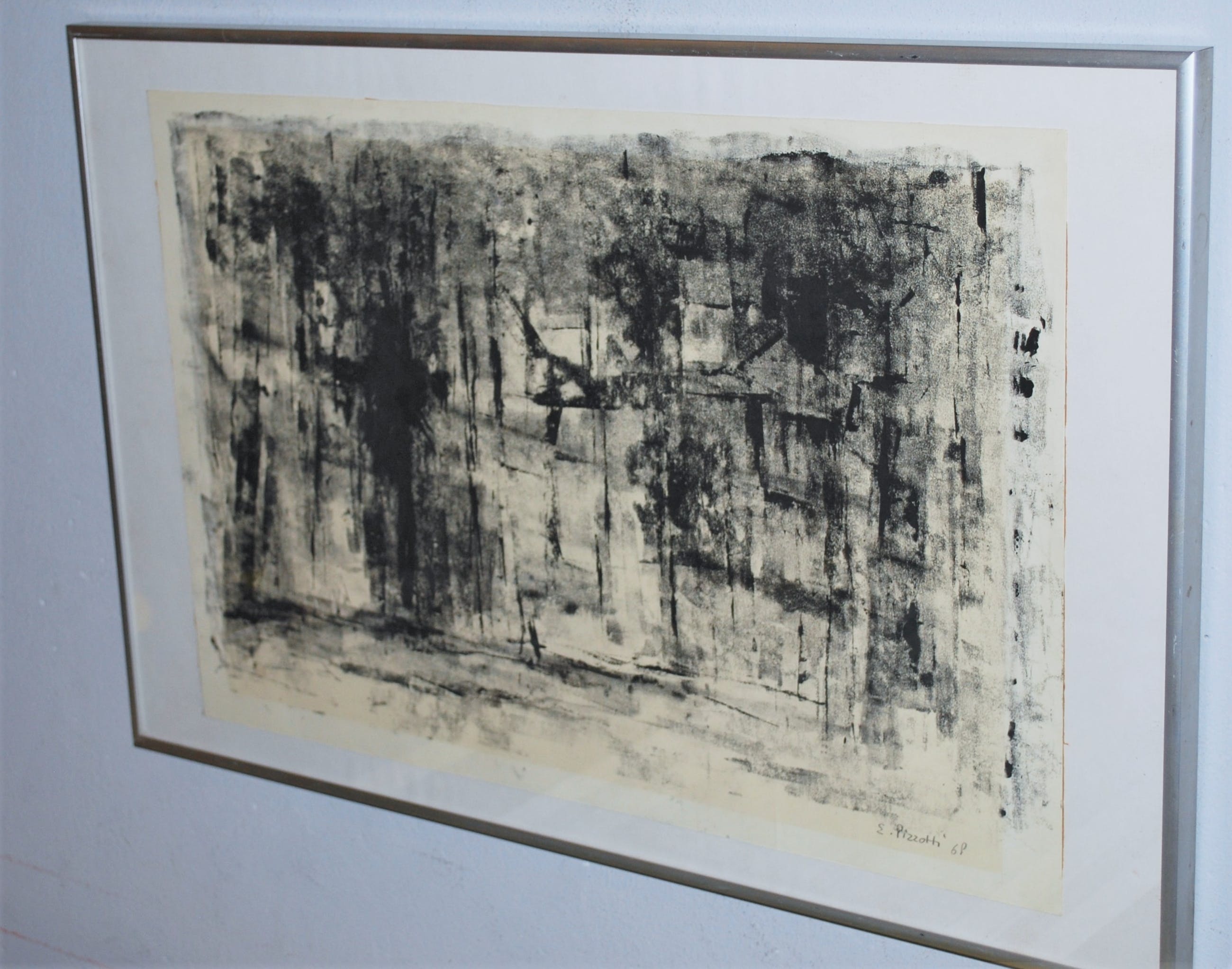 Los geplaatst met 2 plakkertjes op papier en achter glas, In een aluminium lijst in goede gebruikte staat.