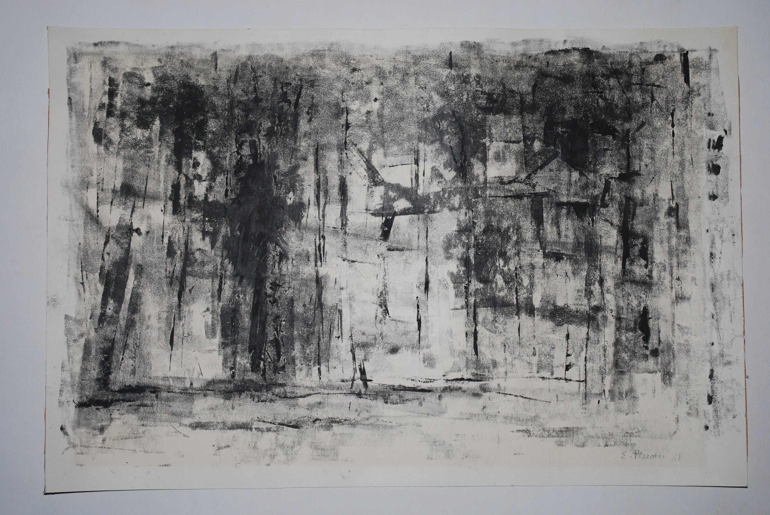 Olieverf/inkt op dun karton. Met potlood gesigneerd en gedateerd r.o.