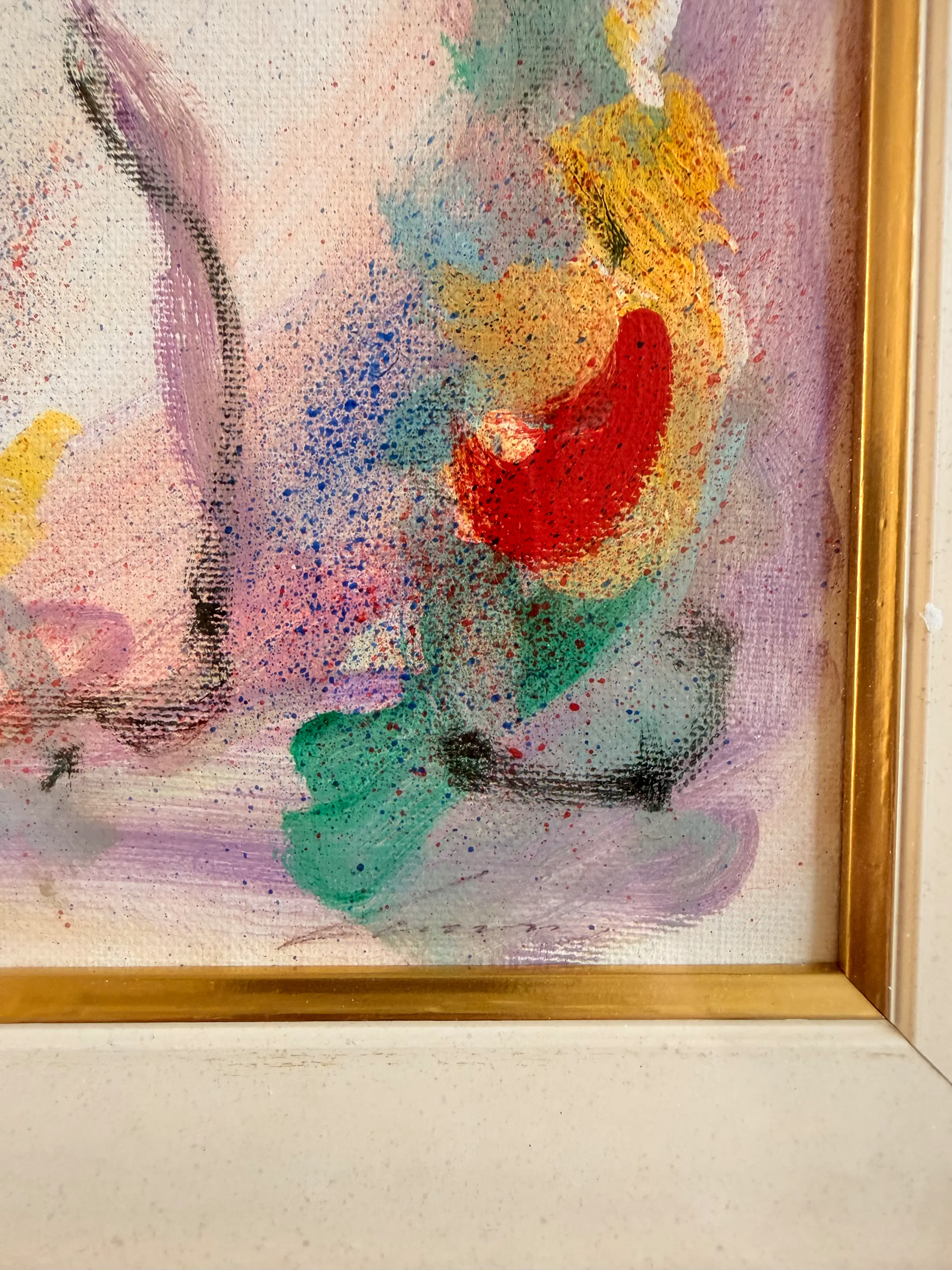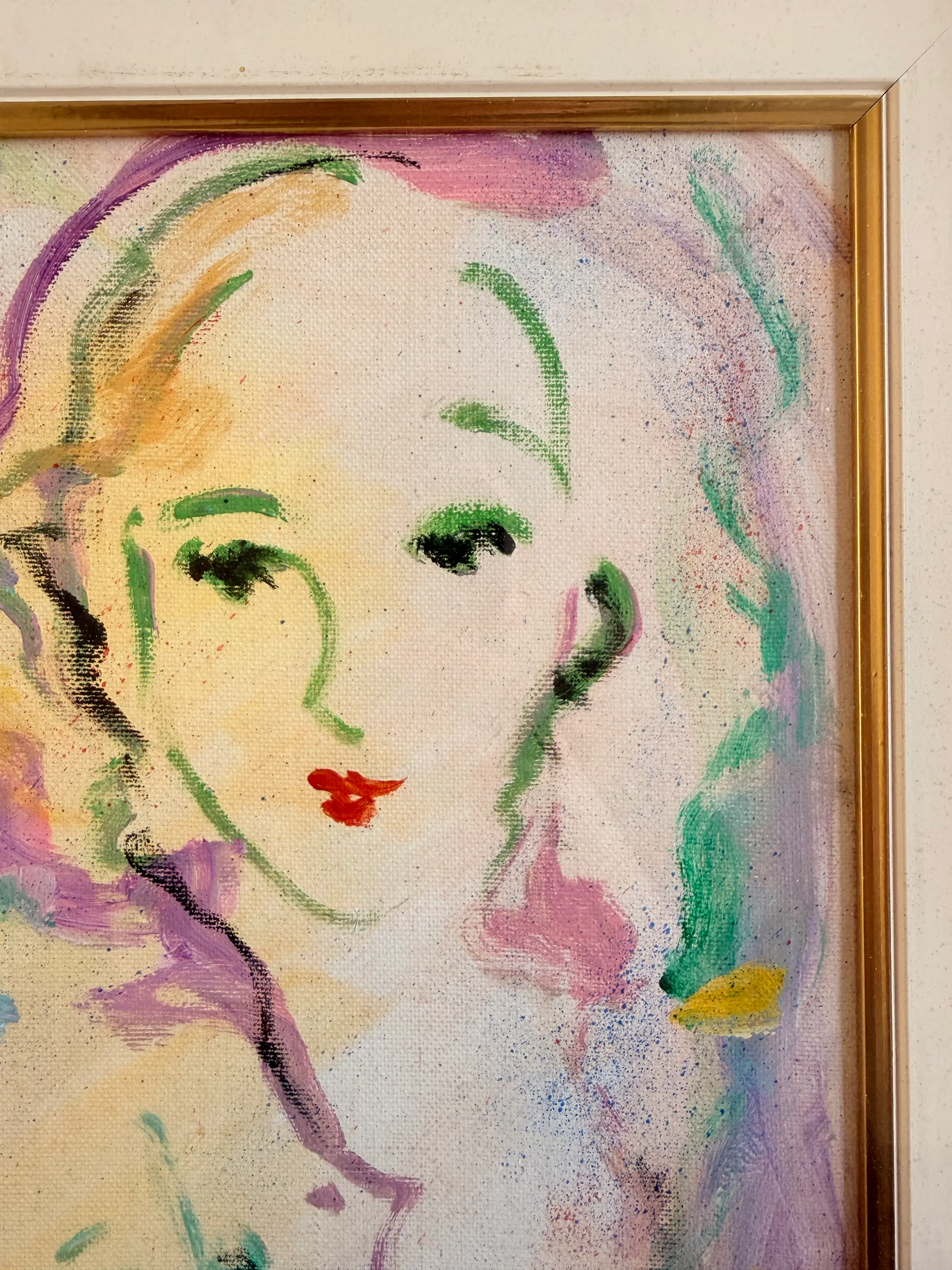 Het schilderij is gevat in een sierlijk vergulde lijst. Op de lijst zijn kleine cosmetische onvolkomenheden zichtbaar, zoals te zien is op de foto's. Het doek verkeert in uitstekende staat, zonder zichtbare tekenen van schade, veroudering of restauratie.