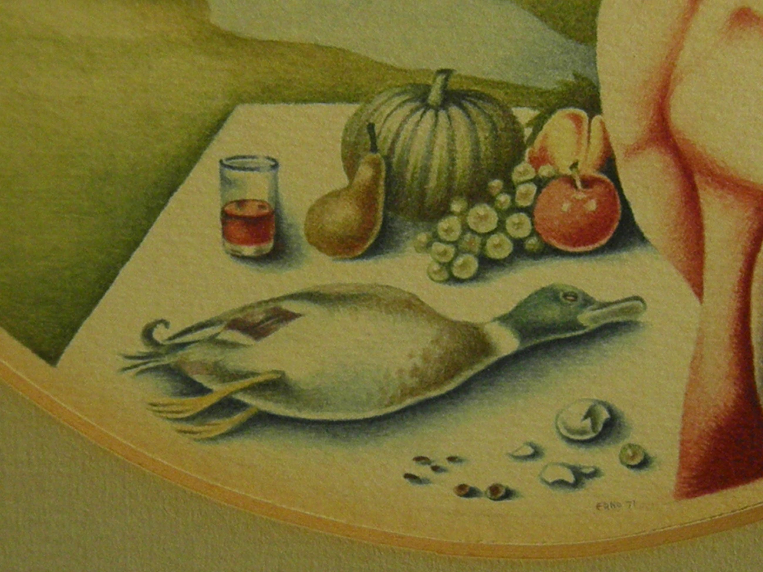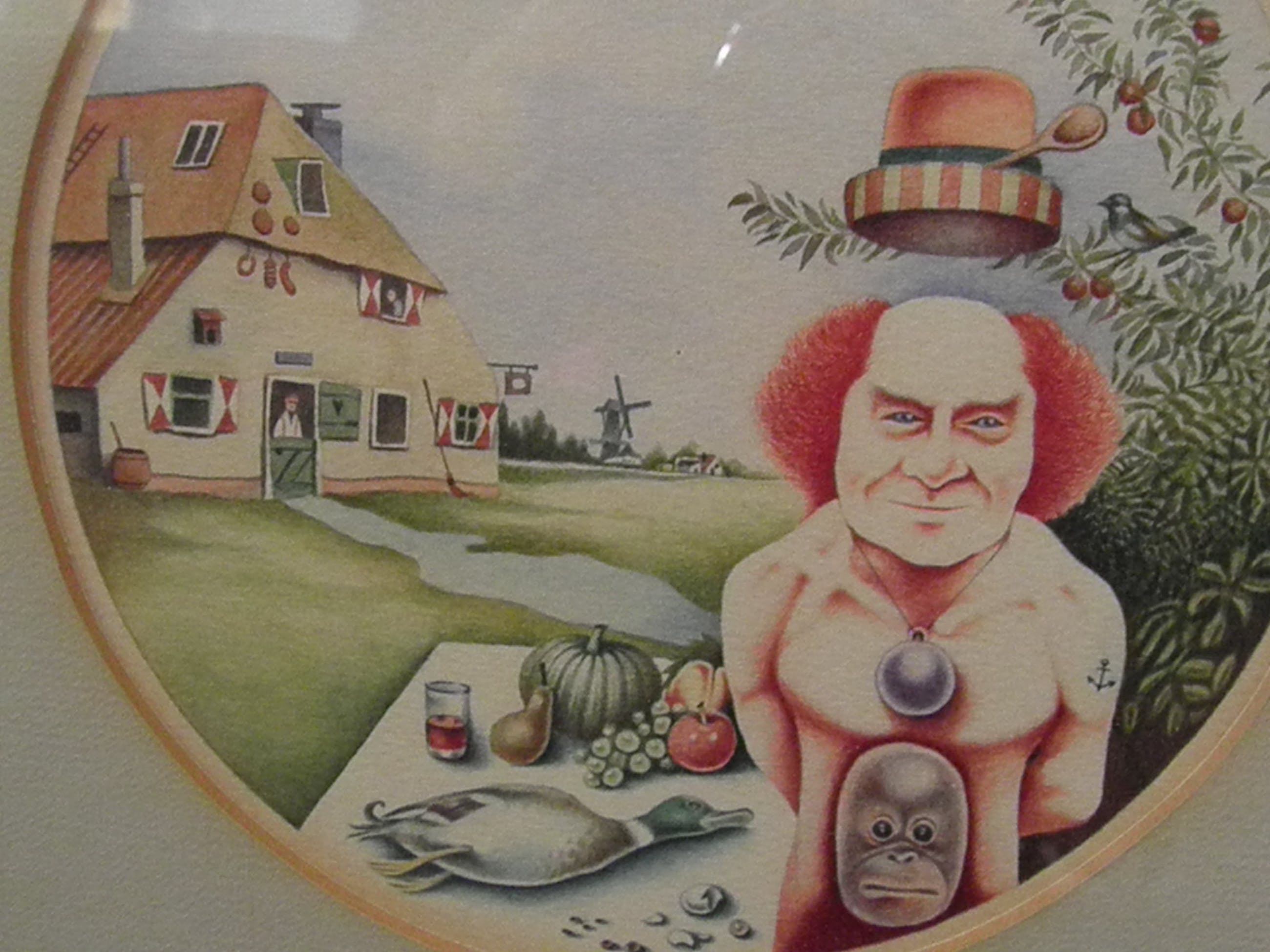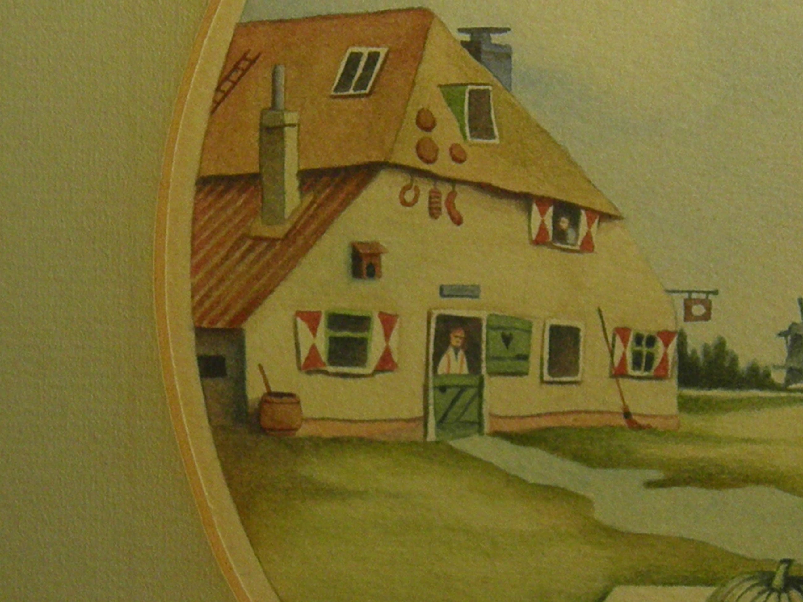 Bijzonder werk van de in Amsterdam wonende kunstenaar. Erno Tromp woont en werkt als schilder, graficus en illustrator sinds 1973 in Amsterdam. Zijn werk omvat o.a. gemengde techniek op papier, olieverfschilderijen en grafiek, waarbij vooral huisjes, dieren en het Hollandse landschap een dominerende rol spelen. Hij genoot zijn opleiding aan het Rietveld Academie en Rijksacademie te Amsterdam. Vele exposities.