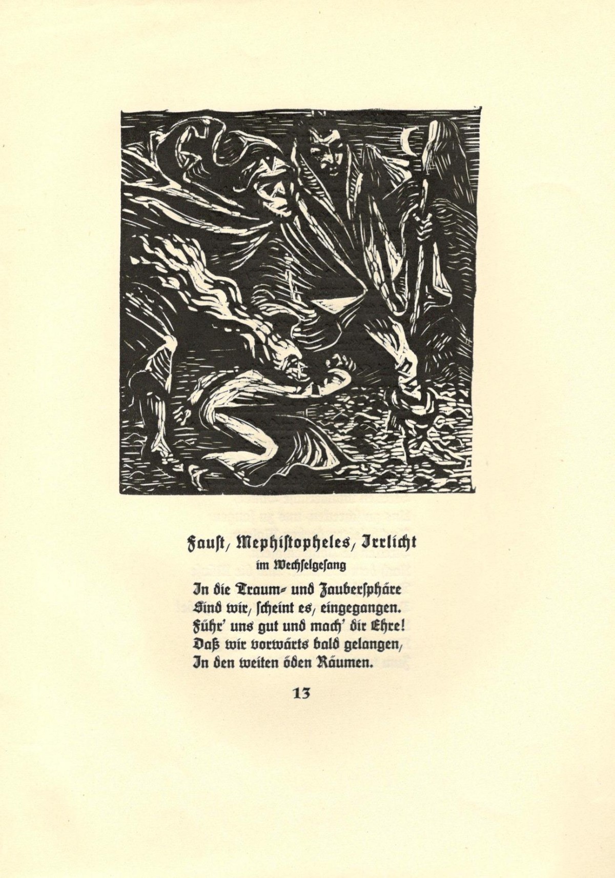 Ernst Barlach - Mephistopheles, Faust, Irrlicht (zu Goethes Walpurgisnacht) Holzschnitt 1923