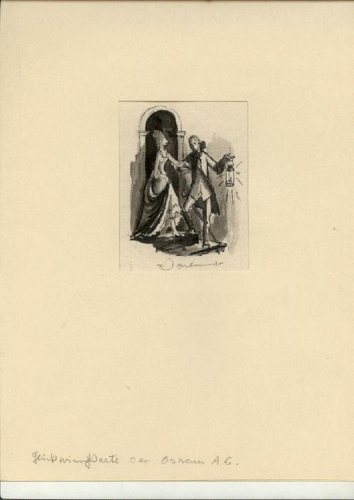 Kleiner (Tusche oder Aquarell) Entwurf einer Glückwunschkarte der Osram AG.Unterhalb der Darstellung signiert.Darstellung etwa 7 mal 10 cm. Blättchen etwas größer. Leider mit zwei Leimklecks- Punkten rückseitig unter Passepartout geklebt.Aber vorne nicht sichtbar. Ansonsten schönes Blatt. Privatverkauf aus Privatsammlung. Unversicherter Versand 5?.