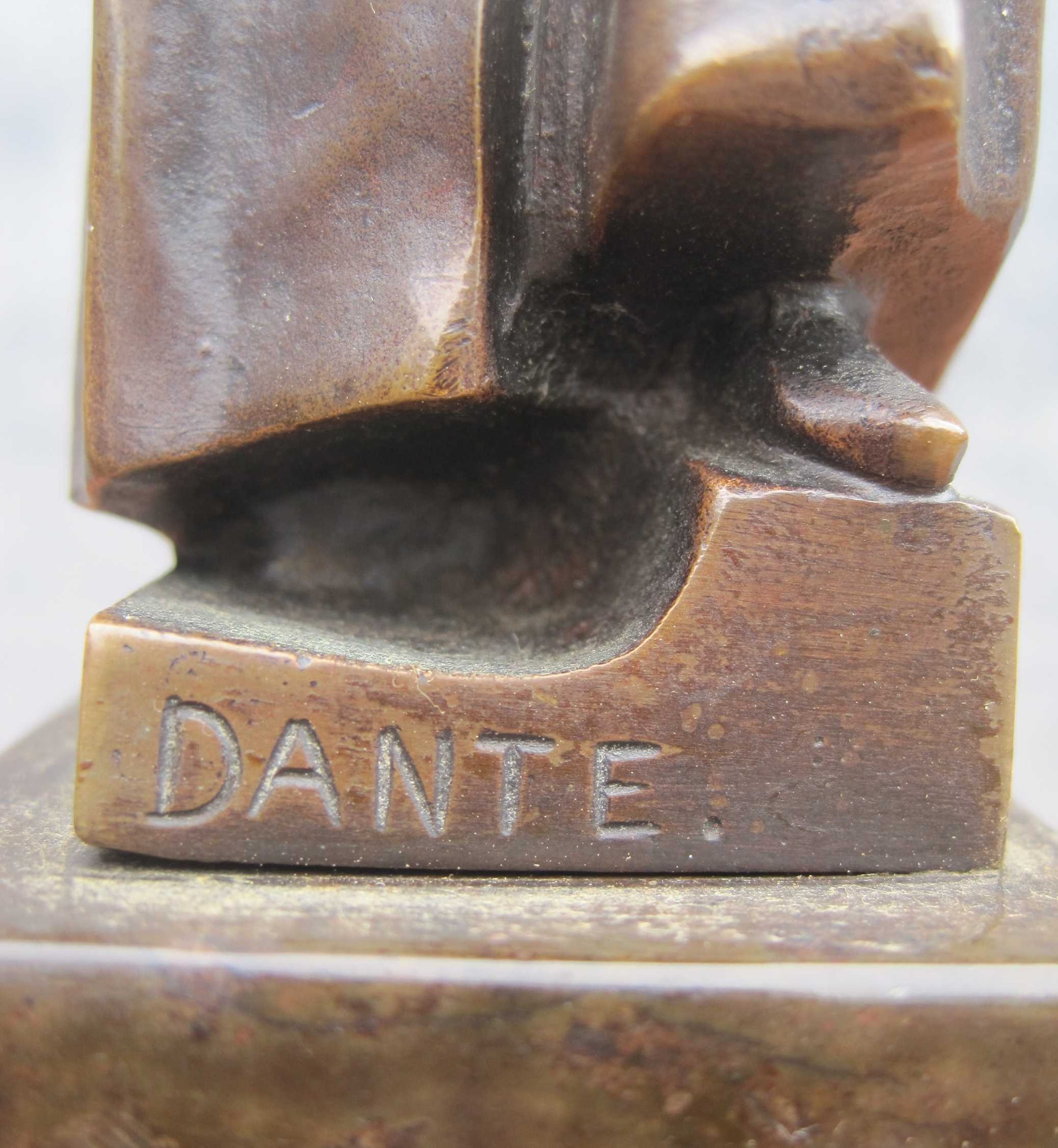 Het totale beeld van Dante inclusief de marmeren sokkel heeft een lengte van 23 cm.