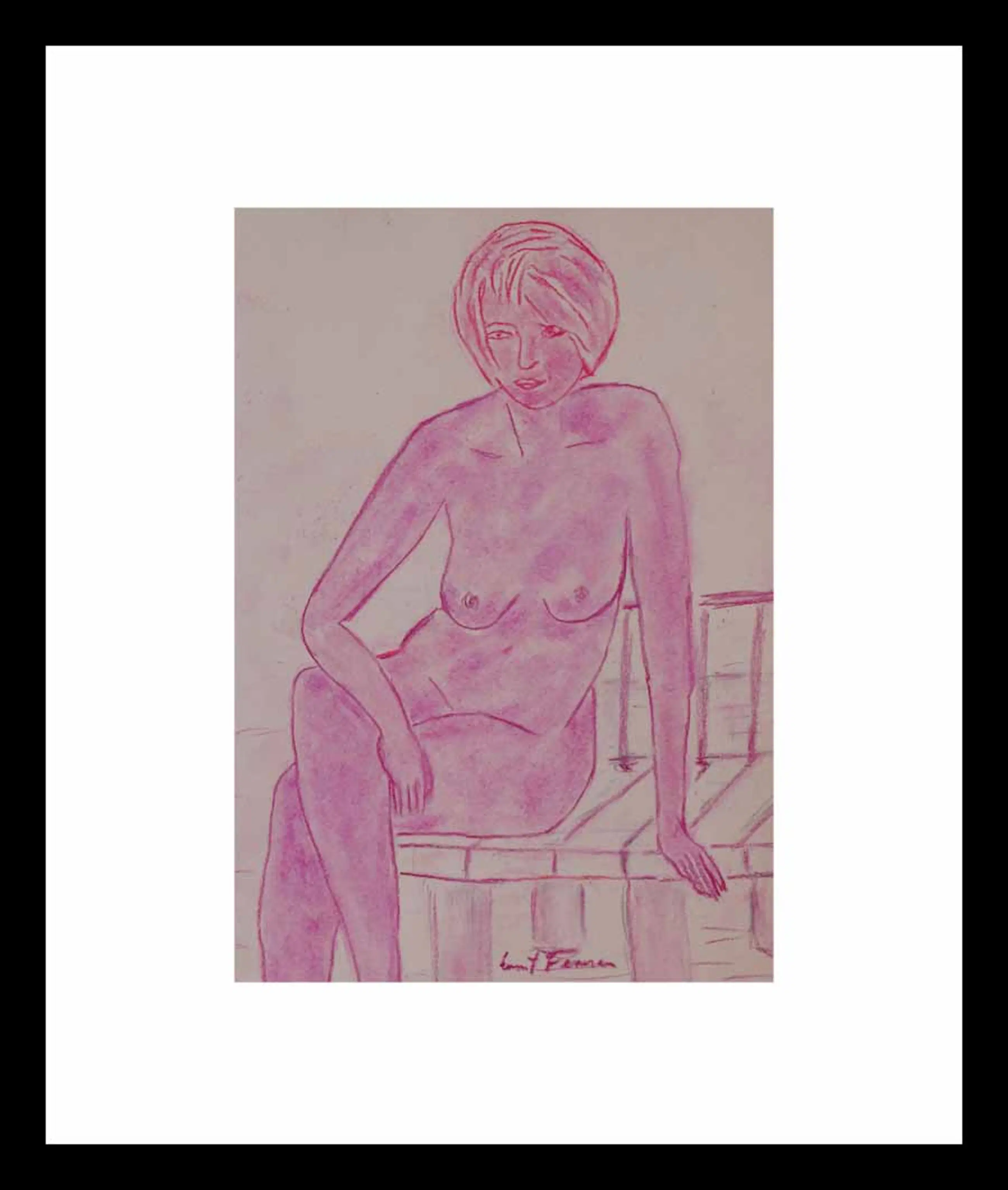 Afmetingen inclusief glaslijst: 45 x 35 cm. Het schilderij is gemaakt met een expressieve rode krijttechniek. De kwaliteit en conditie zijn zeer goed, zie foto. Verzending, verpakking en verzekering binnen Frankrijk, Duitsland, Nederland, België en Italië: € 0,00.