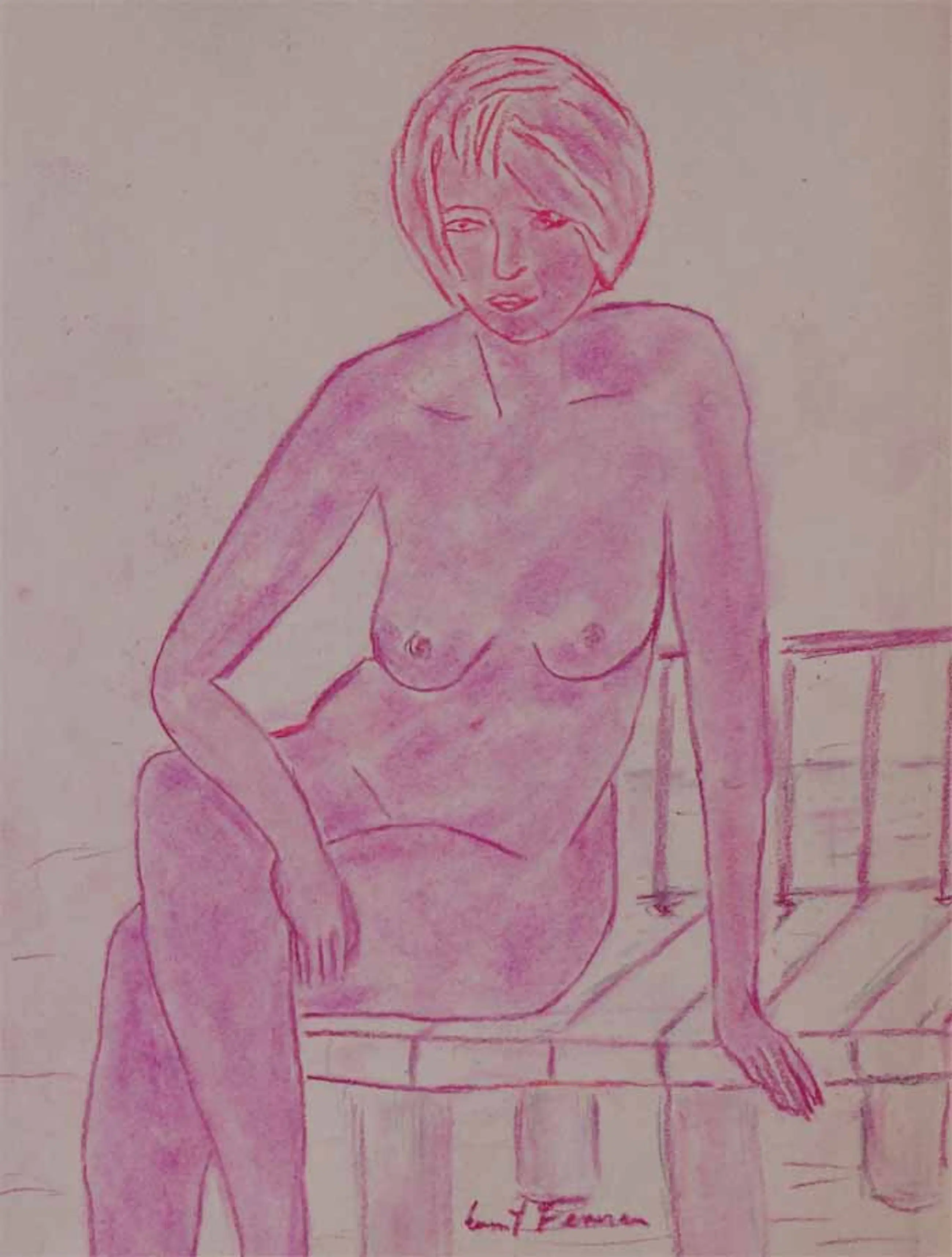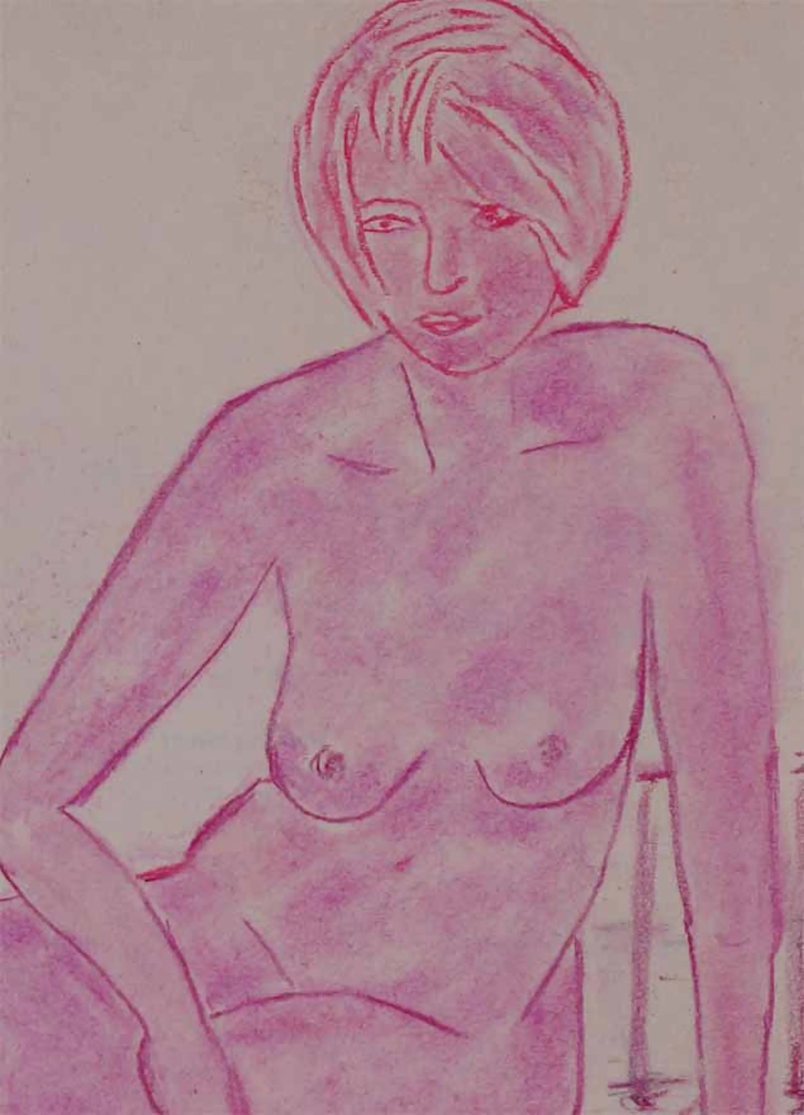 U biedt op een naakttekening in de rode krijttechniek.