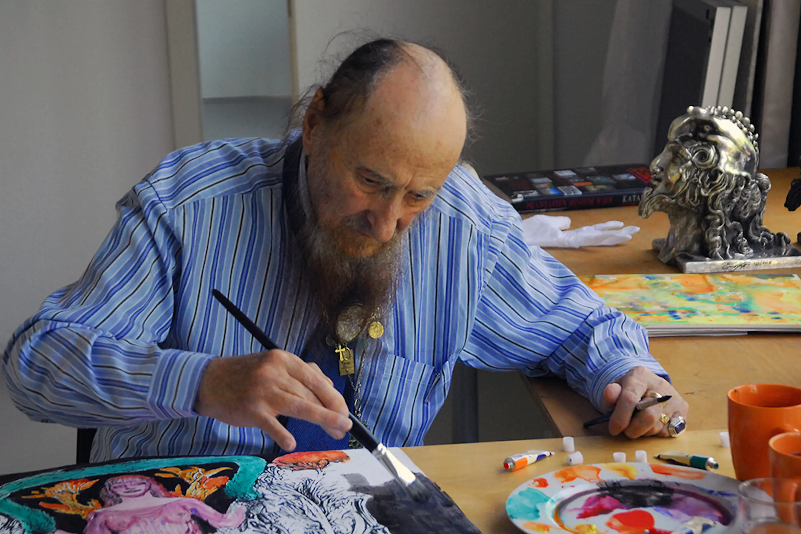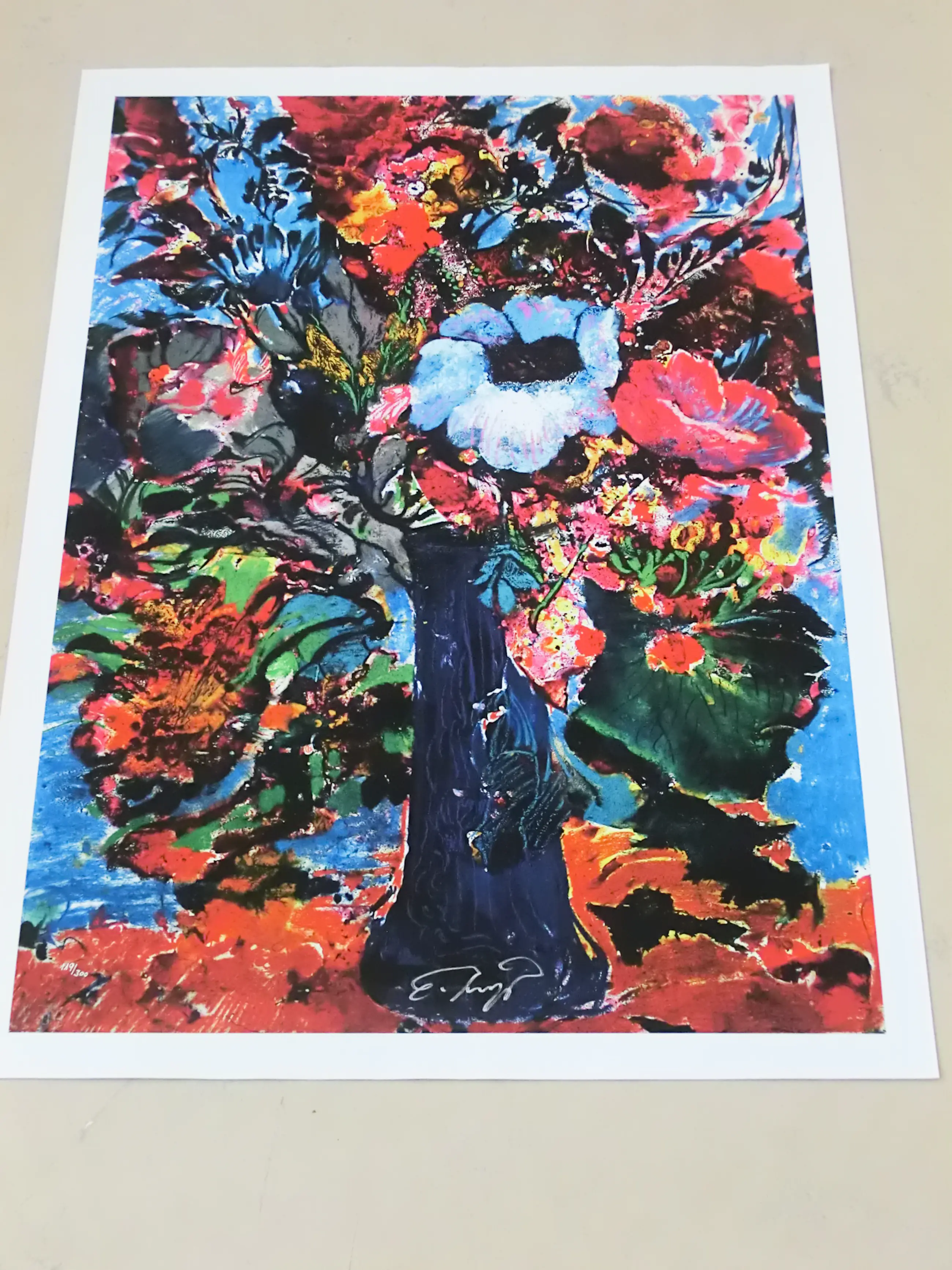 Uit 2012 van Ernst Fuchs, de Weense alleskunner. Paar jaar voor zijn dood. Maar nog springlevend in dit werk. Een oplage van 300 waarvan dit nummer 117 is (plus 30 e.a.). Nooit ingelijst geweest. Mooi giclee op linnen.