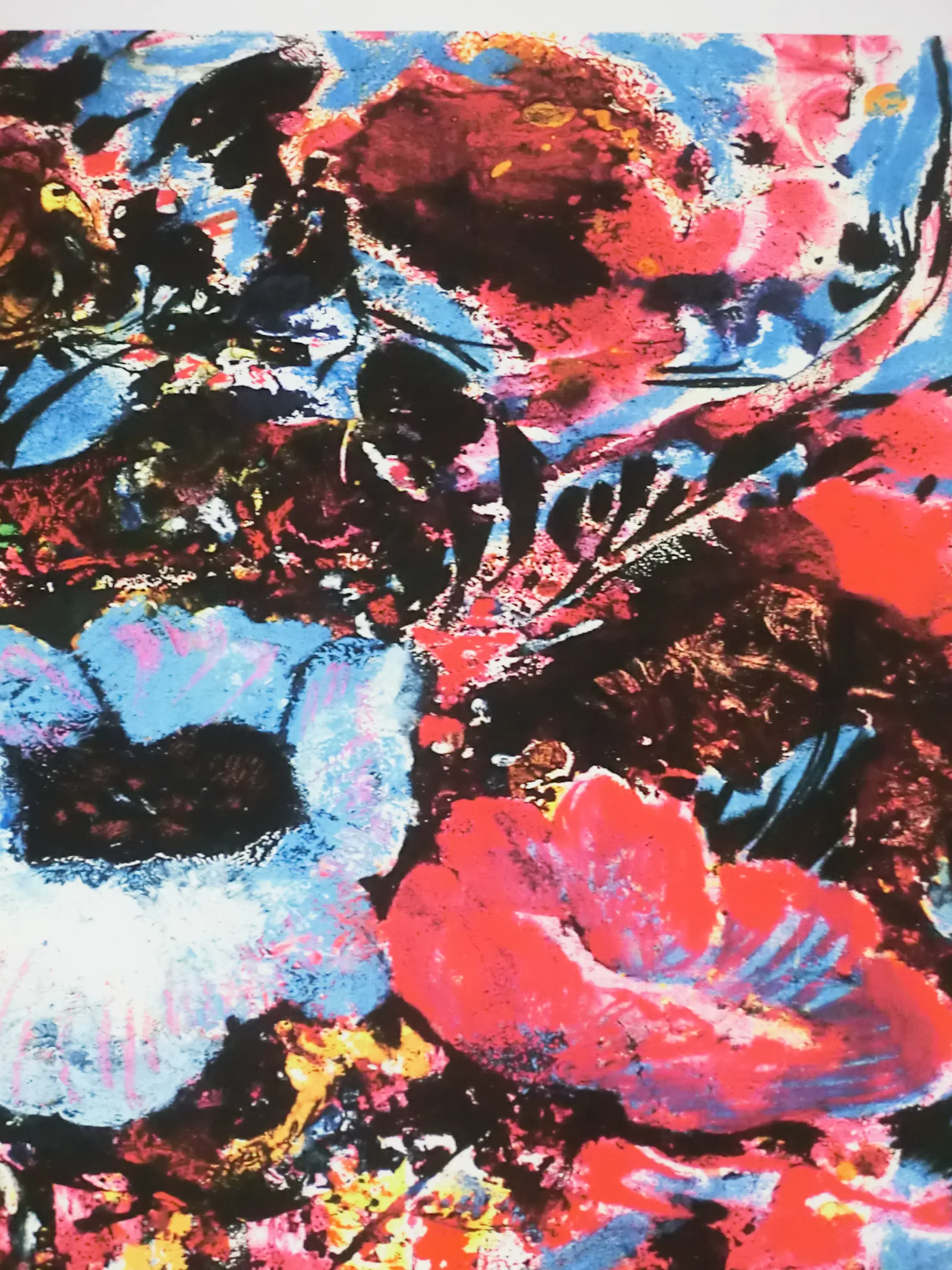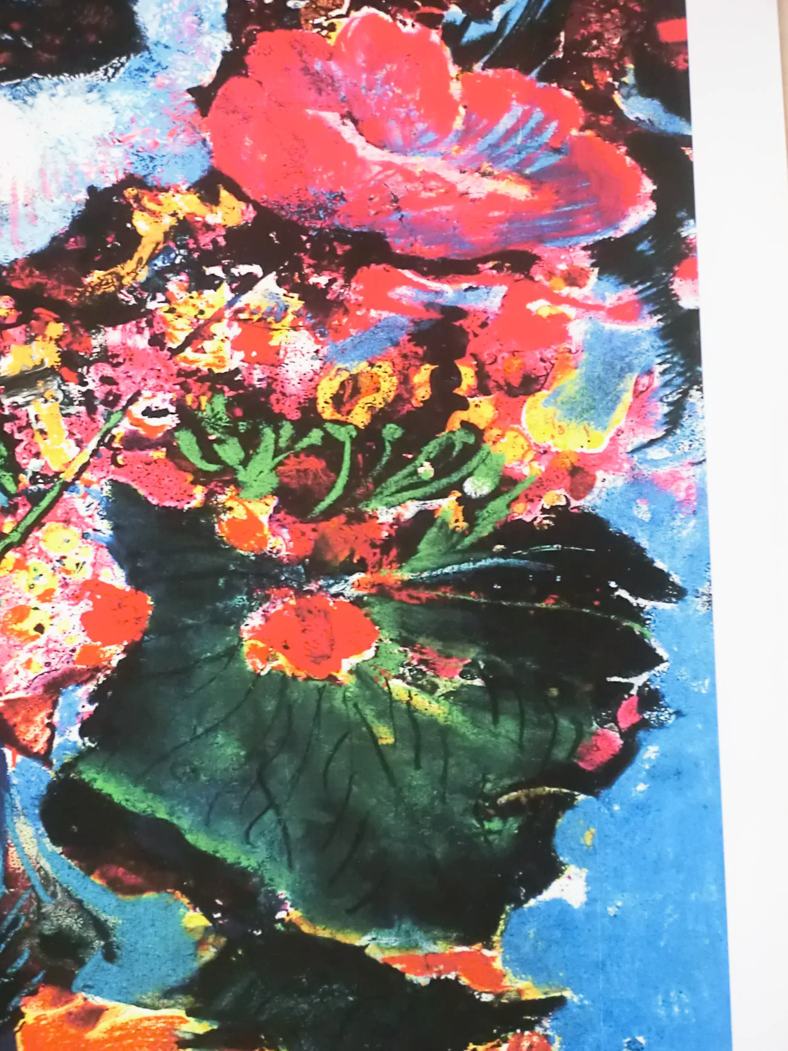 Wat een overweldigende kleurenpracht. Een overstelpende knal van kleuren spat van het linnen doek af bij deze bonte bloemenstruik.