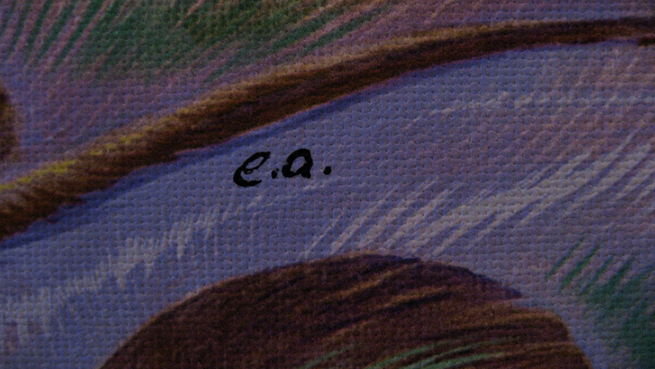 Handgesigneerde kleurrijke haarscherpe print op linnen van 61-44 cm(blad) 55-38 cm( beeld)