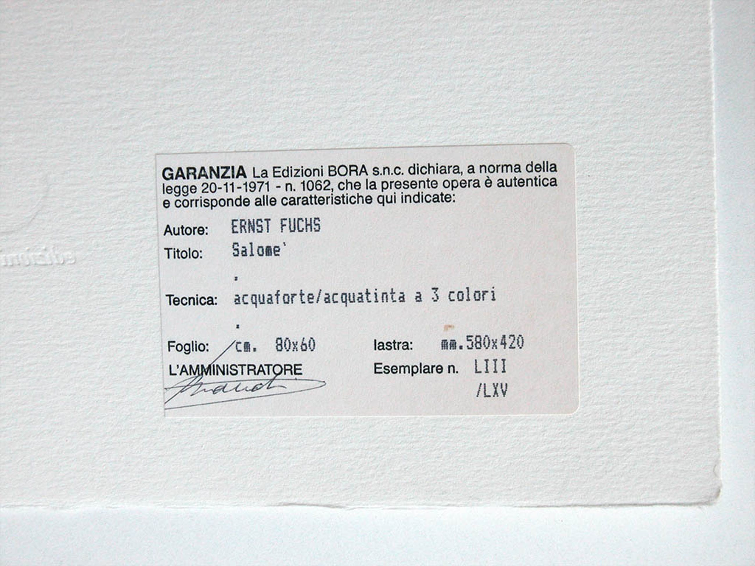 Op achterzijde voorzien van authenticiteitslabel/certificaat (zie foto 6). Met hoogdruk stempel van ‘Edizione BORA’ in papier (links onder).