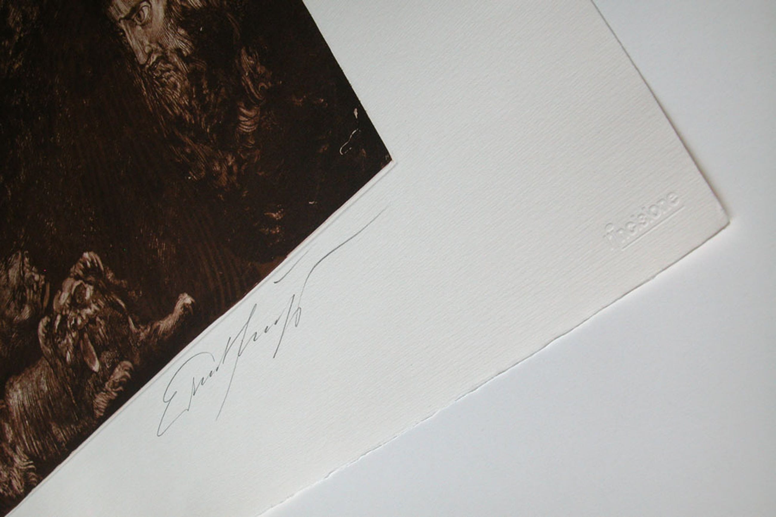 Originele aquaforte/aquatint (ets) in 3 kleuren op woven cotton-paper van de Weense