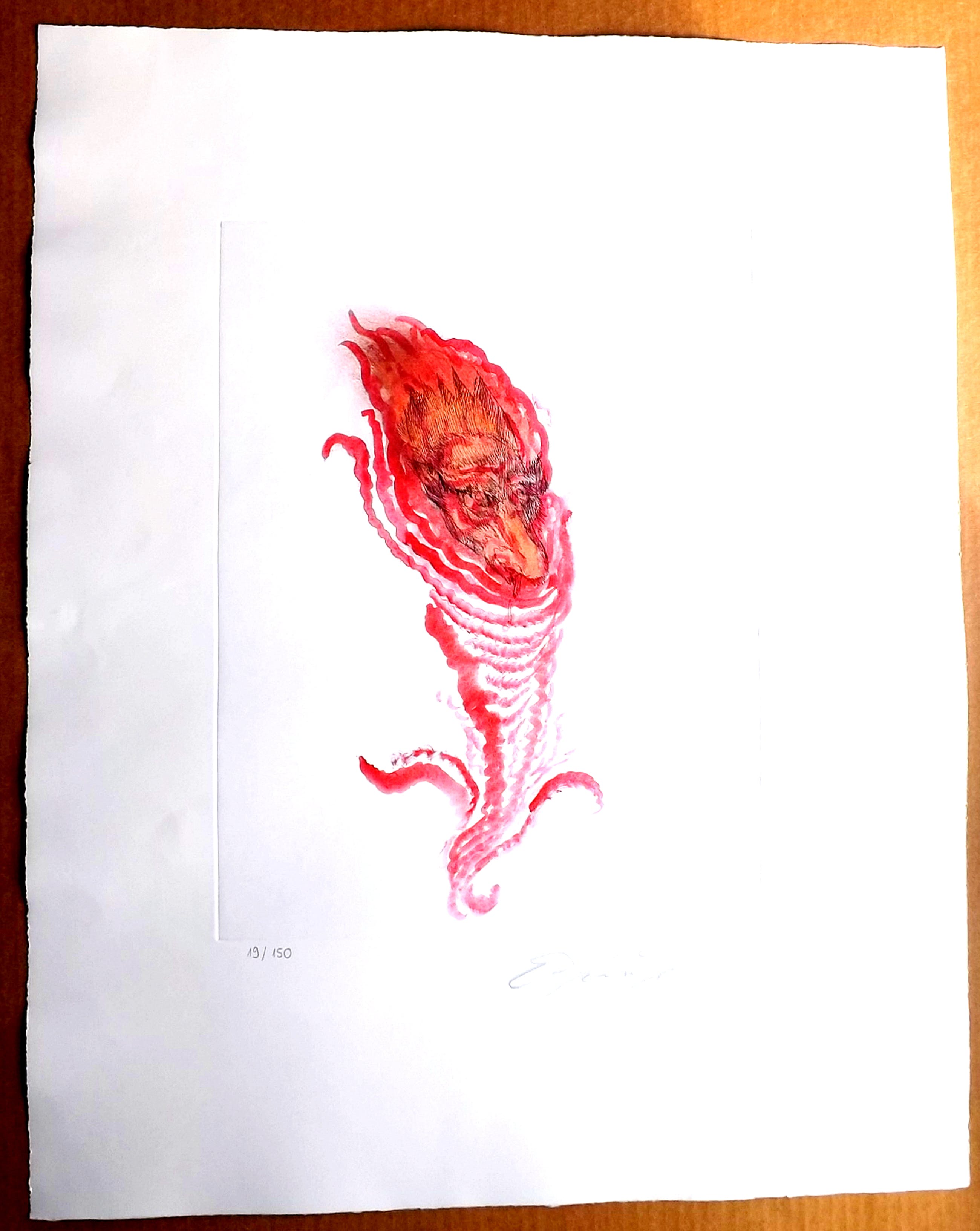 Coloured etching by the artist in pencil hand-signed and numbered 19/150