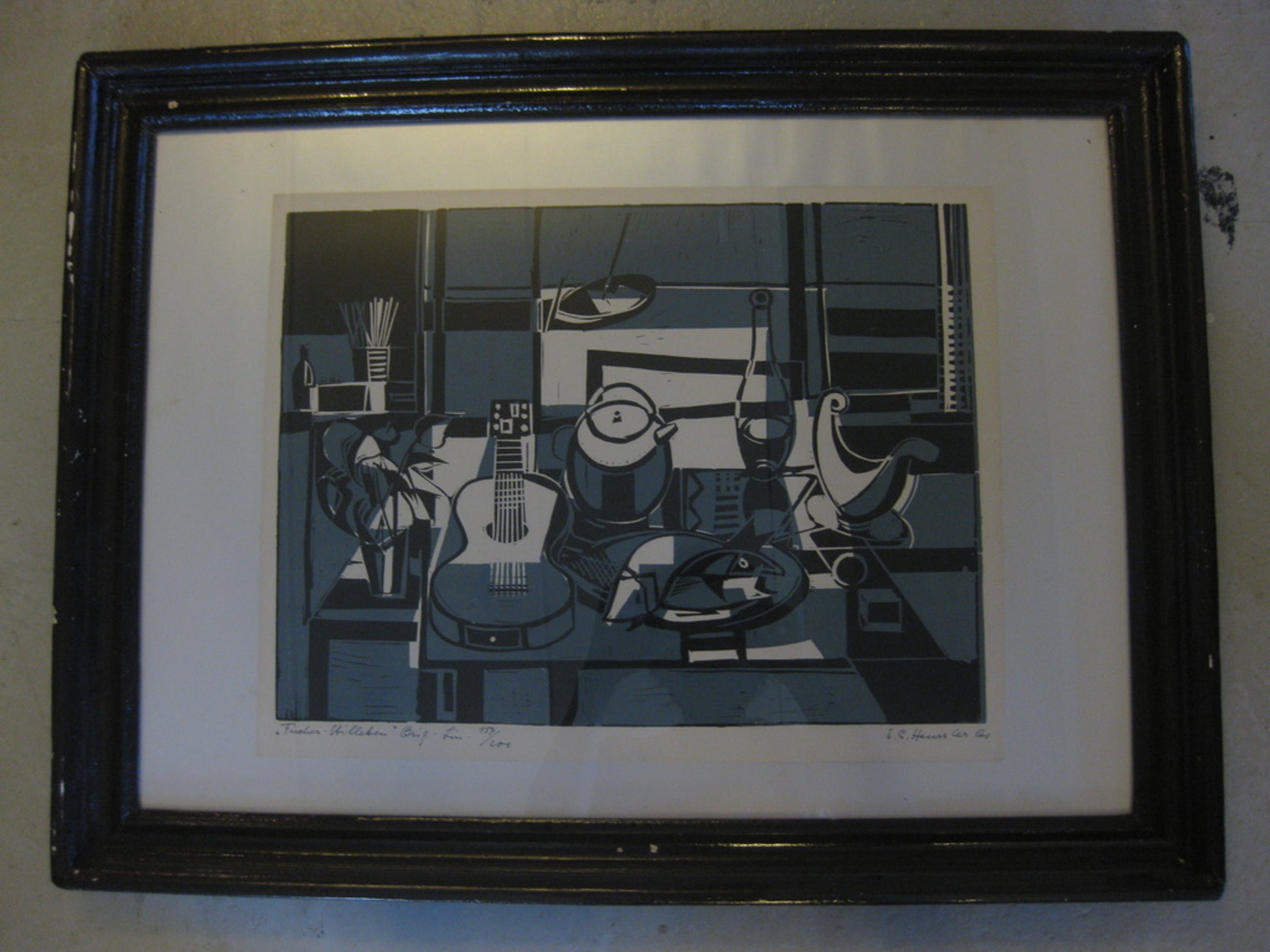 Voor schilderijen en ander ingelijst werk geldt het volgende: bij verzending kan ik geen garanties geven op het heel overkomen van het glas van een lijst, wel zal ik mijn uiterste best doen het werk zo goed mogeljik te verpakken. Kleine gebreken aan de lijst in de vorm van stootplekjes en krassen vermeld ik niet.