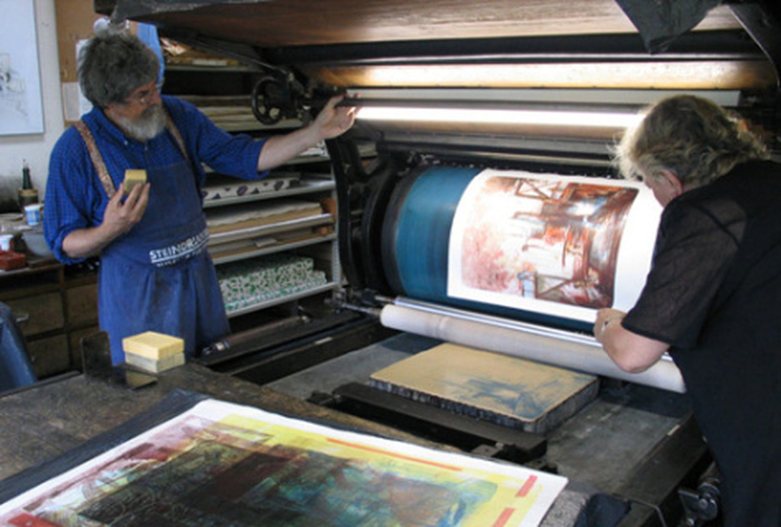 Zeer kleurrijke litho van deze kunstenaar en beroemd drukker van eigen en andermans werk.