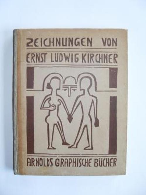 Grohmann,W.; Zeichnungen von Ernst Ludwig Kirchner, Verlag Ernst Arnold, Dresden 1925. 38 S., 100 Bll. 4°, ill. OHLn. 100 teils farbige Tafeln u. viele Orig.-Holzschnitte im Text. (= Arnolds Graphische Bücher, Zweite Folge, Bd. 6) Eines von 2000 Exemplaren der Normalausgabe (ohne Nummer). Mit einem Holzschnitt auf dem Einbanddeckel u. Einbandrücken (Dube 832, 833; im Gegensatz zur Ganzleinenausgabe Einbandrückdeckel unbedruckt!), Titelblatt-Holzschnitt in schwarz u. rot (Dube 835), ein farbiger Holzschnitt von zwei Stöcken in Blau und rot auf S. 11 (Dube 836) und 14 weitere Original-Holzschnitte im Text (Dube 355, 837-849), Gelenke restauriert, Exlibris auf Vorsatzpapier, Blattränder entlang des Schnitts altersbedingt etwas gegilbt, sonst guter Zustand. Eines der schönsten Bücher des Expressionismus in akzeptabeler Erhaltung. Zustand im Preis berücksichtigt! - Thieme/Becker XX, 361; Lang, Expressionistische Buchillustration (1975), p. 62; Bolliger Kat. 7, no. 715; Privatverkauf unter Ausschluß der EU-Gewährleistung! Von dieser Ausgabe wurde in Berlin bei einem Auktionshaus kürzlich ein vergleichbares Exemplar für 1800,- Euro verkauft! Ein weiteres Exemplar wird zur Zeit antiquarisch für 2250,- Euro angeboten. Versand nur als versichertes Paket! (Porto 7,50 Euro versichert mit 500,- Euro, Porto 11,-Euro versichert bis 2500,- Euro)