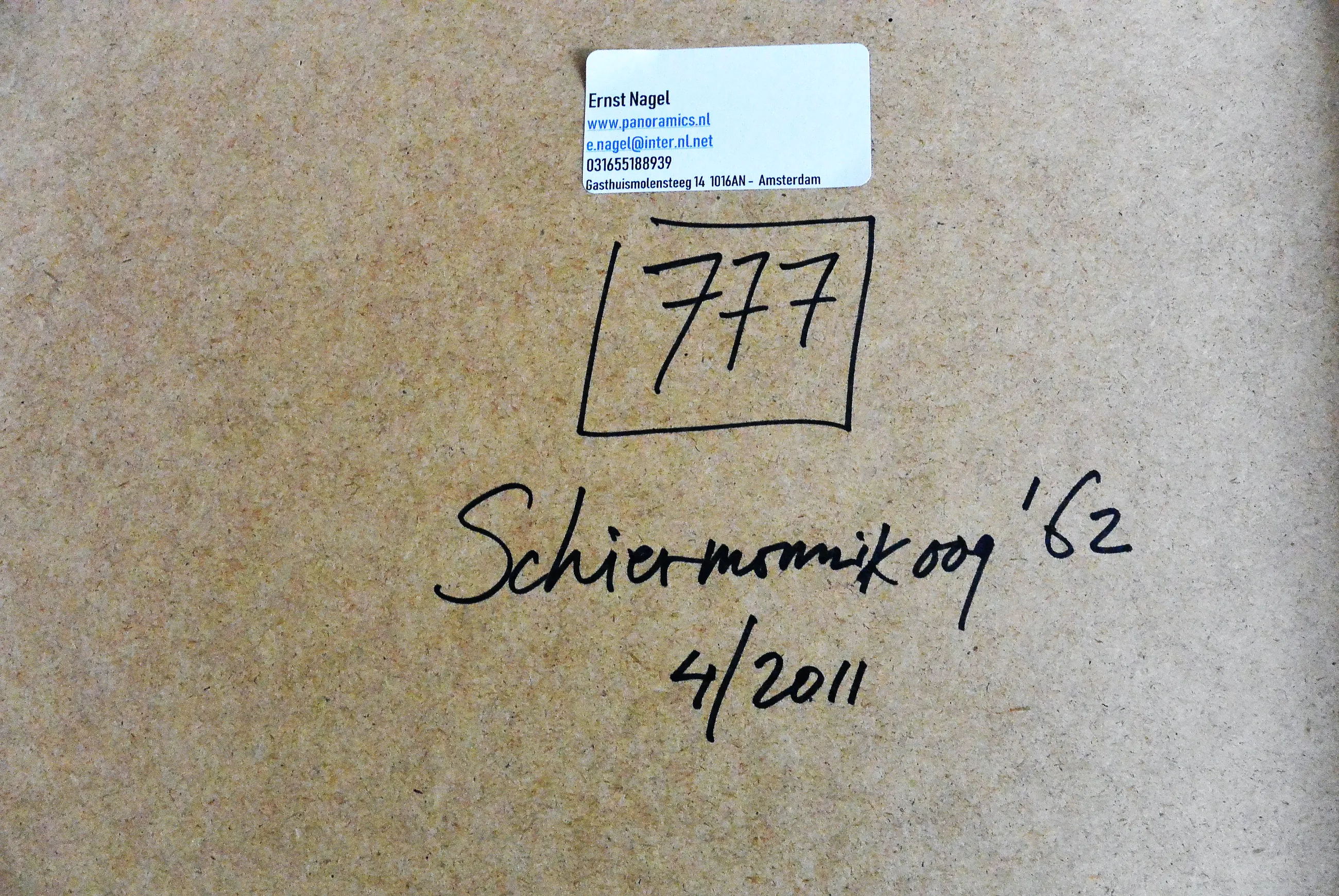 Afhalen Het werk is af te halen op locatie. Als koper dient u zelf verpakkingsmateriaal mee te nemen. De locatie is: Amsterdam, Nederland