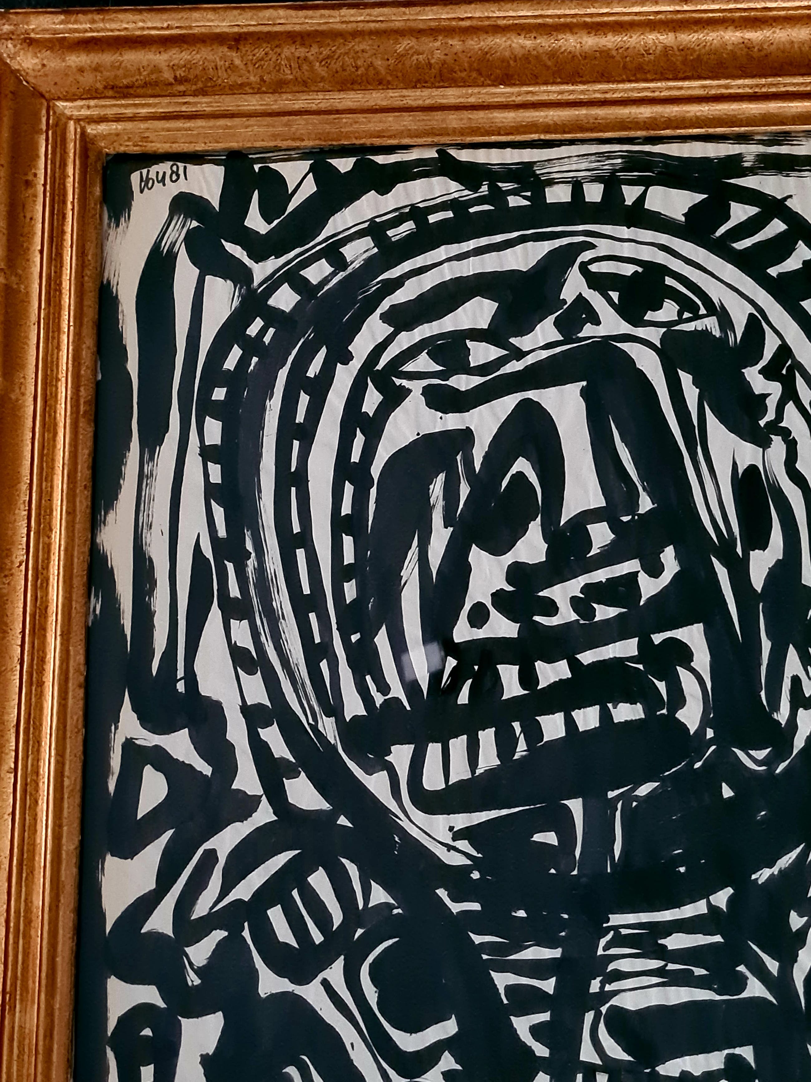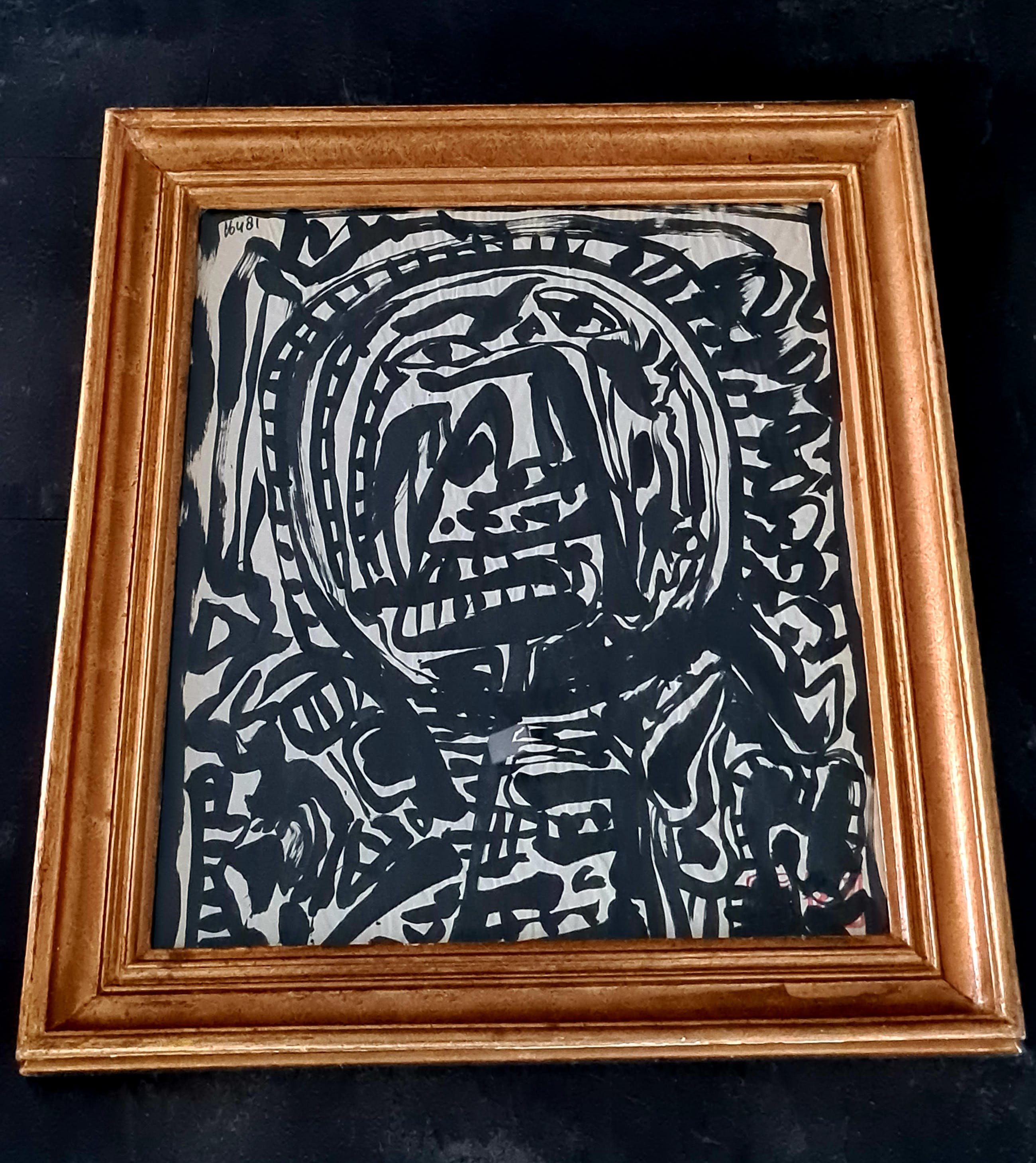 Krachtig werk van Ernst Vijlbrief, in de door hem kenmerkende "Cobra" Stijl, voorzien van Stempels. Ik zal mijn uiterste best doen om het goed ingepakt te versturen, maar