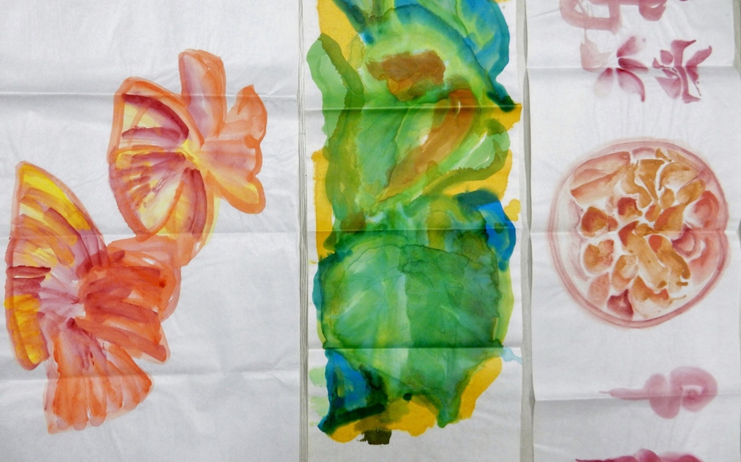 Het is werk op rijstpapier, het kan dus prima licht gespannen worden in een passe-partout, dan verdwijnen de vouwen.