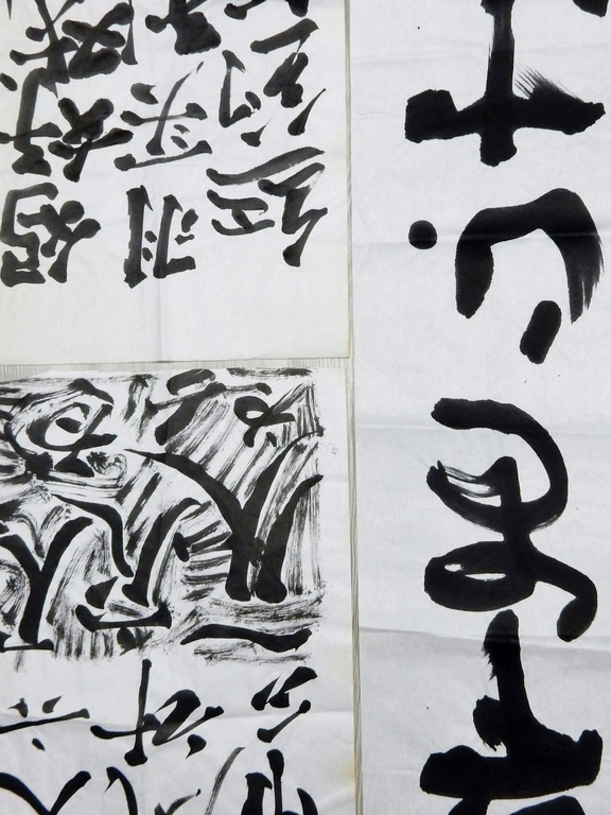 Maten van de werken variëren tussen 165x30, 140x30, 50x40 en 30x30 cm
