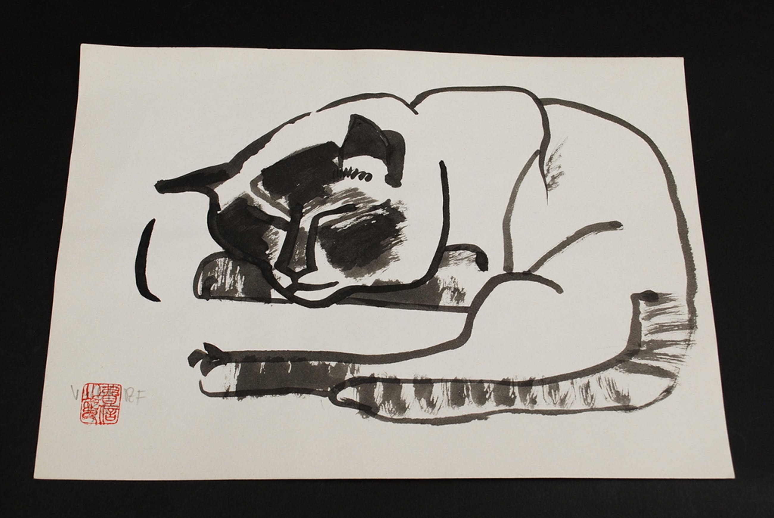 ERNST VIJLBRIEF (2 x inkt op papier) slapende katten