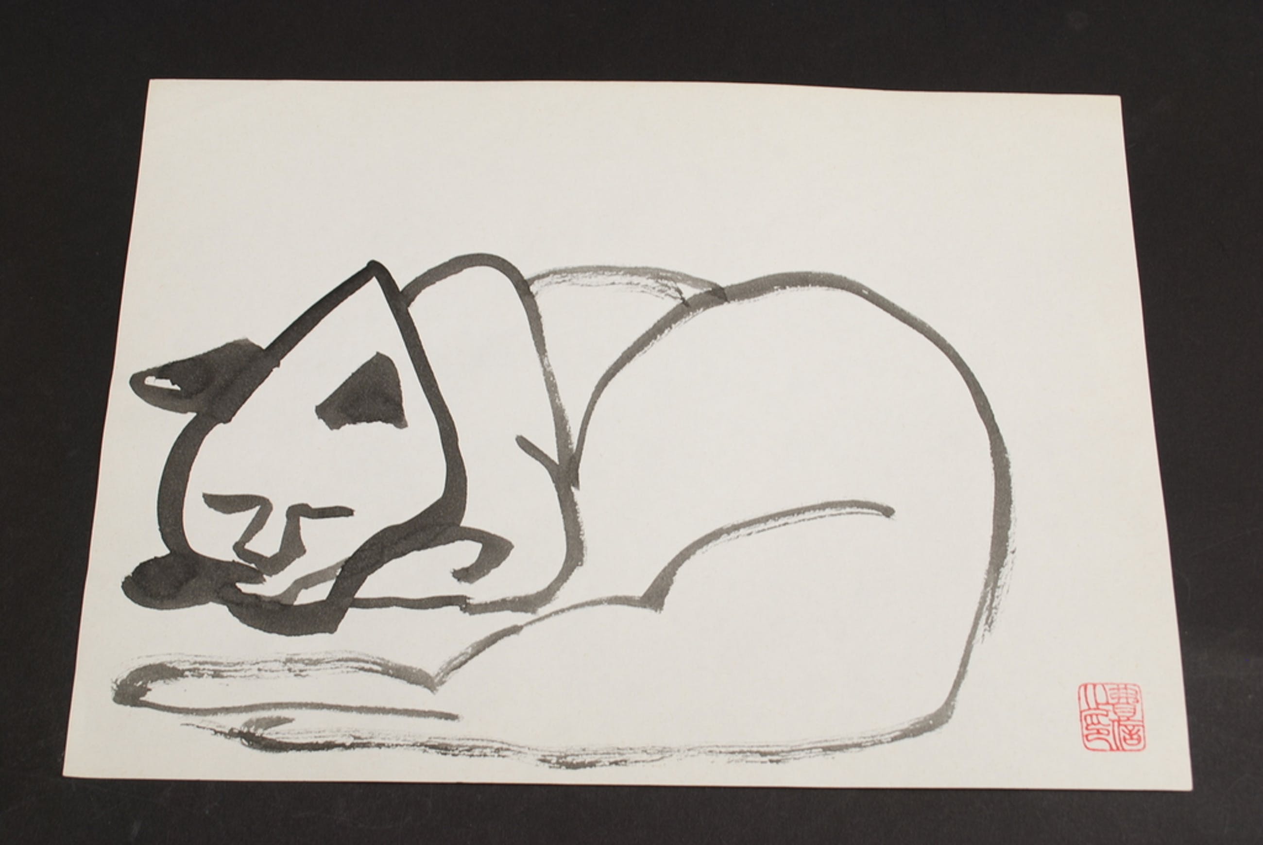 ERNST VIJLBRIEF inkt op papier slapende kat