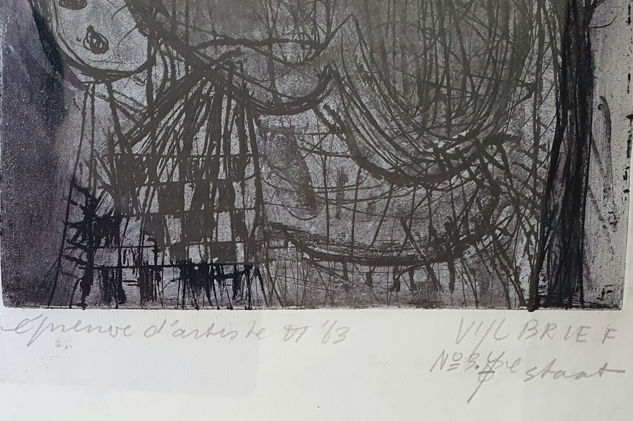 Ets van Ernst Vijlbrief uit 1963 . Het werk is rechtsonder met de hand gesigneerd door de kunstenaar.