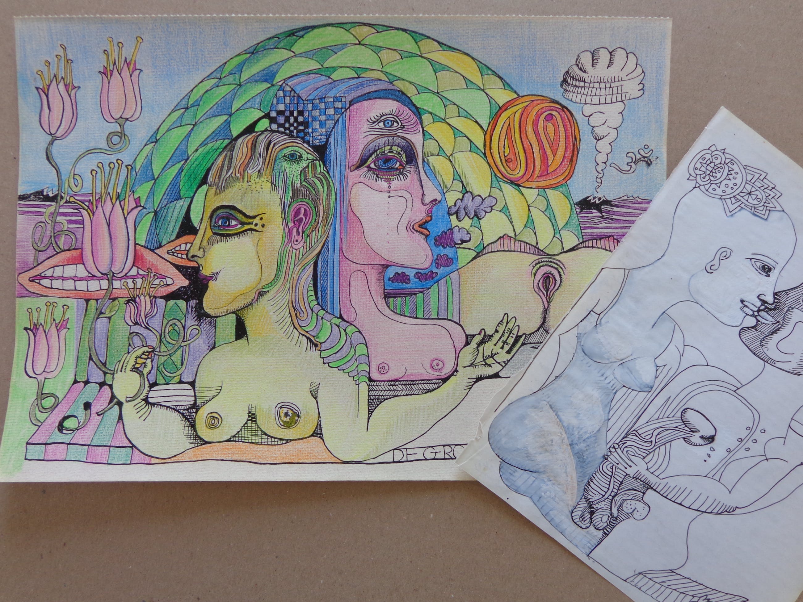 2. Erotiek. Inkt + gouache. Niet gesigneerd. Blad: 21x17cm. Verso: tekst.