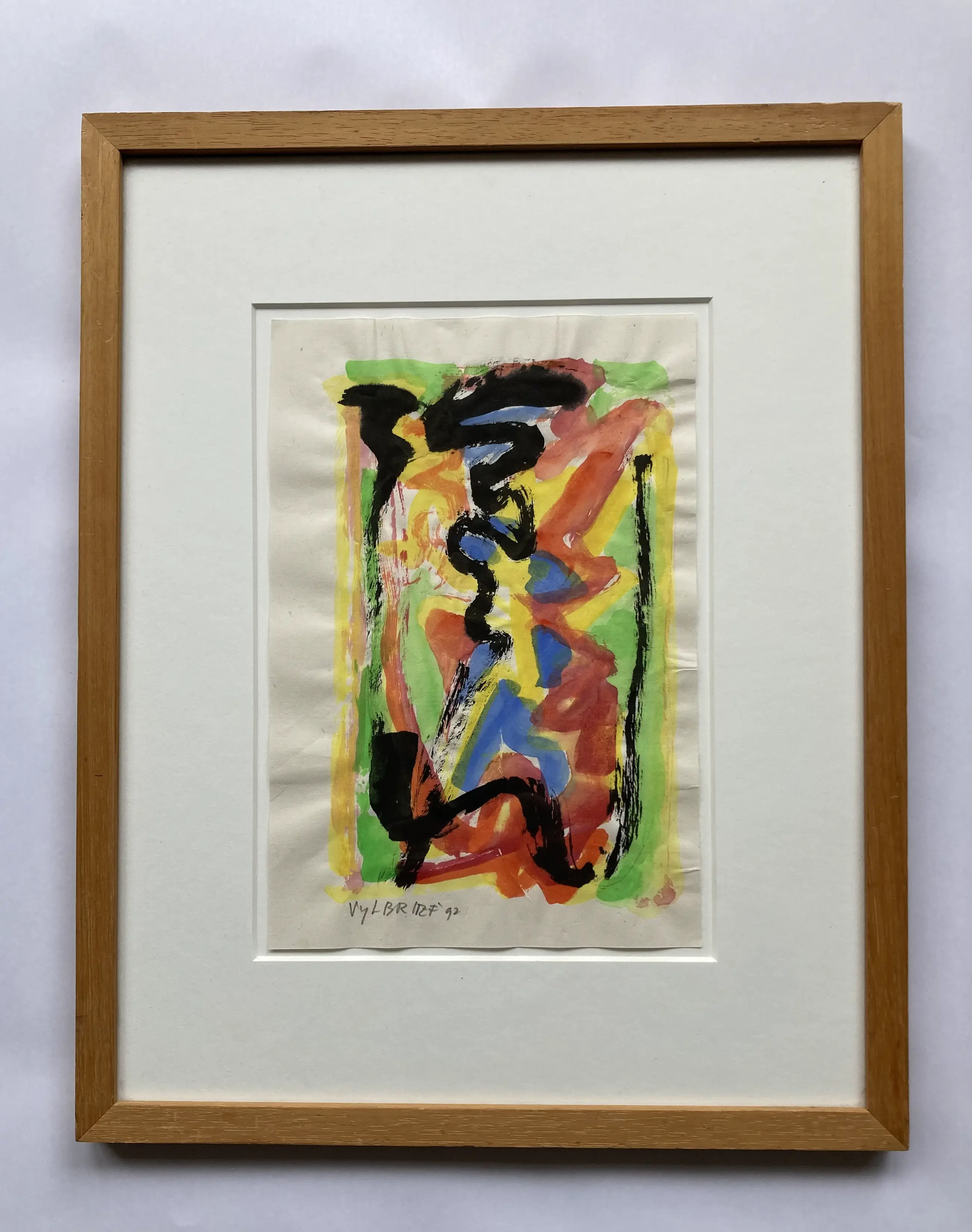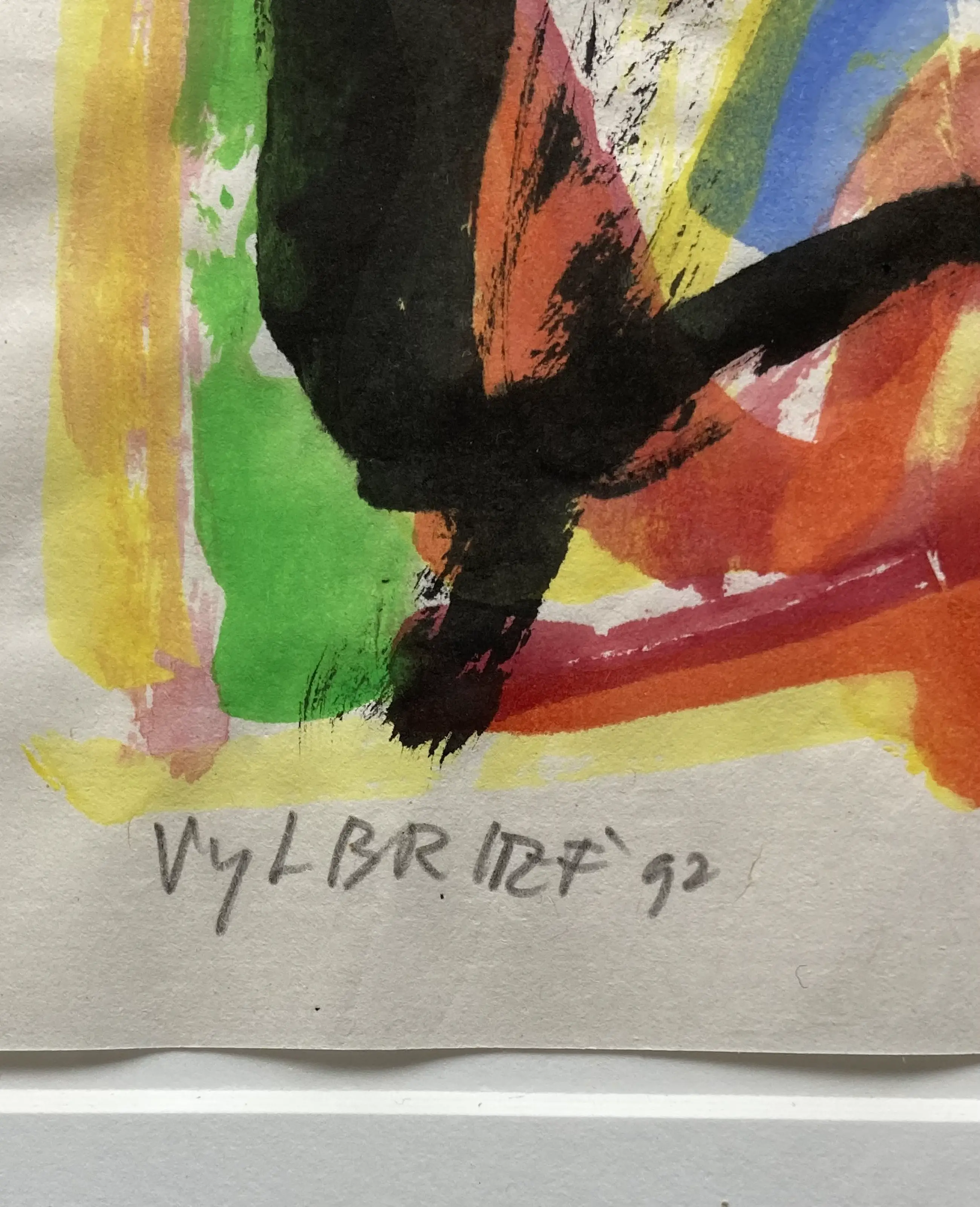 Aquarel van Ernst Vijlbrief. Uit 1992. Zoals veel werk op papier uit die tijd hobbels aan de zijkanten. Ingelijst onder passe partout in een houten baklijst met lichte gebruikssporen.