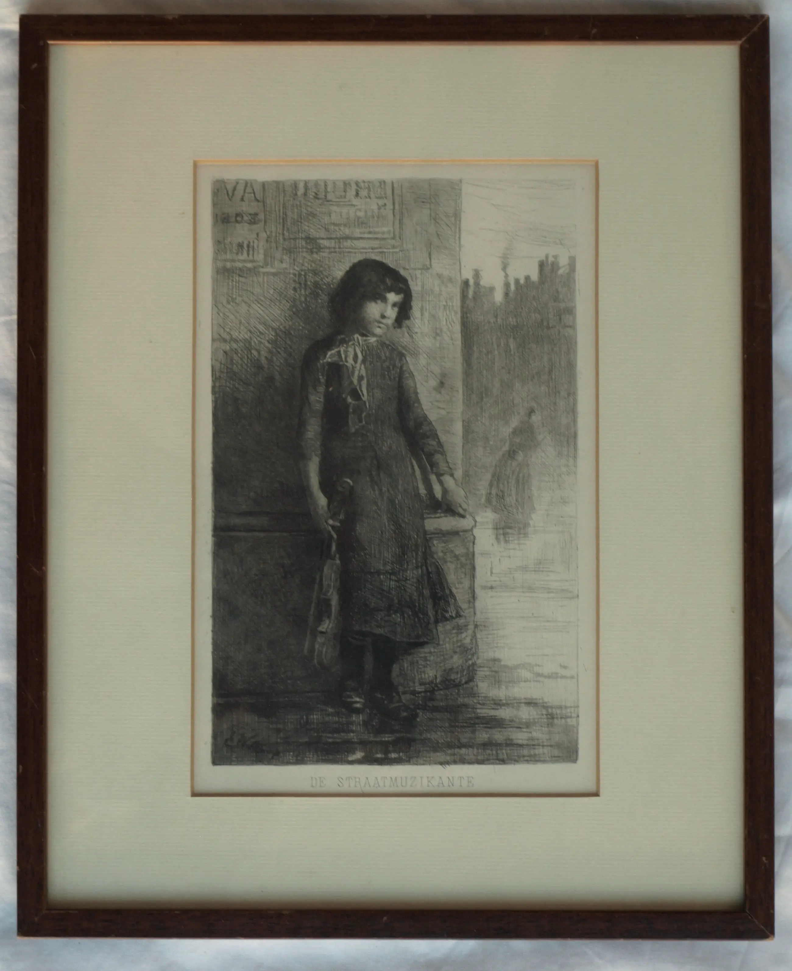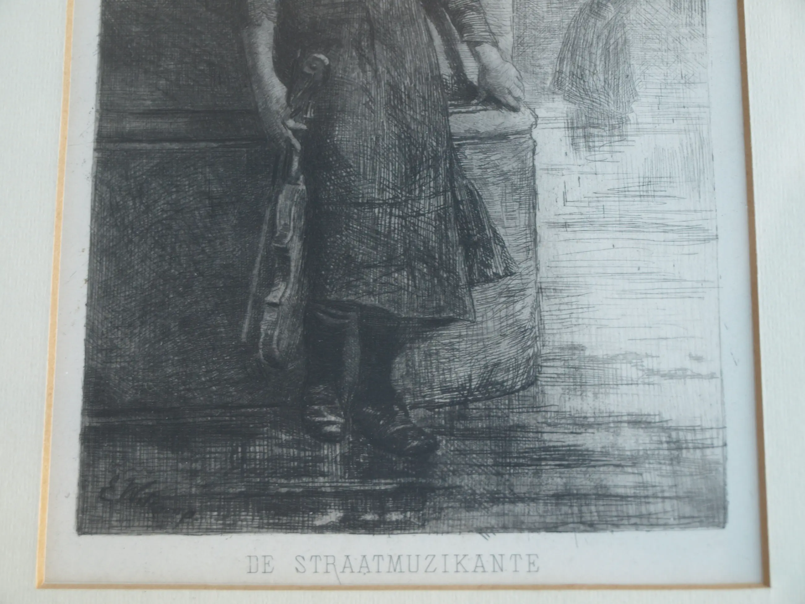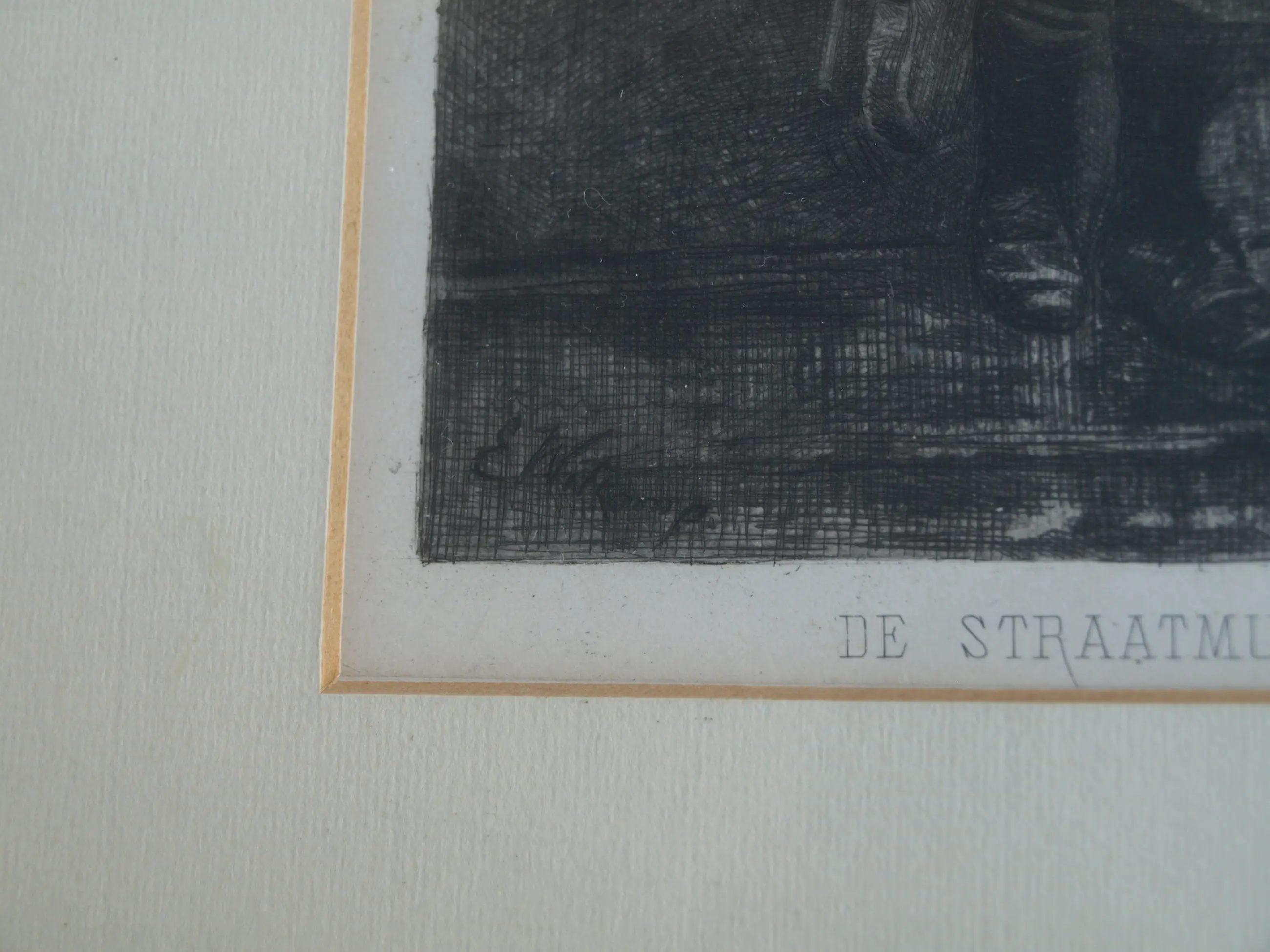 Een ingelijste ets van de Nederlandse kunstenaar Ernst Witkamp (1854-1897).